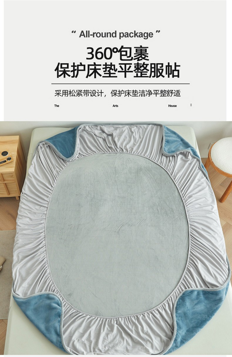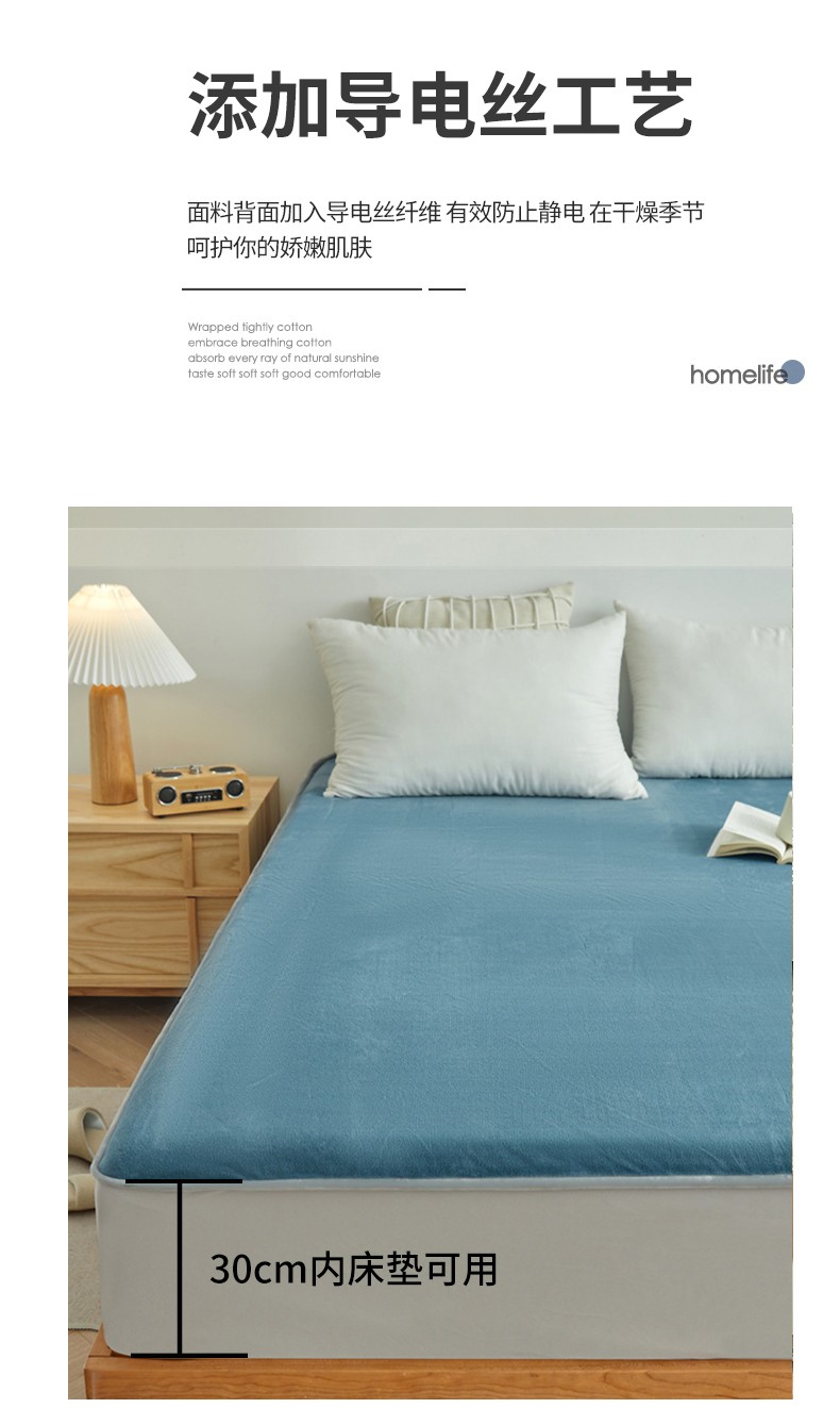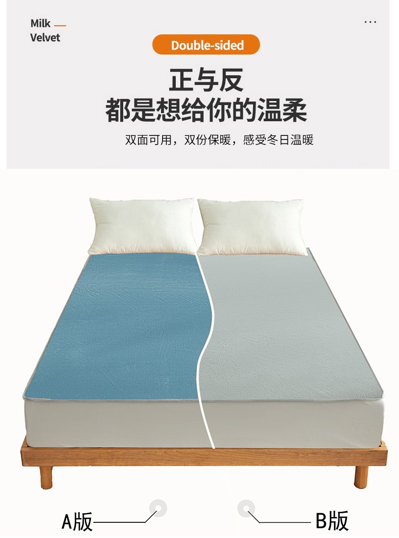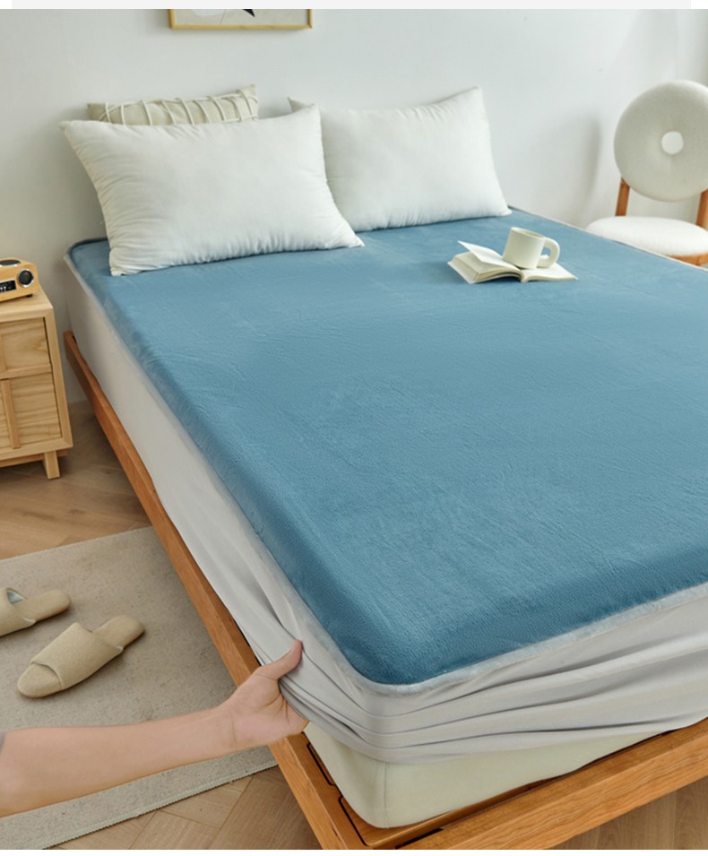 AB版双面牛奶绒床笠 复合保暖床笠 双面可用 蓝灰