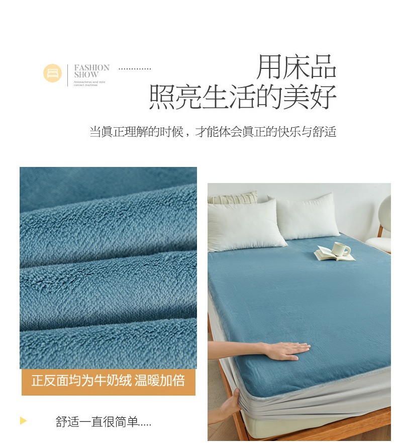 商品名称:AB版双面牛奶绒床笠 复合保暖床笠 双面可用 蓝灰