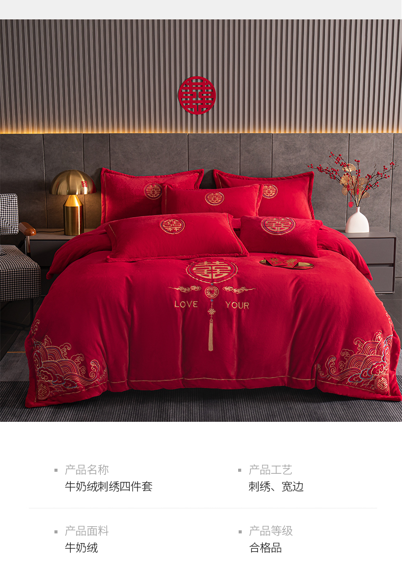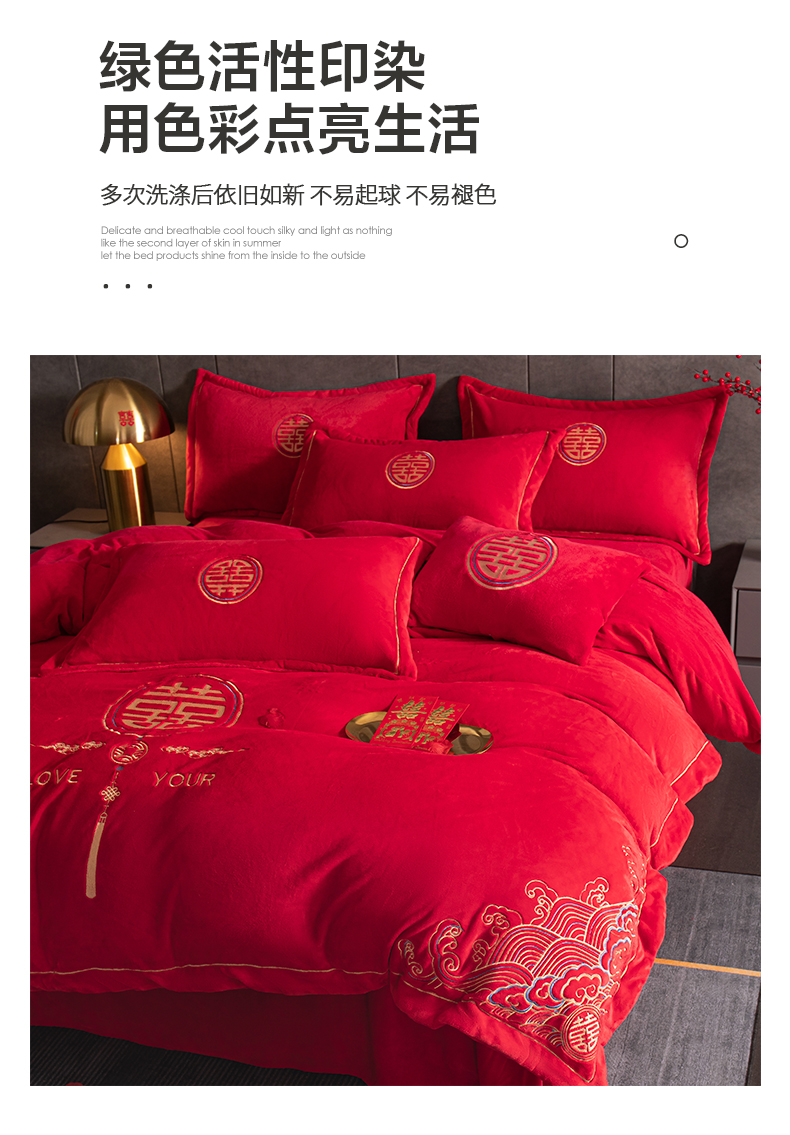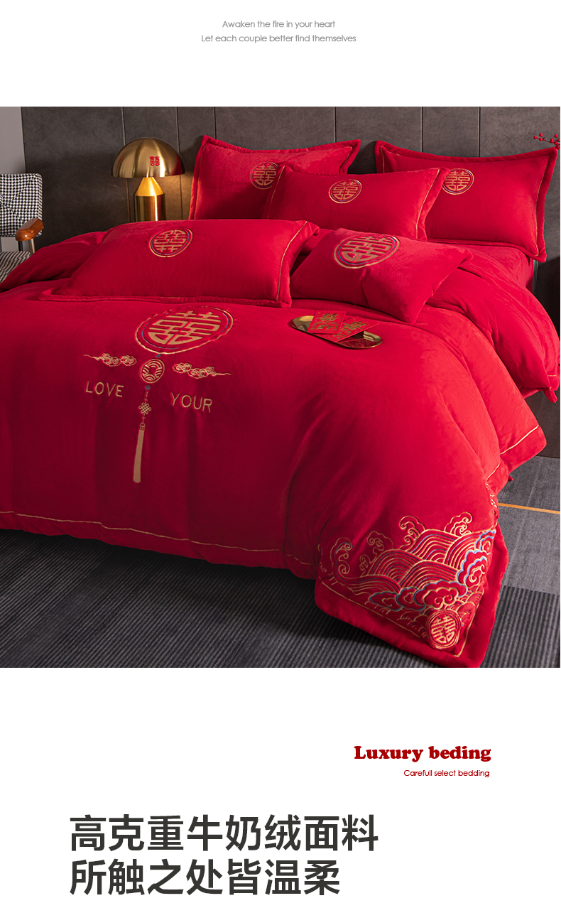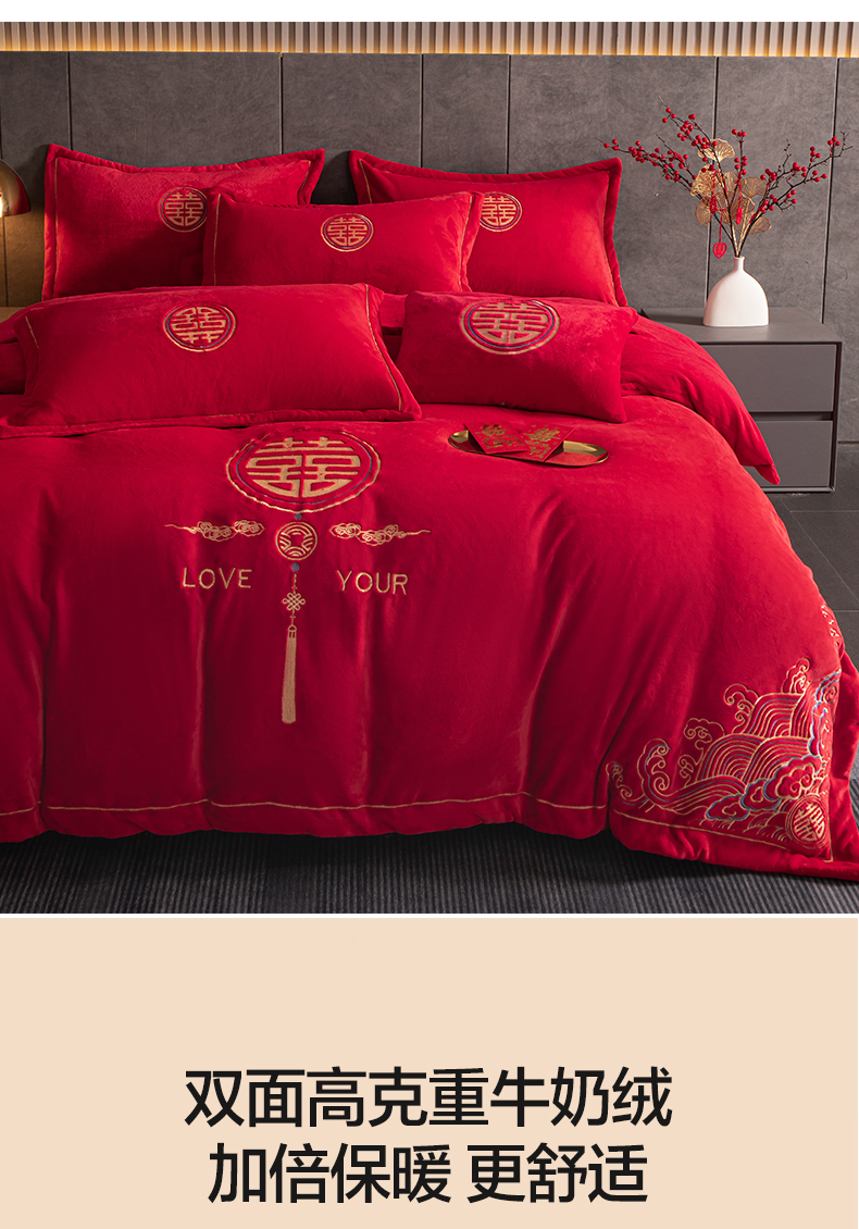 商品名称:花愿 2025新款婚庆牛奶绒四件套-拍法二 天禧