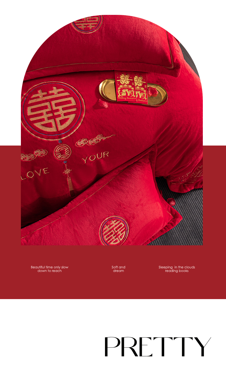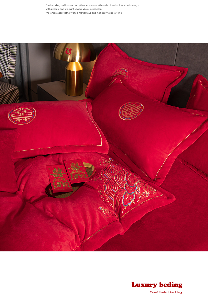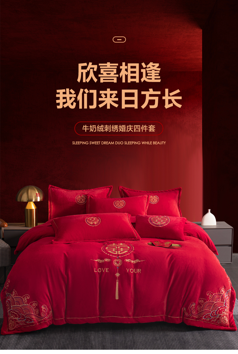 商品名称:花愿 2025新款婚庆牛奶绒四件套-拍法二 天禧