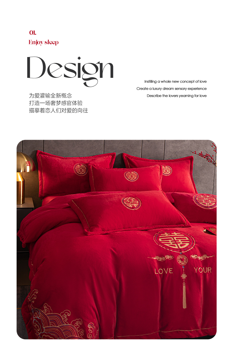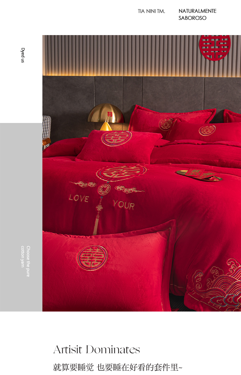 (总)花愿(原花纪) 2025新款水洗棉刺绣婚庆四件套系列,丹枫迎喜,欢喜,良缘,龙凤欢喜,玫瑰之恋,美满,如意,天禧,唯一,喜爱,心心相印,幸福,永恒之恋,钟爱一生