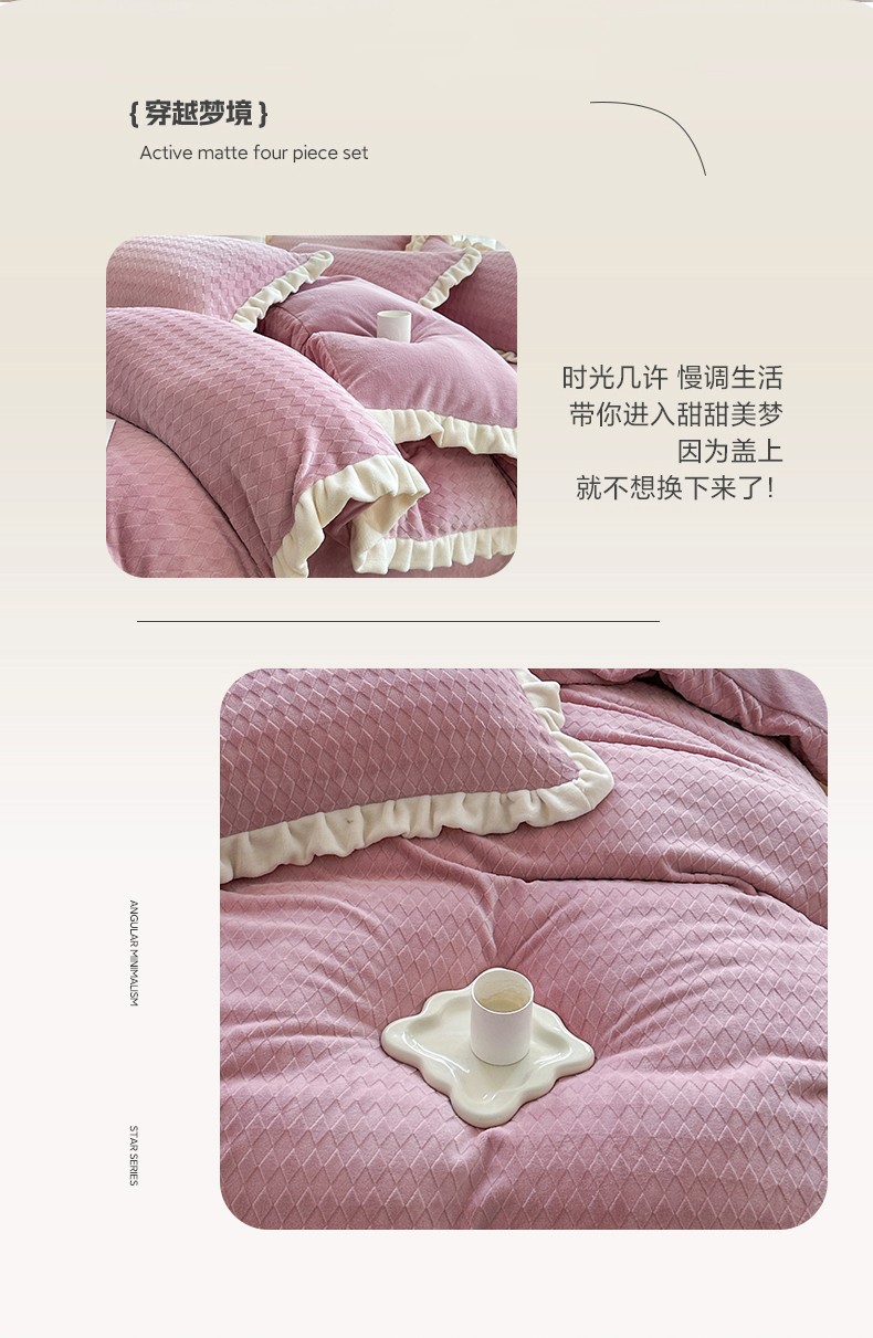 (总)其奥家纺 2025秋冬新款A类全棉双层纱棉加牛奶绒四件套韩版公主风,可颂,春野,奈斯,秋屿,瑞芙丽,映秋