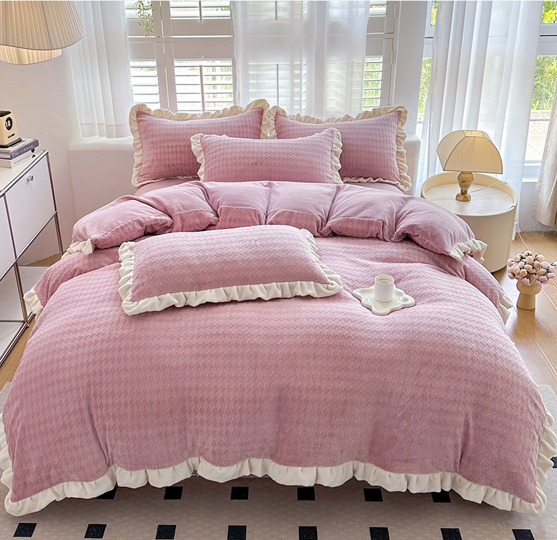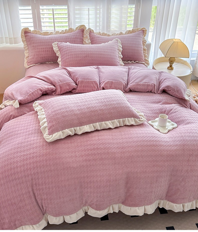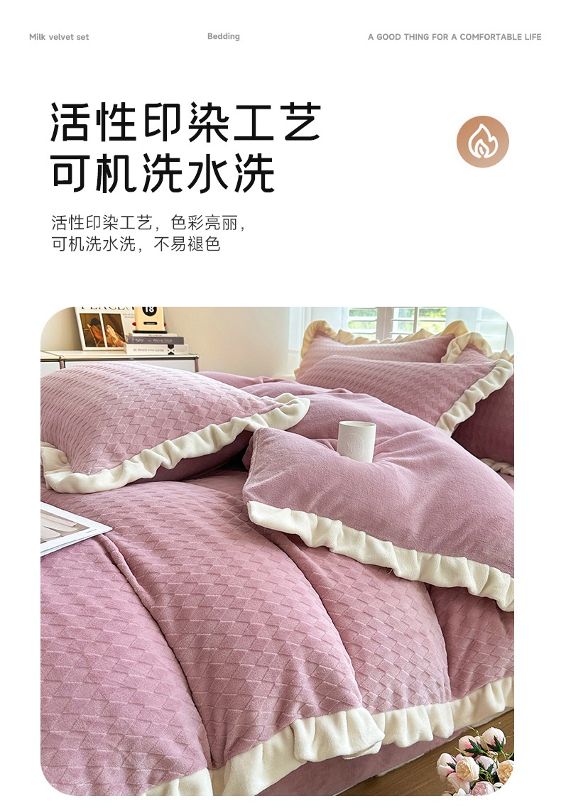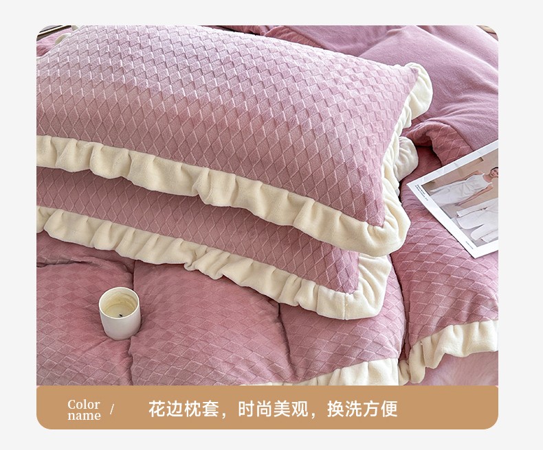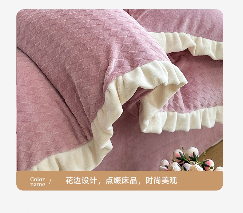 商品名称:其奥 2025新款加厚床单床笠款提花牛奶绒四件套-安妮 豆沙