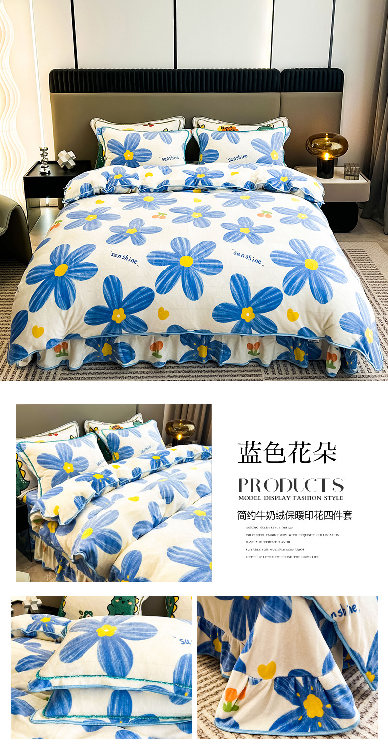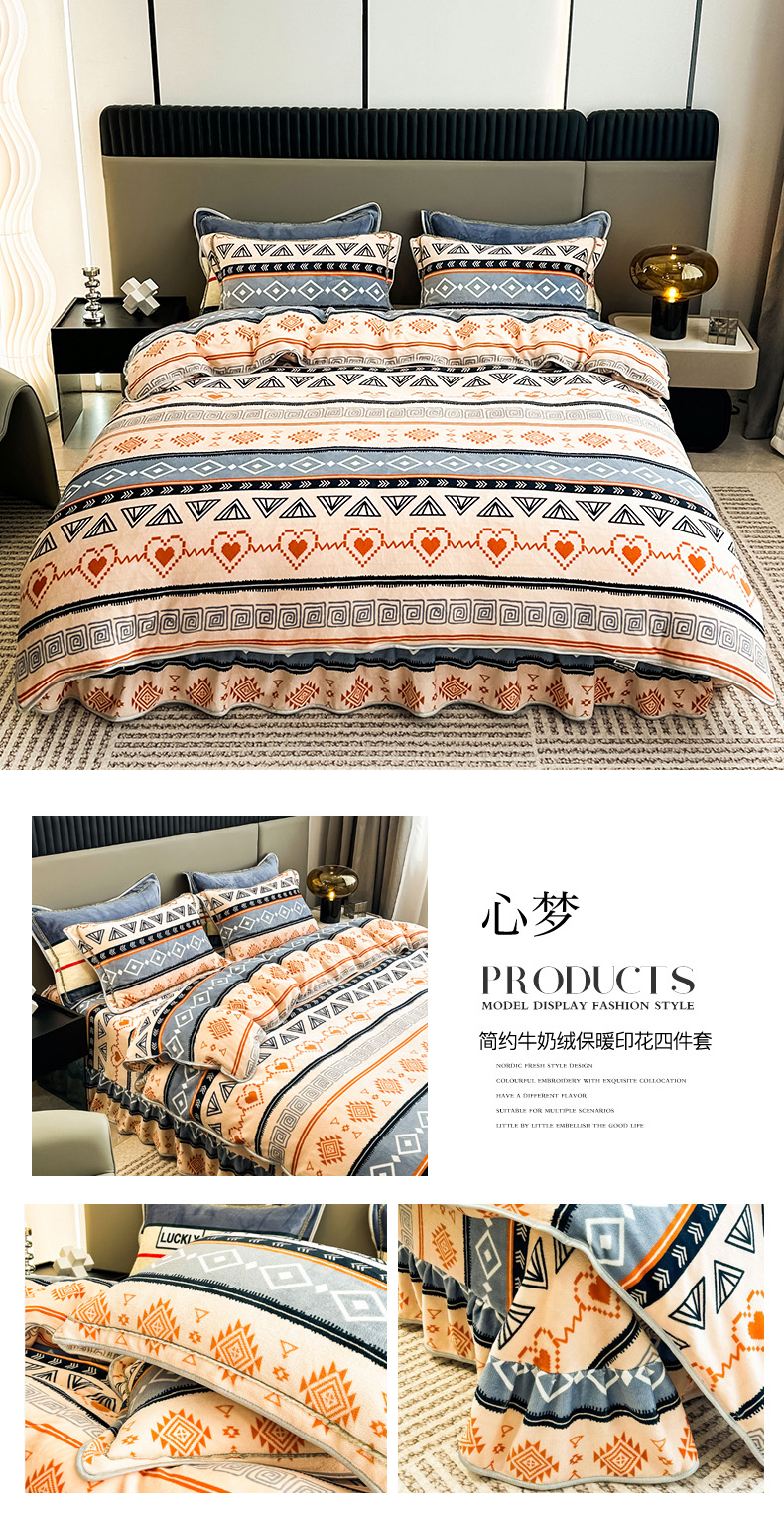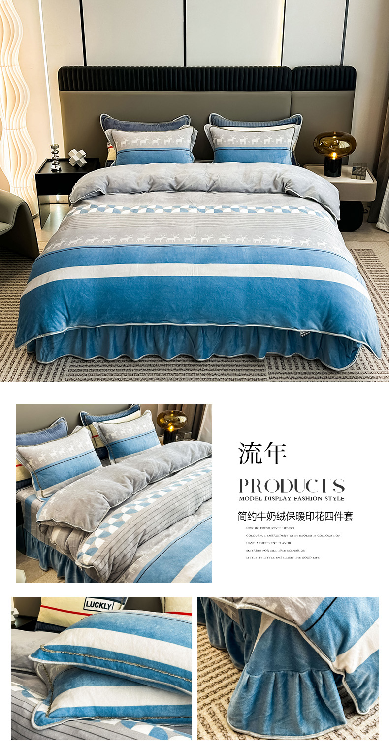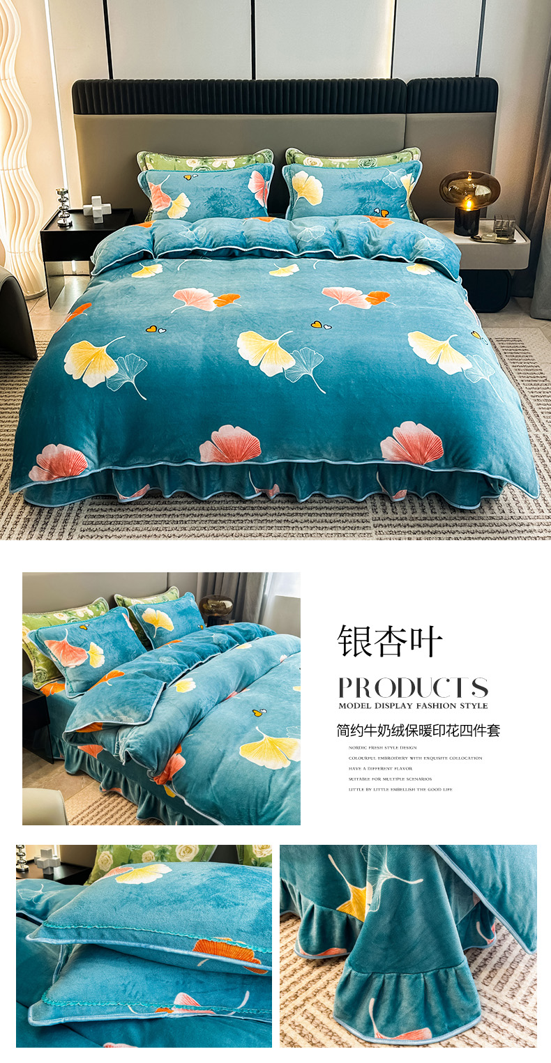 商品名称:(总)欧喜璐 2023新款高克重牛奶绒四件套法莱绒金貂绒8.5斤加厚保暖-印花款