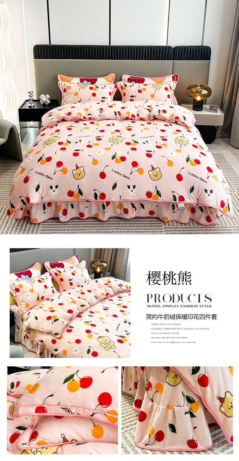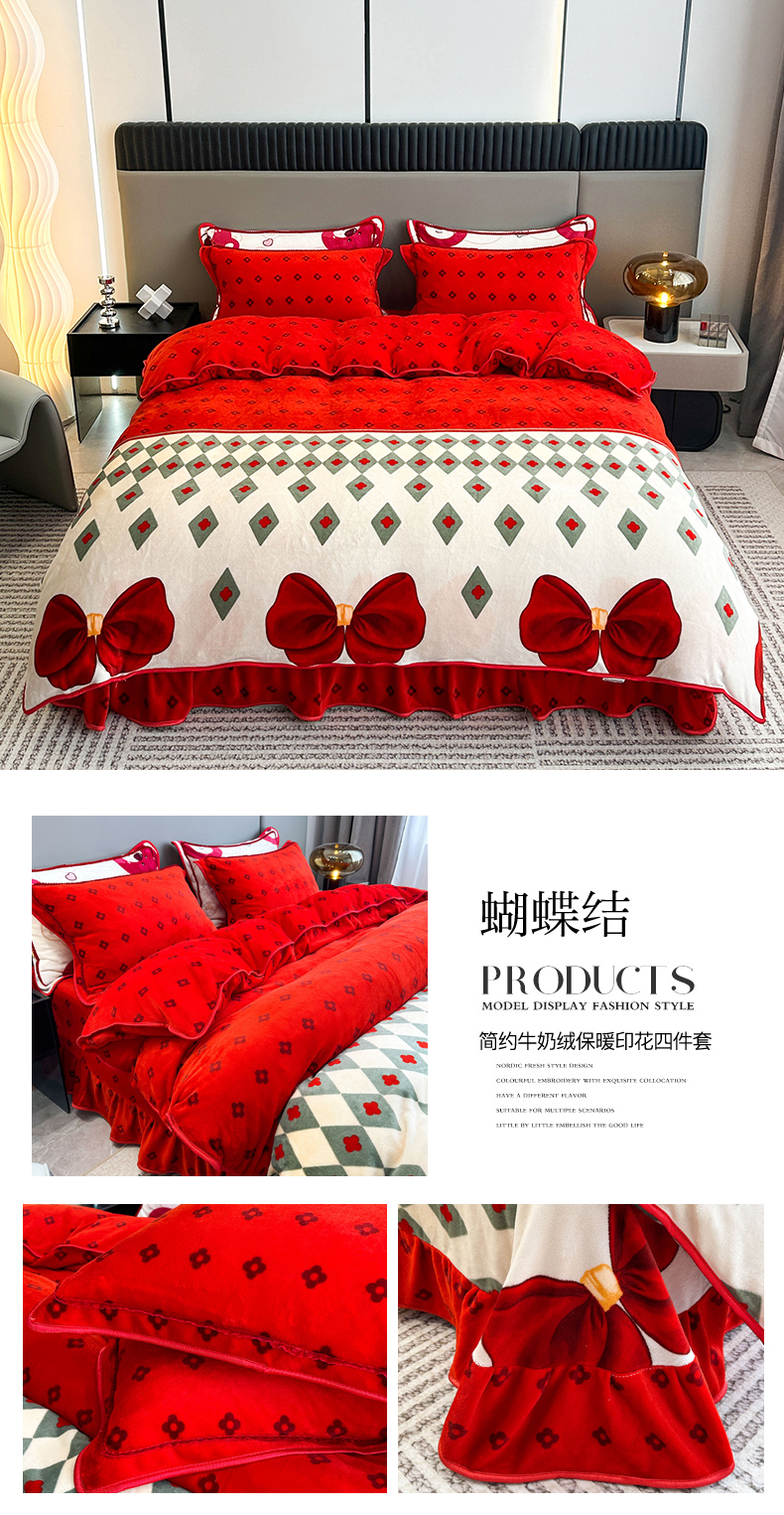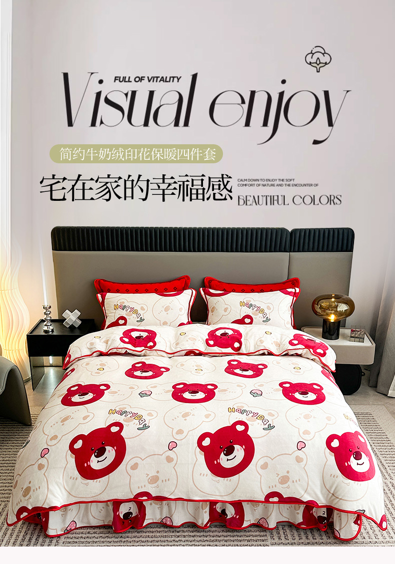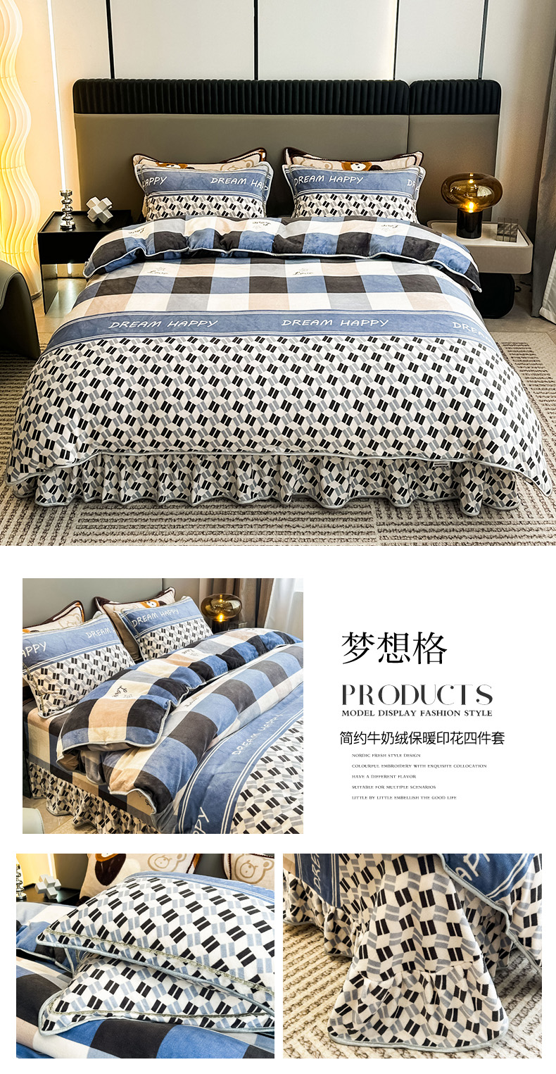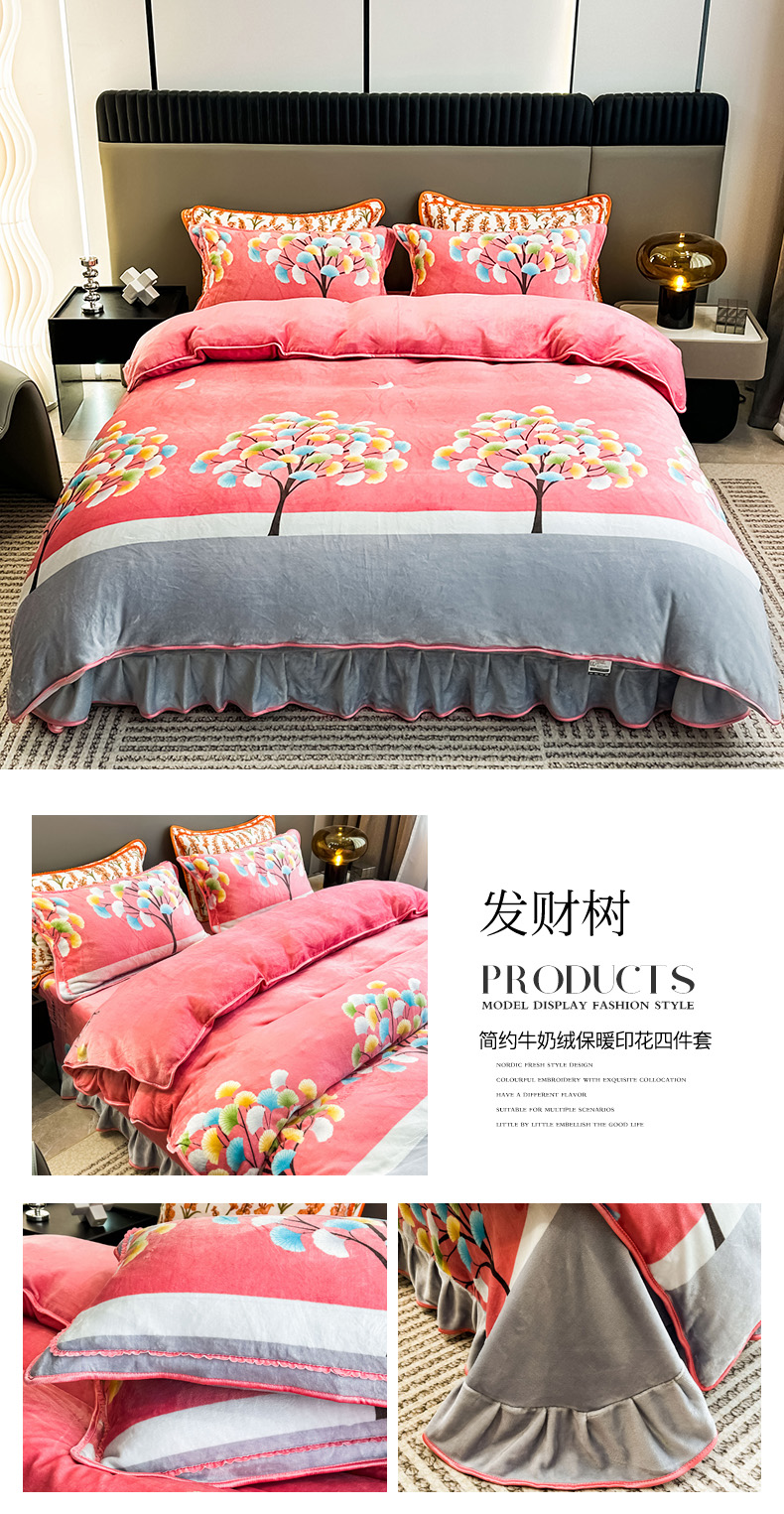 商品名称:(总)欧喜璐 2023新款高克重牛奶绒四件套法莱绒金貂绒8.5斤加厚保暖-印花款