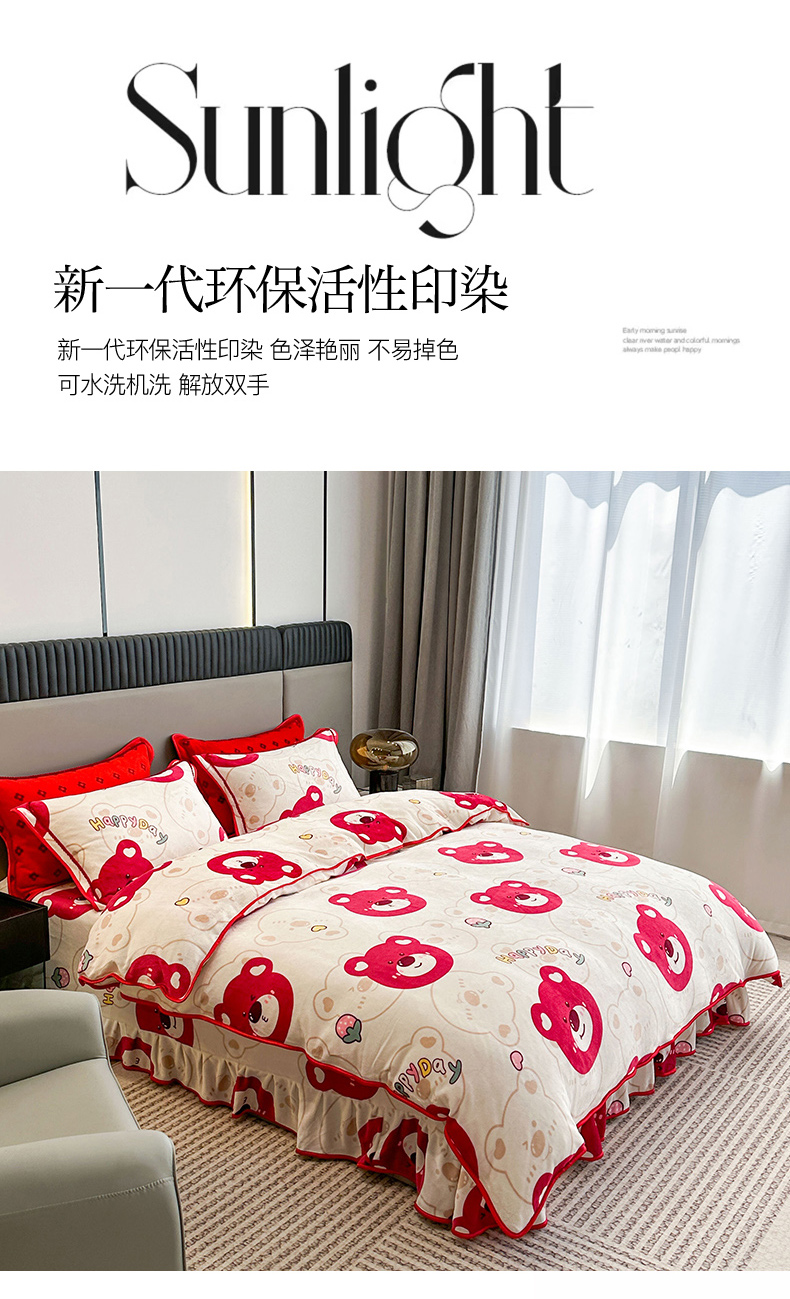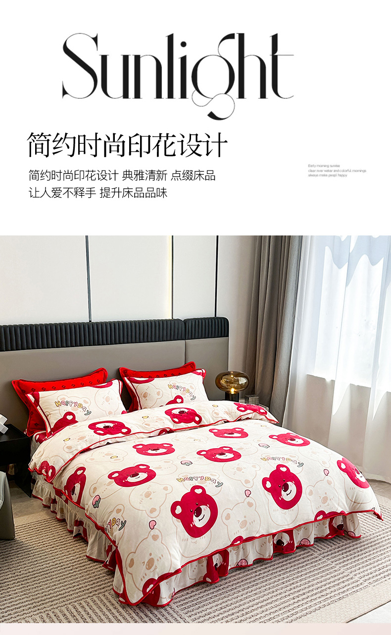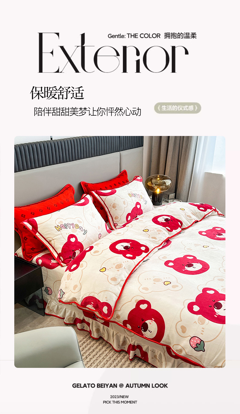 商品名称:欧喜璐 2023新款高克重牛奶绒四件套法莱绒金貂绒8.5斤加厚保暖-印花款 蝴蝶结