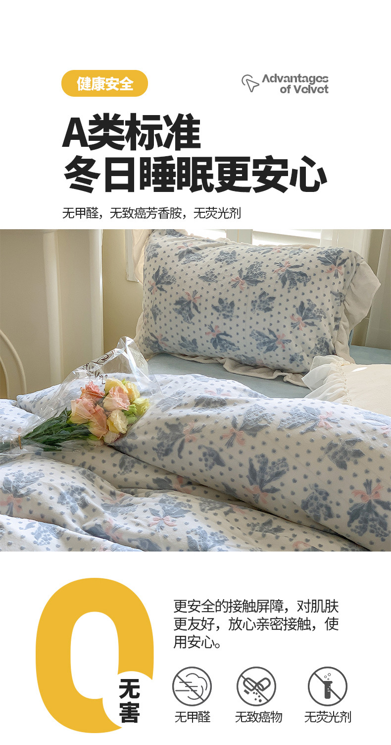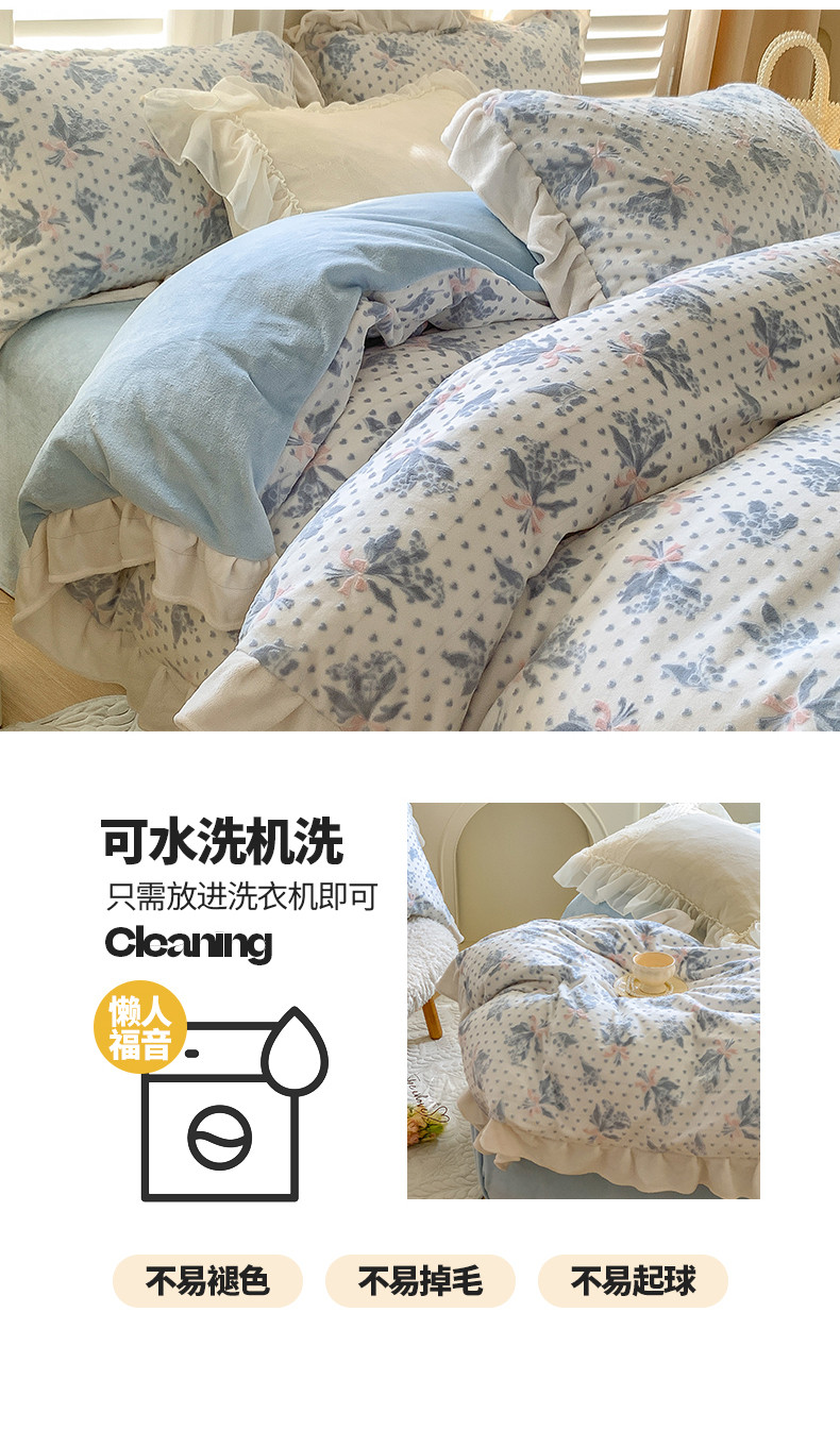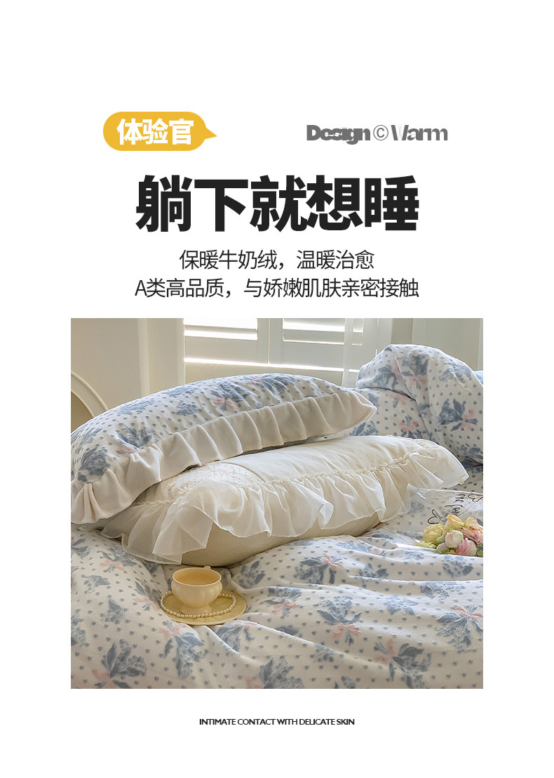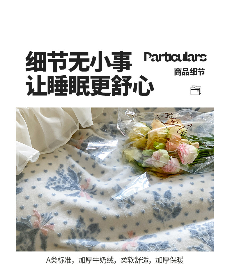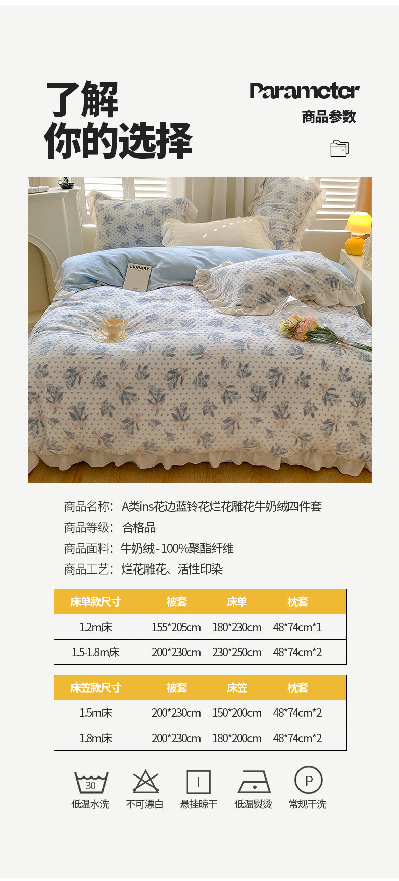 商品名称:(总)桃子家居2023新款A类高克重ins花边3D立体韩版牛奶绒四件套
