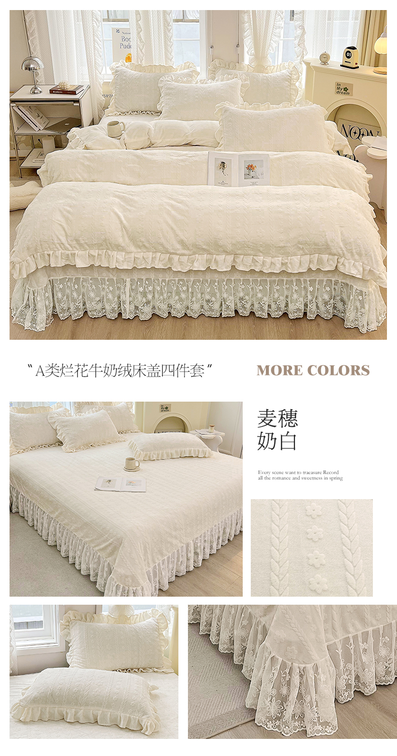 (总)宜凡家纺 2025新款兔绒提花牛奶绒夹棉床裙四件套,爱心 少女粉,爱心 粉紫,爱心 驼色,蝶舞 大红,蝶舞 米色,蝶舞 浅紫,蝶舞 玉色,简爱 苍青,简爱 豆沙紫,简爱 玉色,樱桃 苍青,樱桃 豆沙紫,樱桃 奶油白
