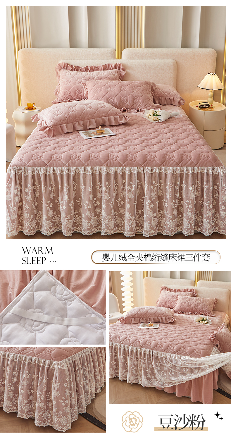 宜凡2023新款婴儿绒全夹棉床裙三件套 豆沙粉