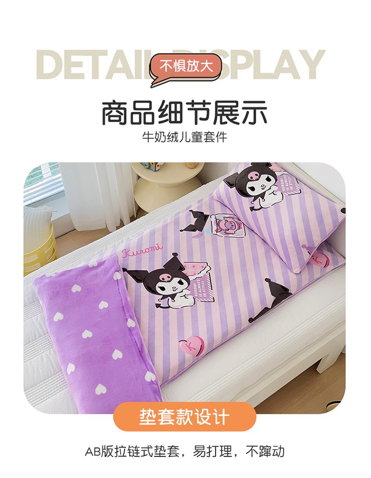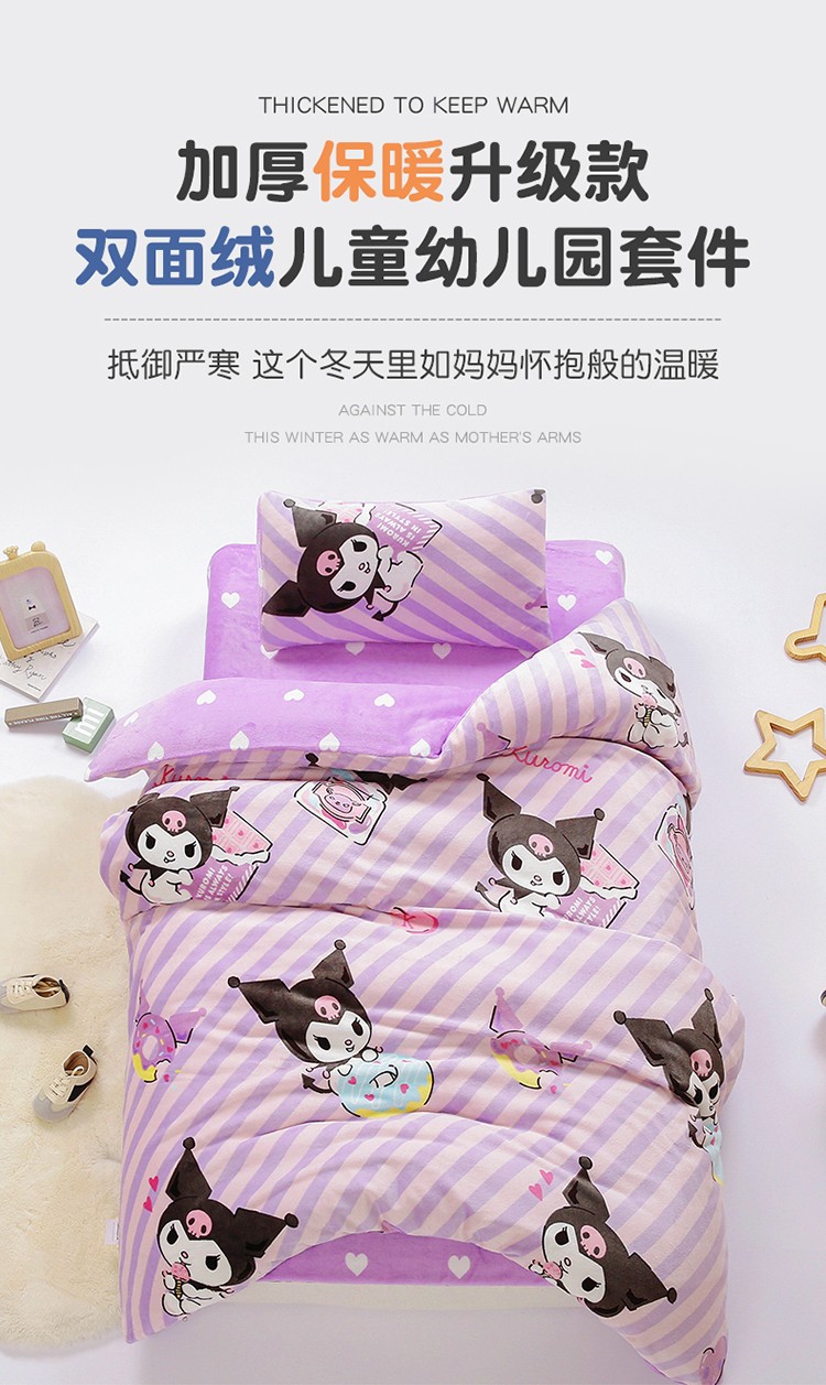 当前位置: 91家纺网 > 商品网购 > 婴童用品 > 婴童床品套件 > 三丽鸥A类牛奶绒幼儿园被子三件套儿童宝宝午睡套件含芯六件套 条纹库洛米