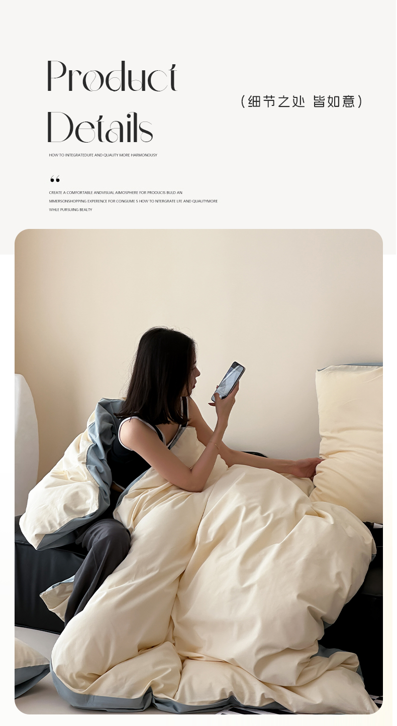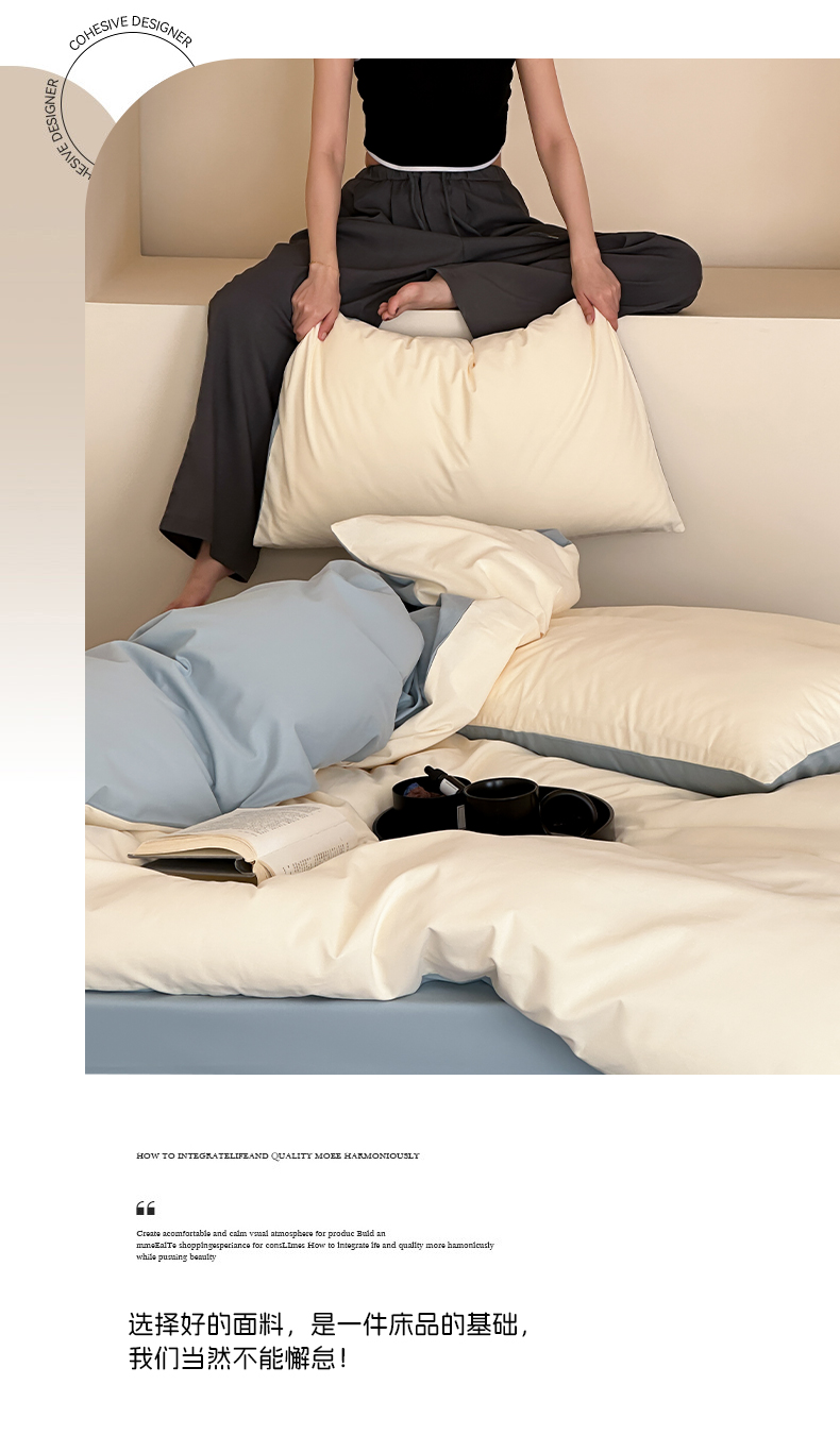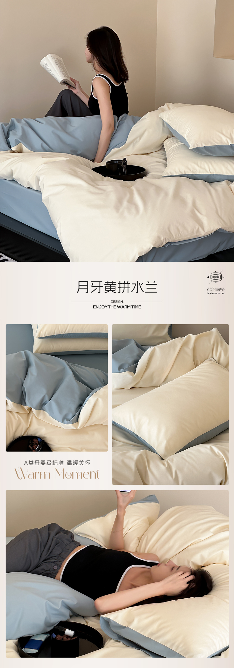 当前位置: 91家纺网 > 商品网购 > 床品套件 > 四件套 > 普通磨毛四件套 > 时光里 2023北欧风简约纯色双拼60s加厚磨毛全棉四件套 月牙黄拼水兰