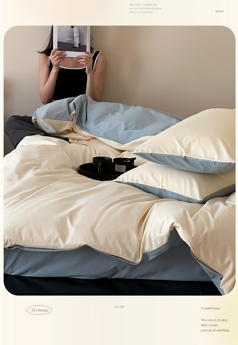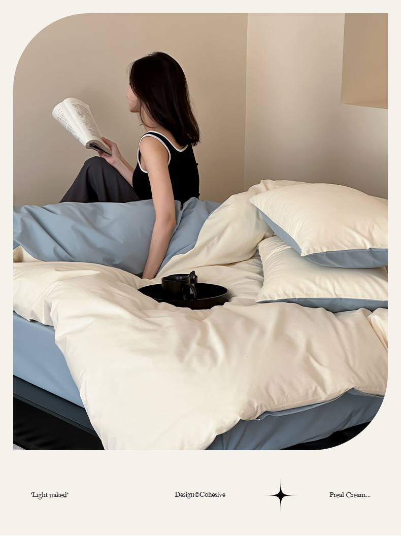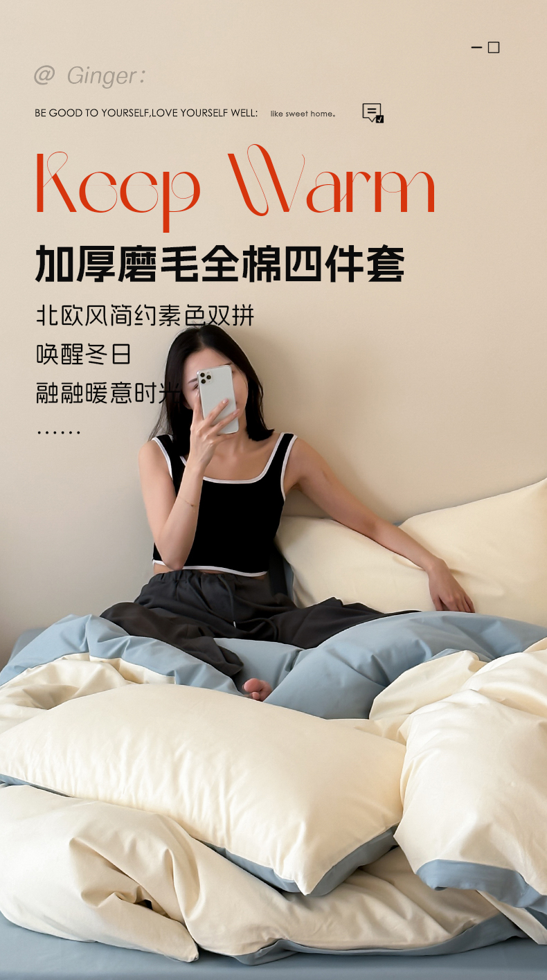 当前位置: 91家纺网 > 商品网购 > 床品套件 > 四件套 > 普通磨毛四件套 > 时光里 2023北欧风简约纯色双拼60s加厚磨毛全棉四件套 月牙黄拼水兰