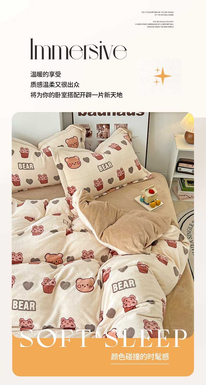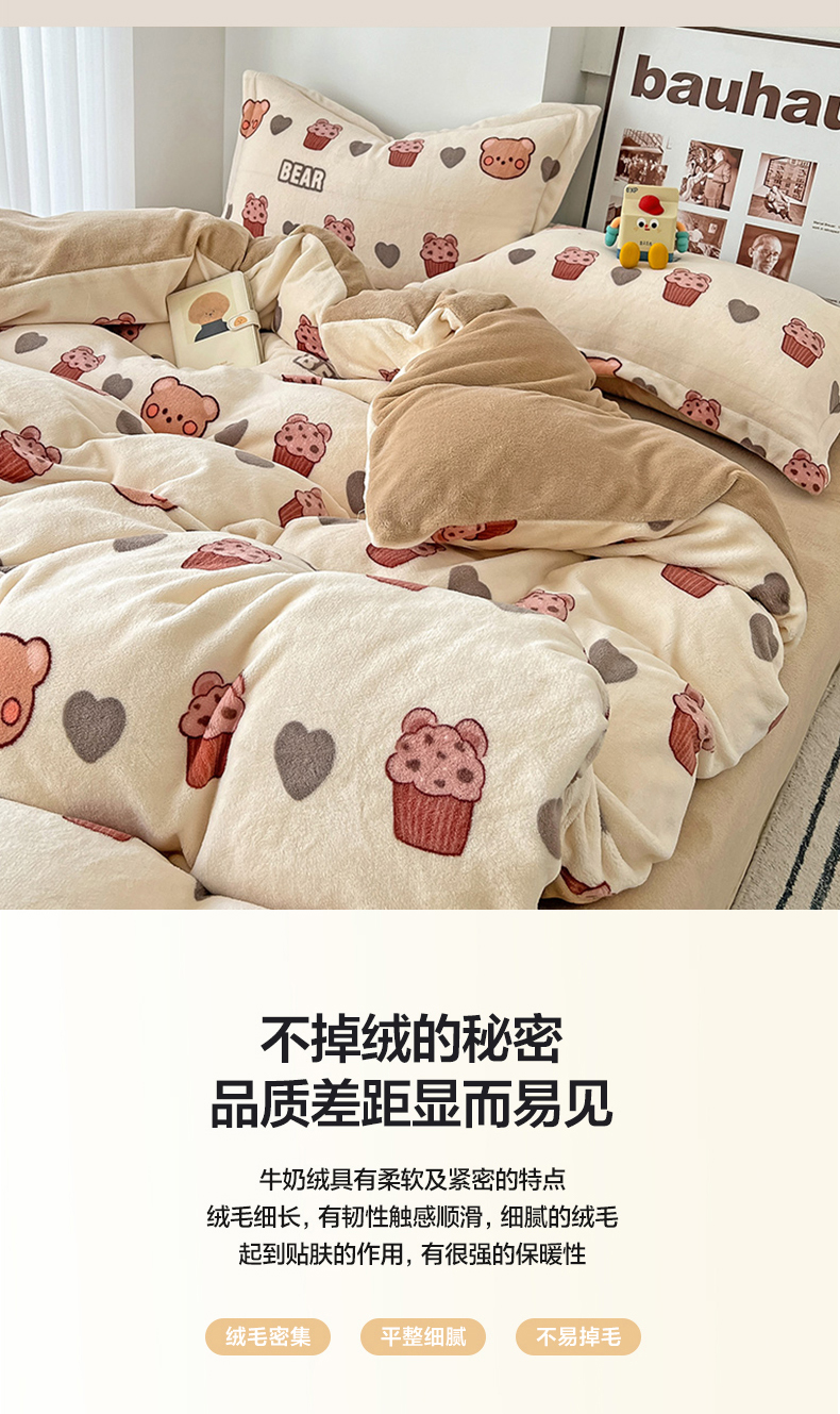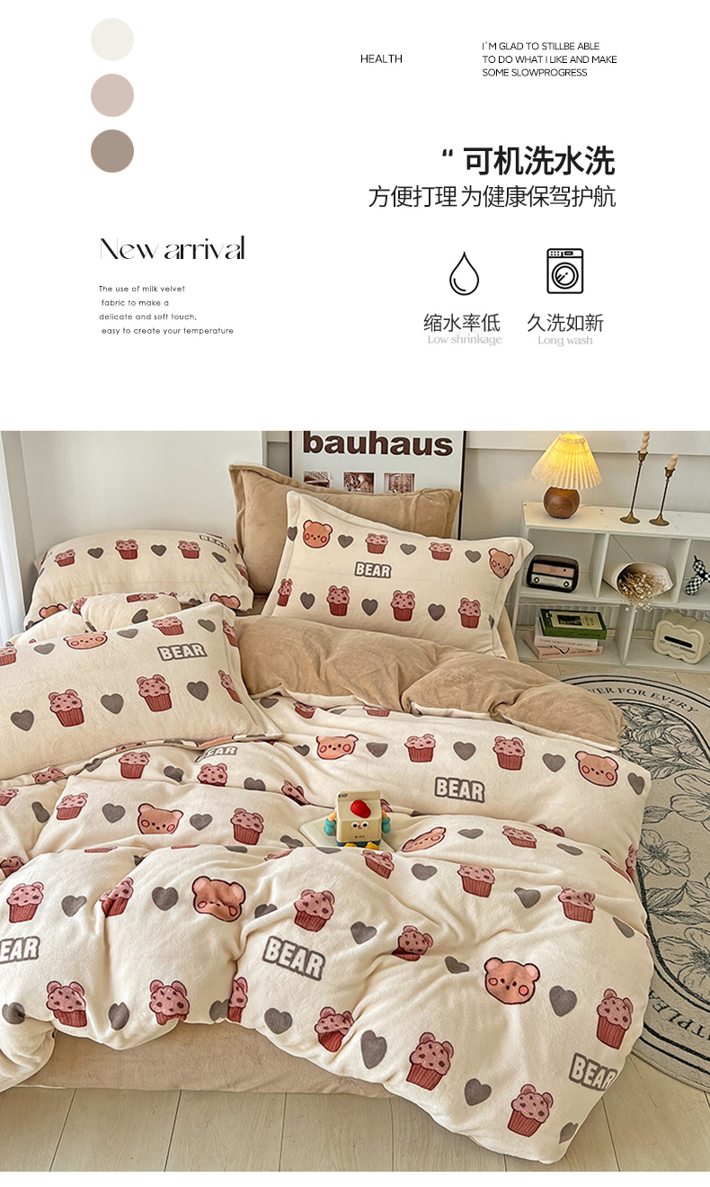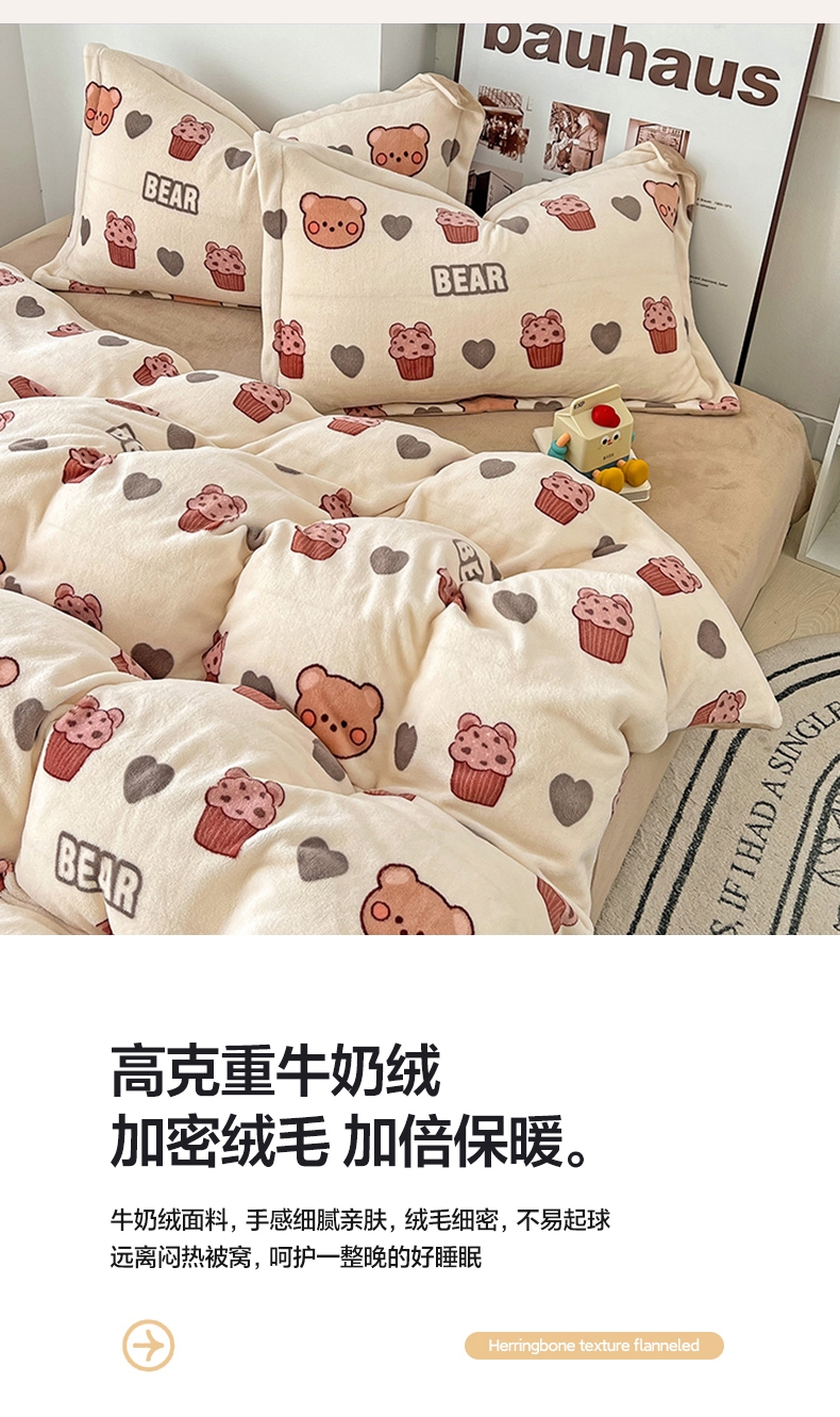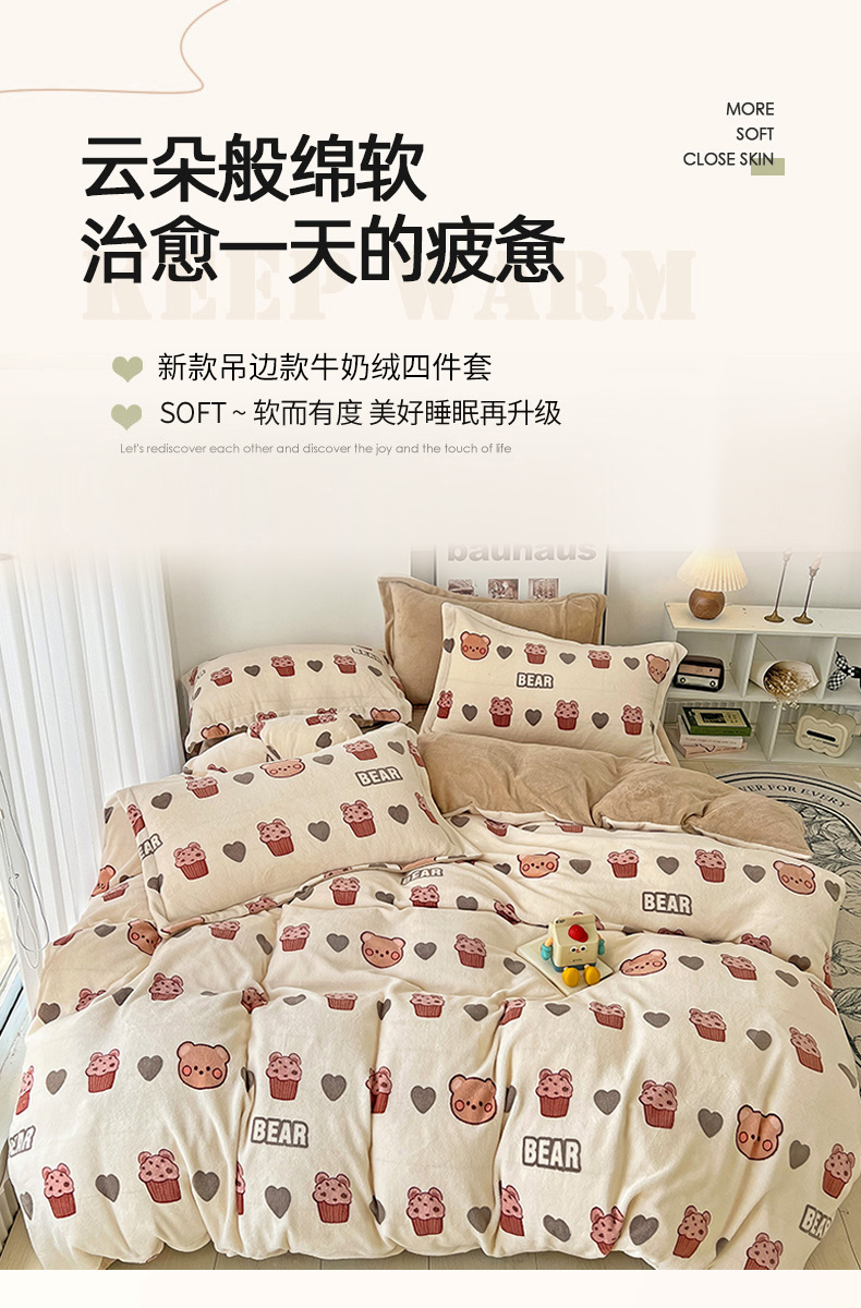 乐童2024新款吊边款牛奶绒四件套 饼干熊