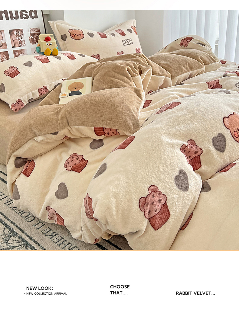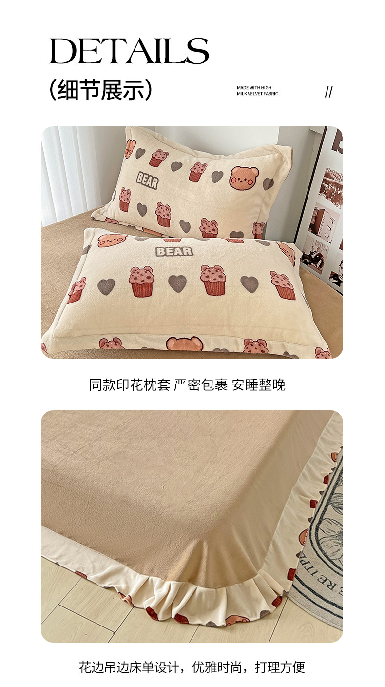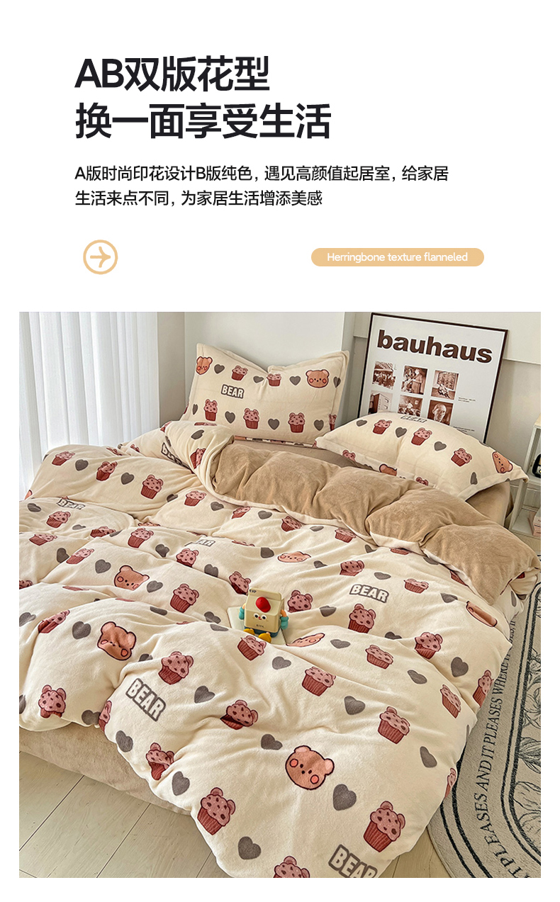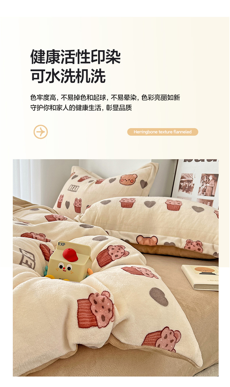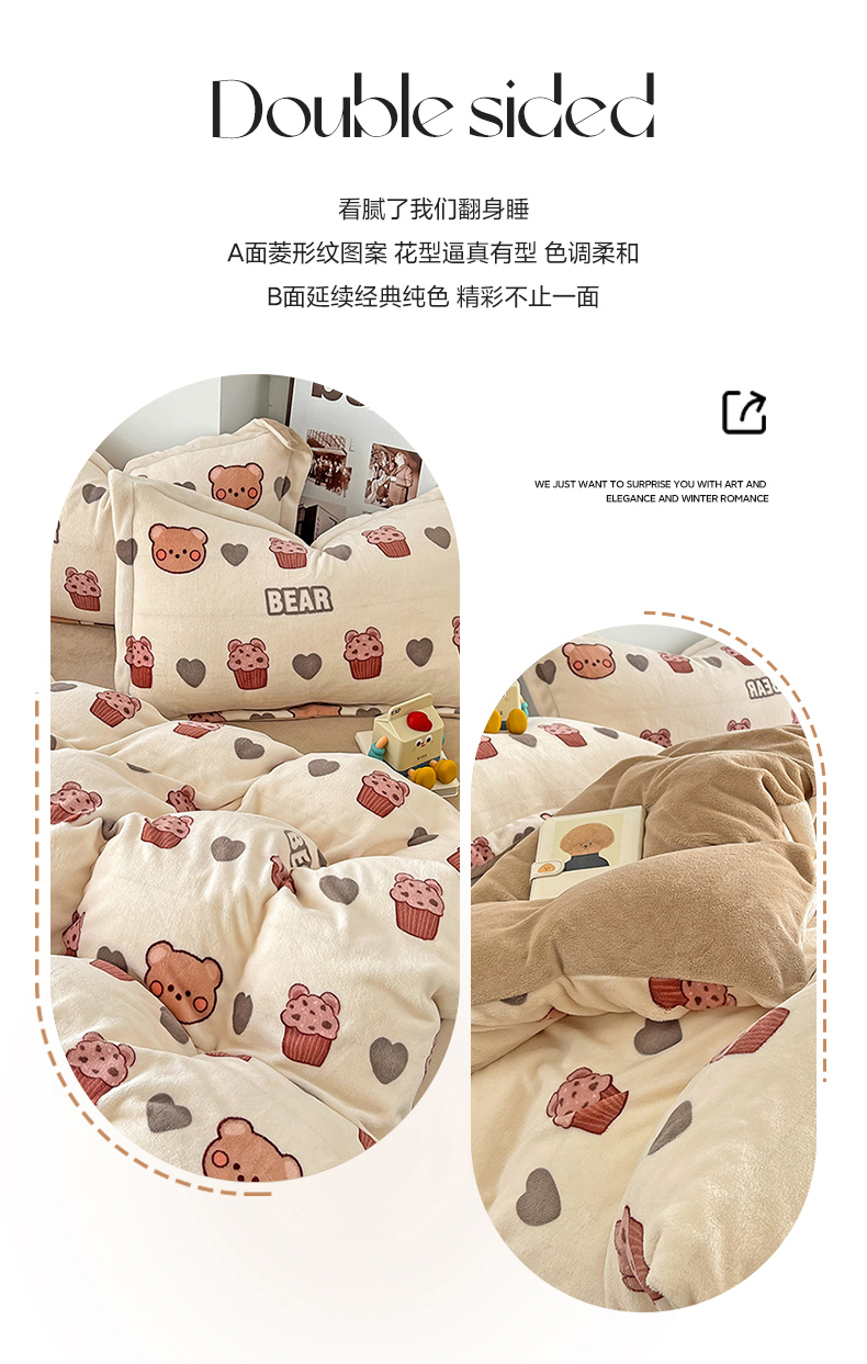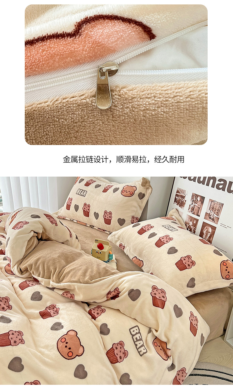 乐童2024新款吊边款牛奶绒四件套 饼干熊