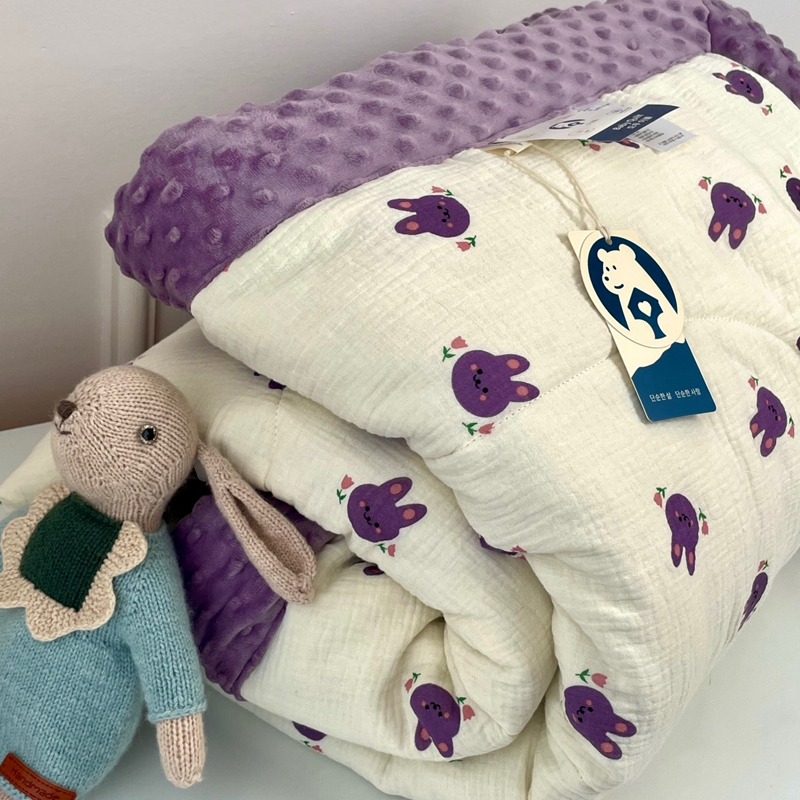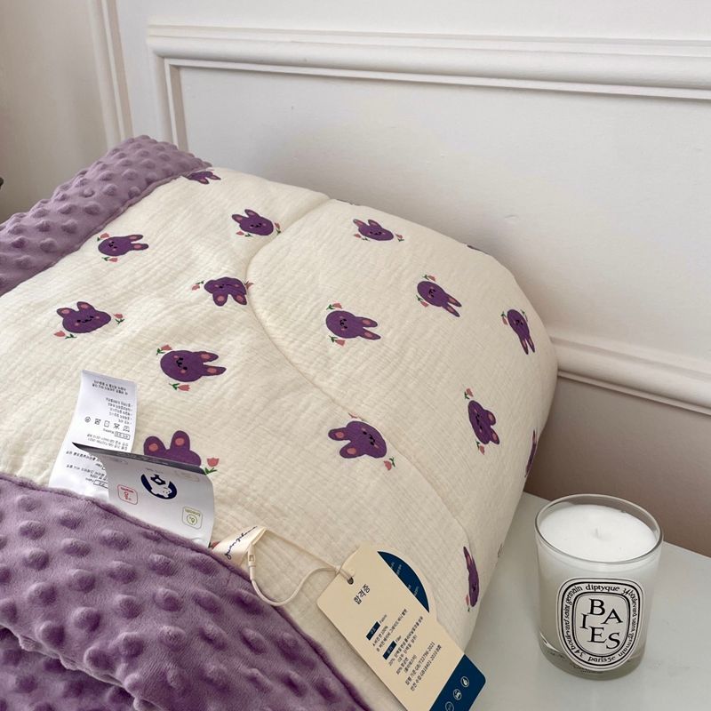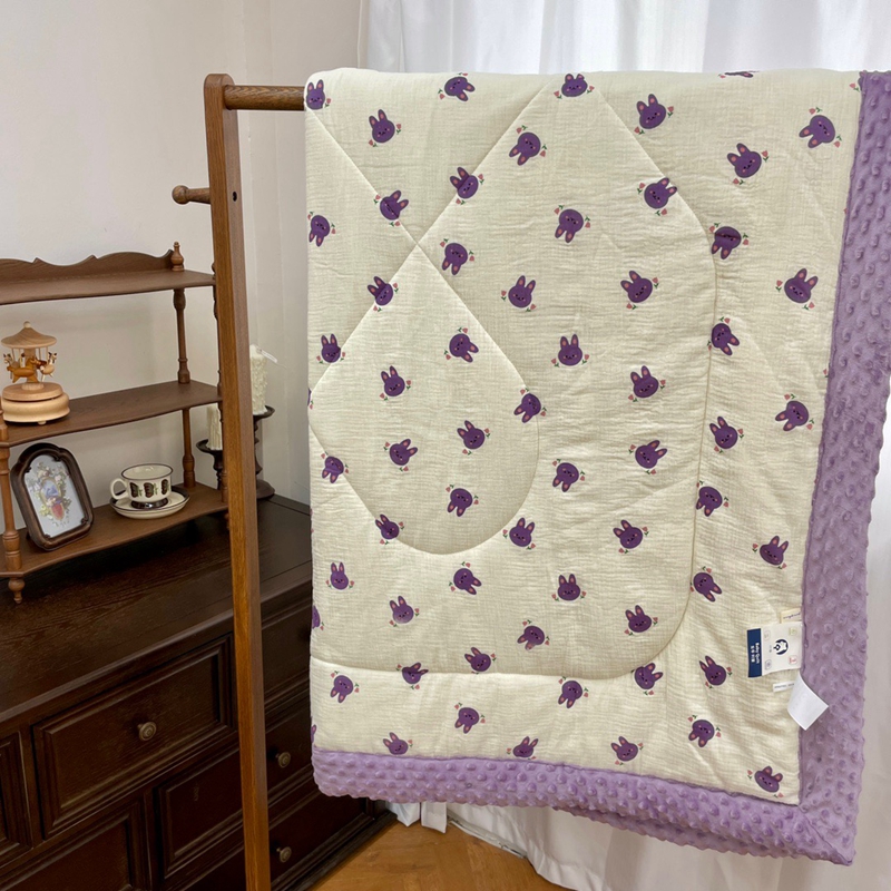 商品名称:源启生活 2023新款全棉皱皱纱手包边豆豆被 紫小兔