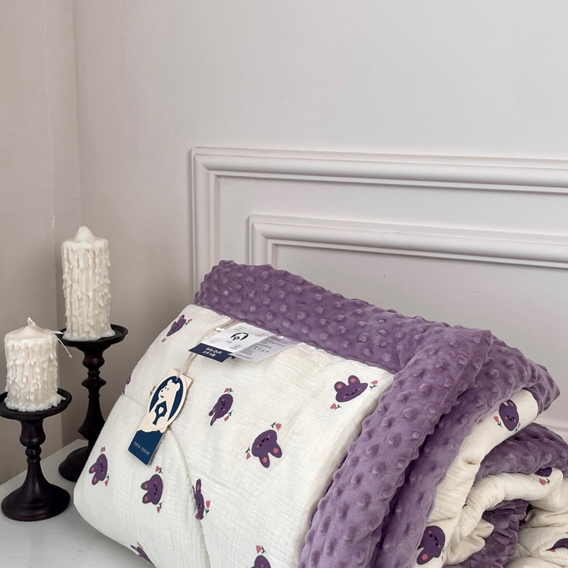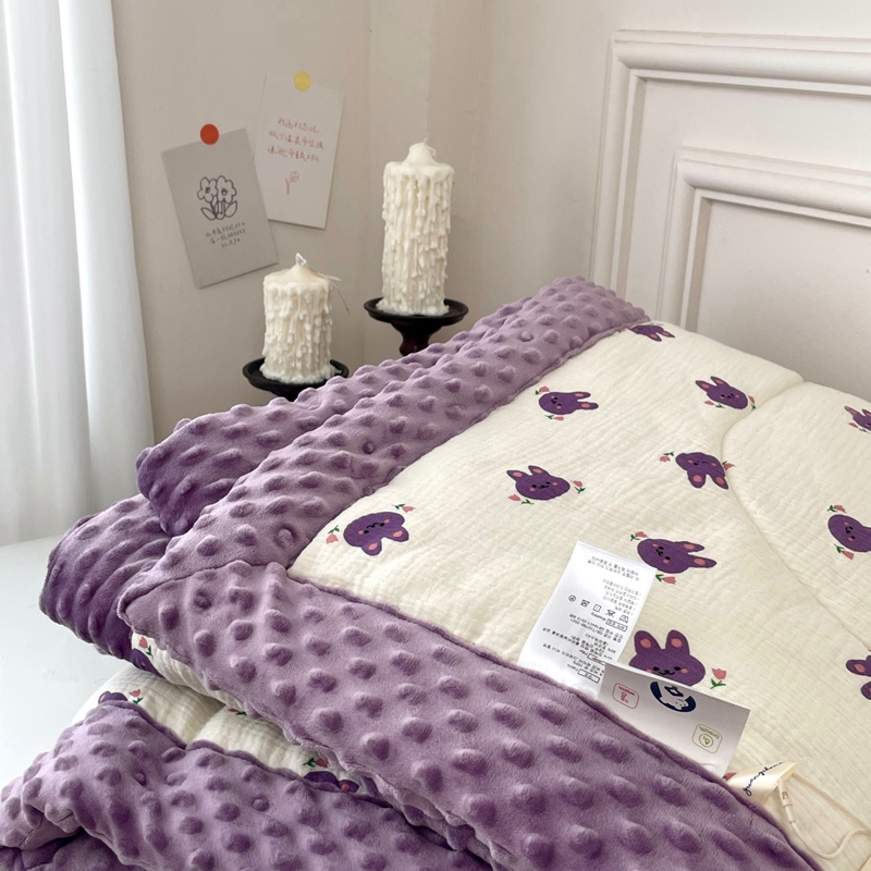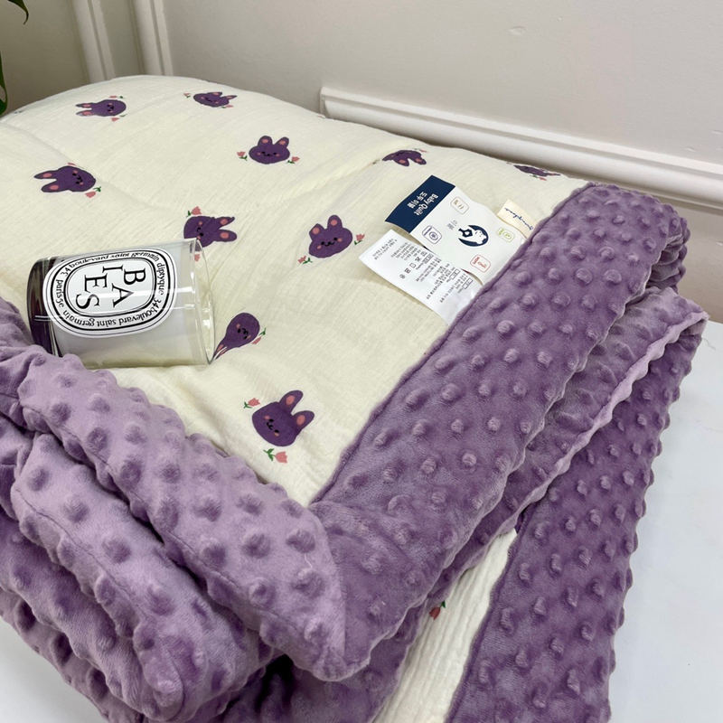 源启生活 2023新款全棉皱皱纱手包边豆豆被 紫小兔
