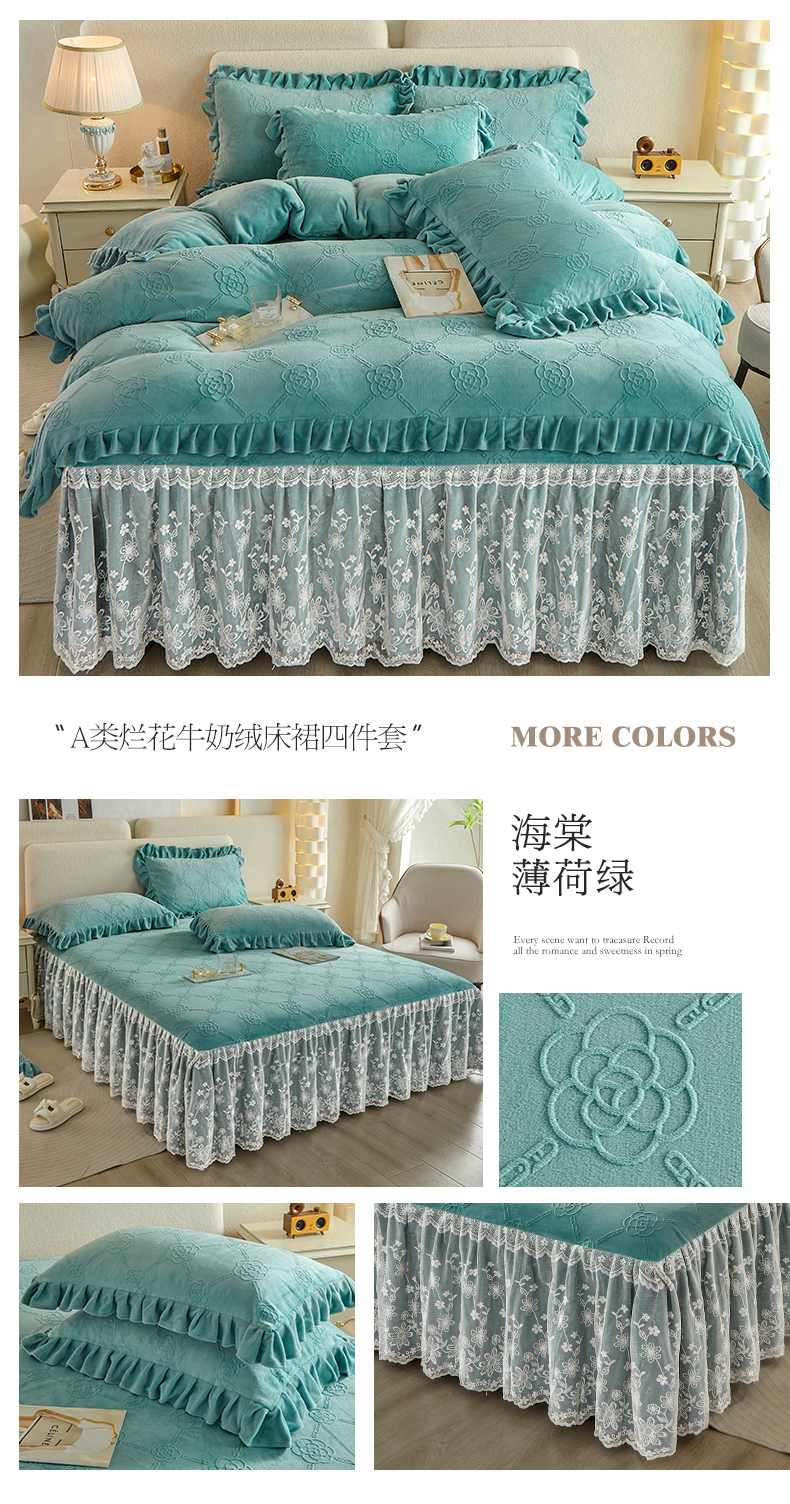 商品名称:(总)宜凡 2023新款烂花牛奶绒床裙四件套