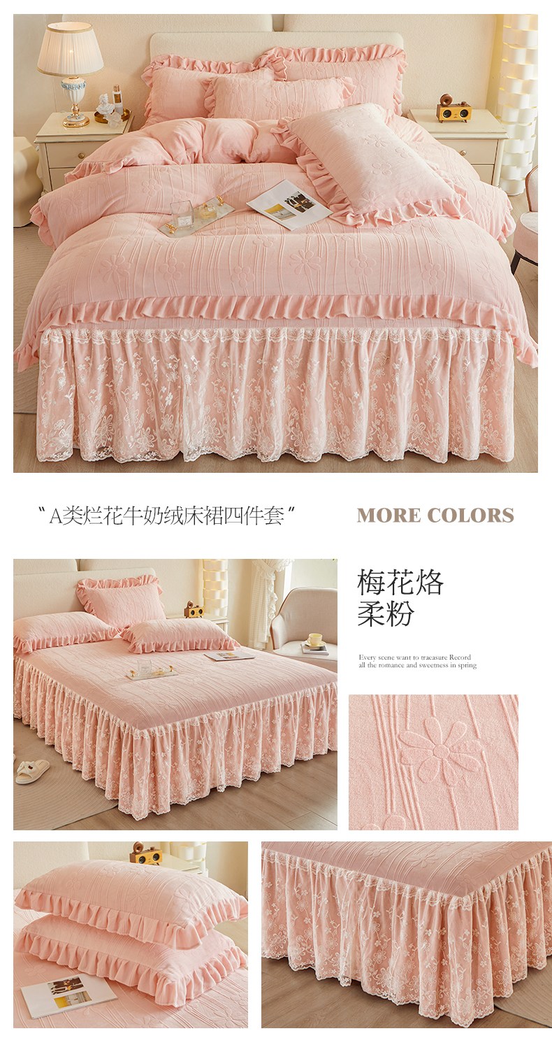 (总)宜凡 2023新款烂花牛奶绒床裙四件套