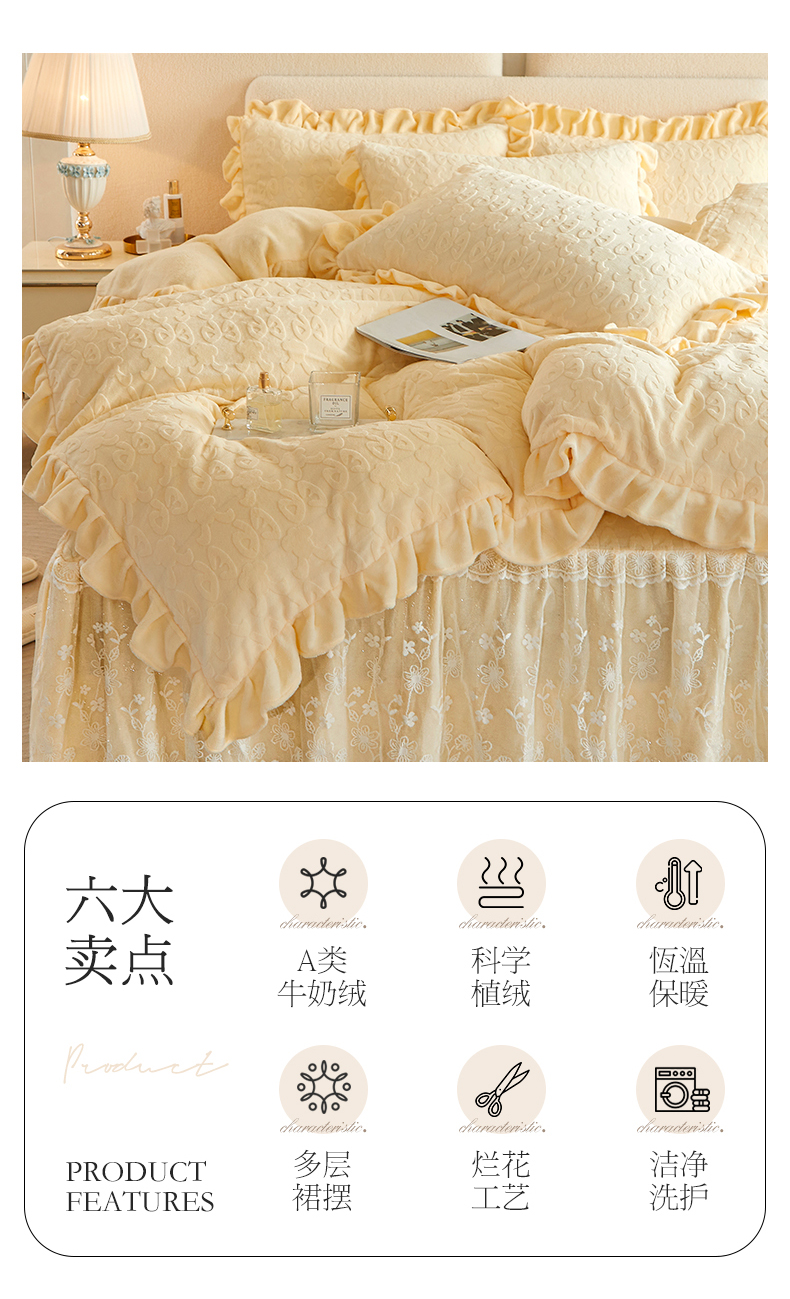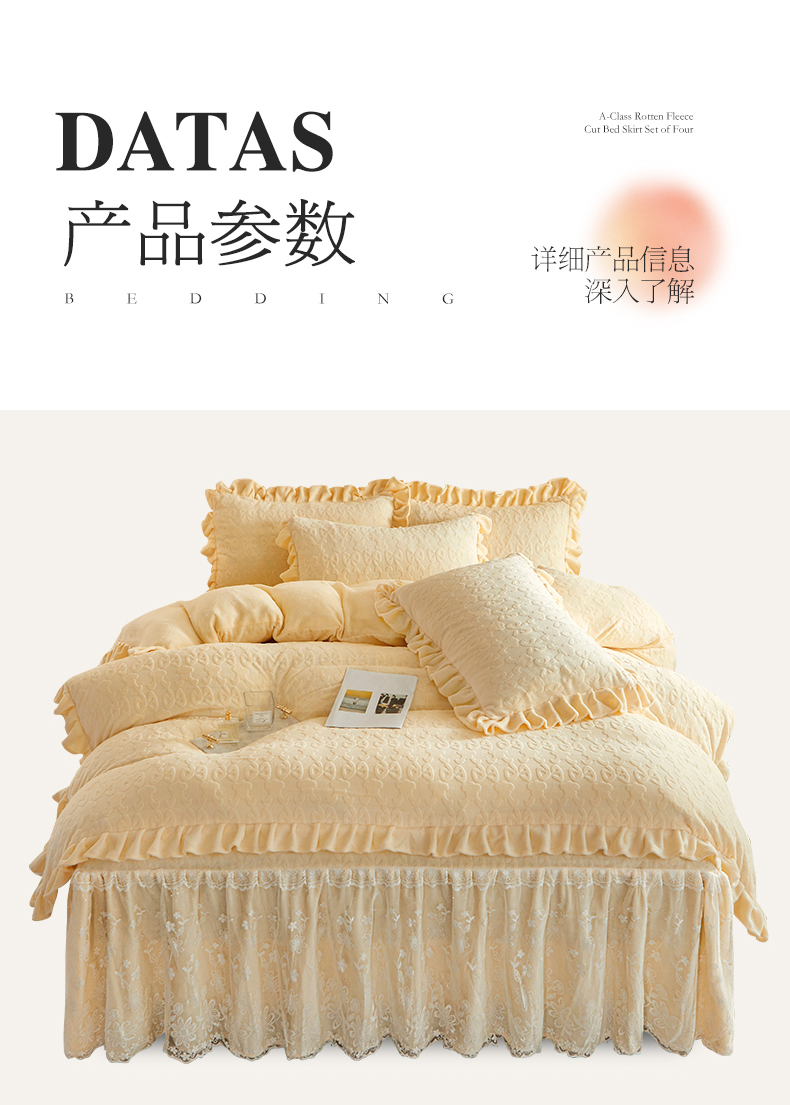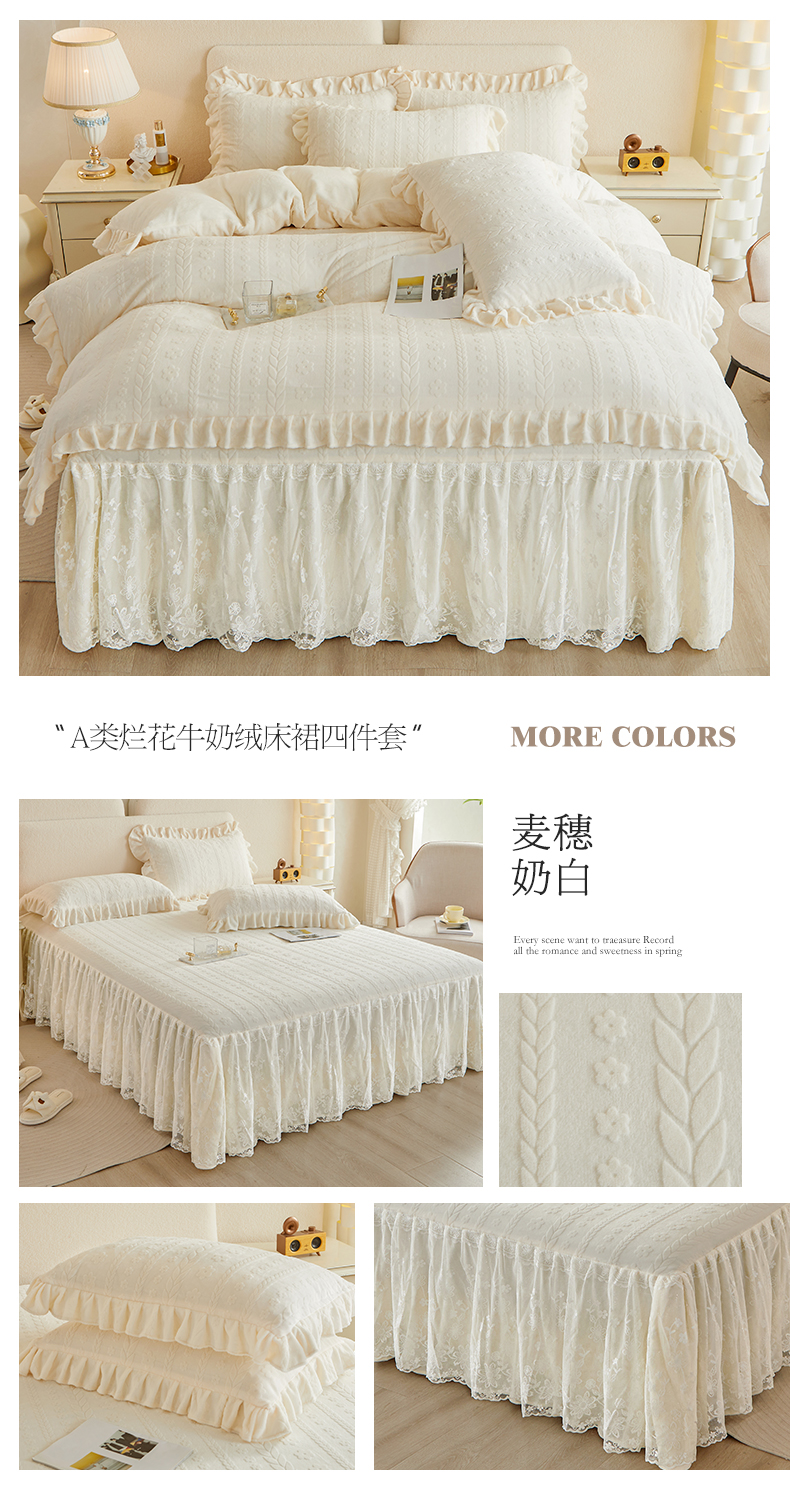 当前位置: 91家纺网 > 商品网购 > 床品套件 > 四件套 > 牛奶绒四件套 > 宜凡 2023新款烂花牛奶绒床裙四件套 麦穗-奶白
