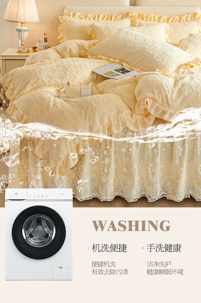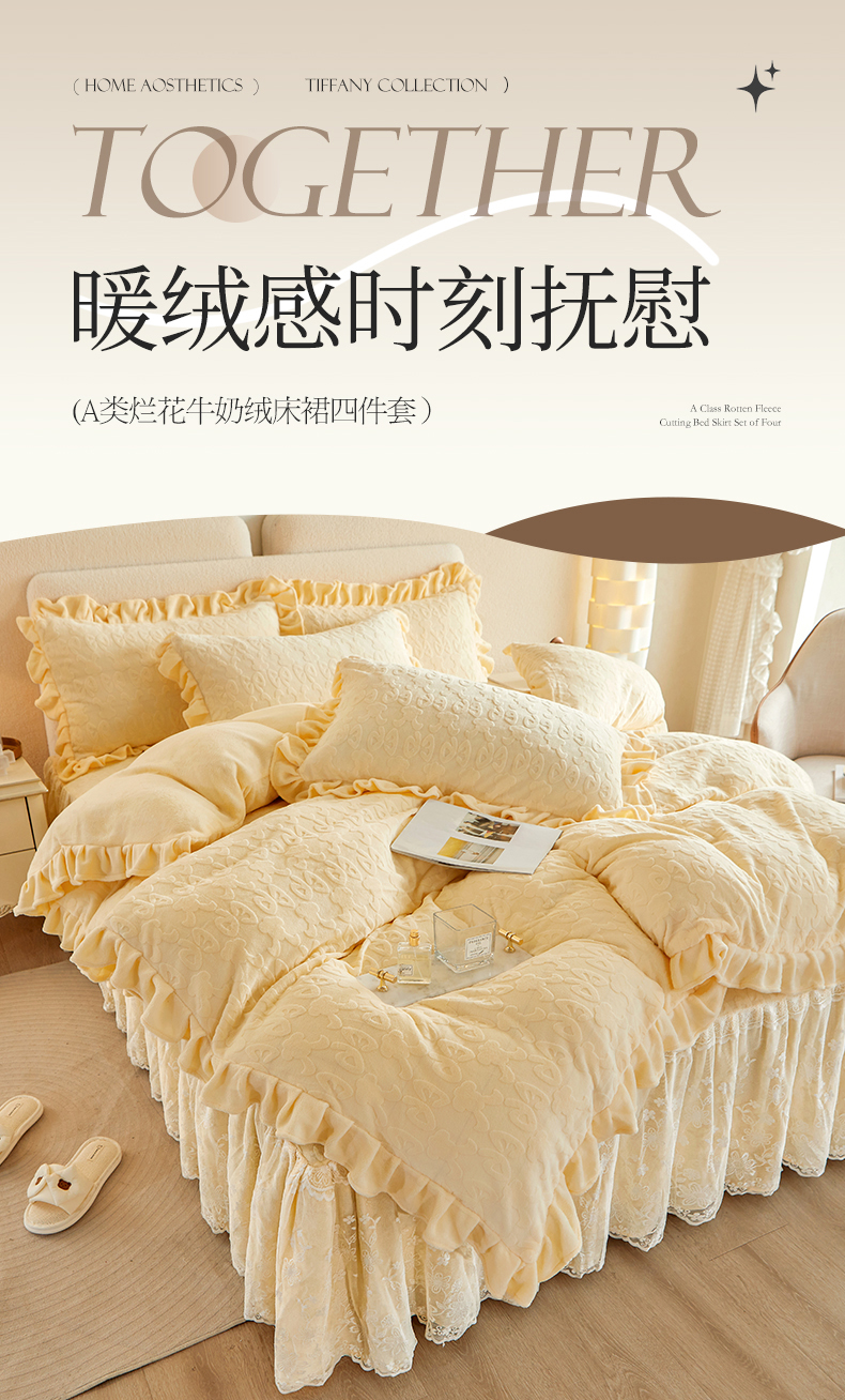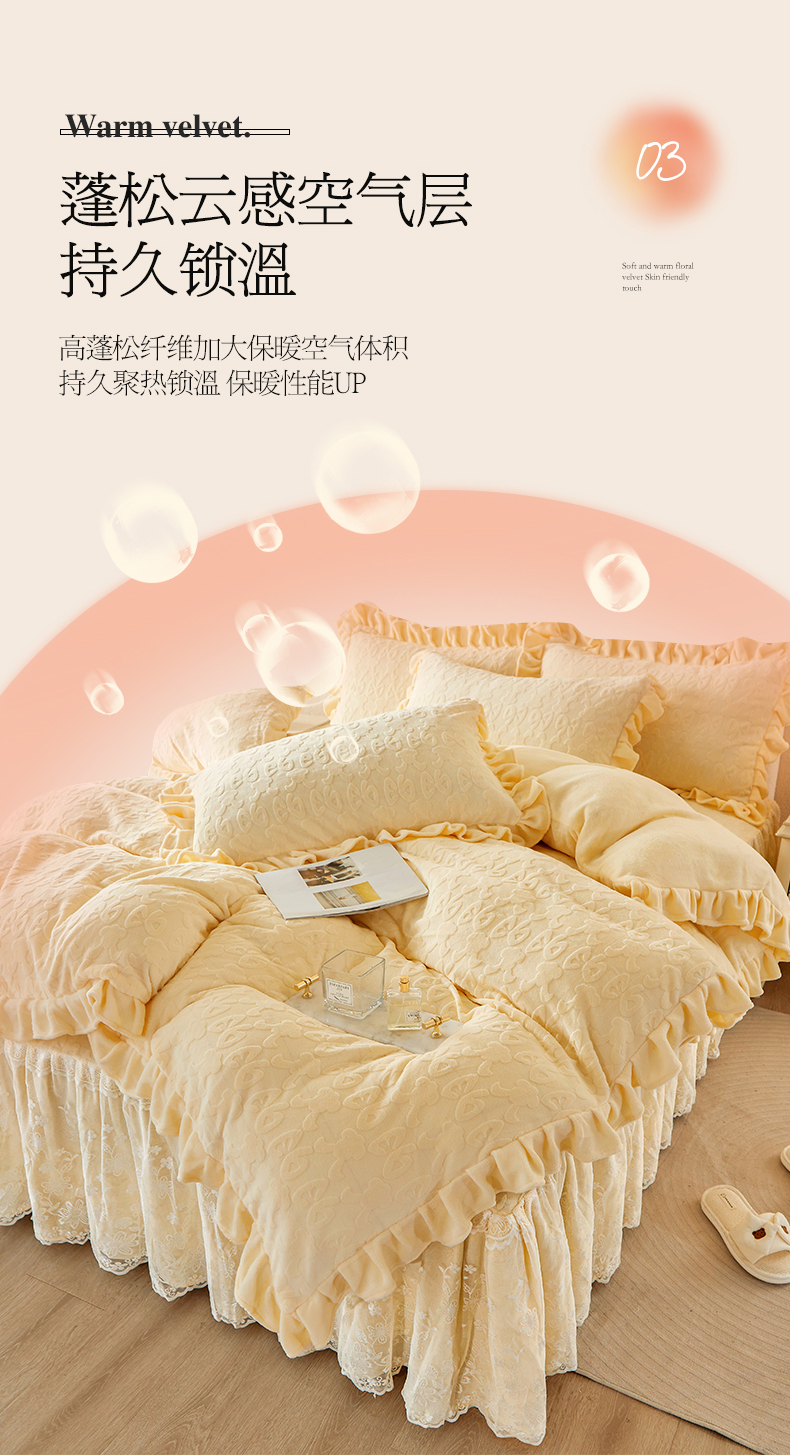 当前位置: 91家纺网 > 商品网购 > 床品套件 > 四件套 > 牛奶绒四件套 > 宜凡 2023新款烂花牛奶绒床裙四件套 麦穗-奶白