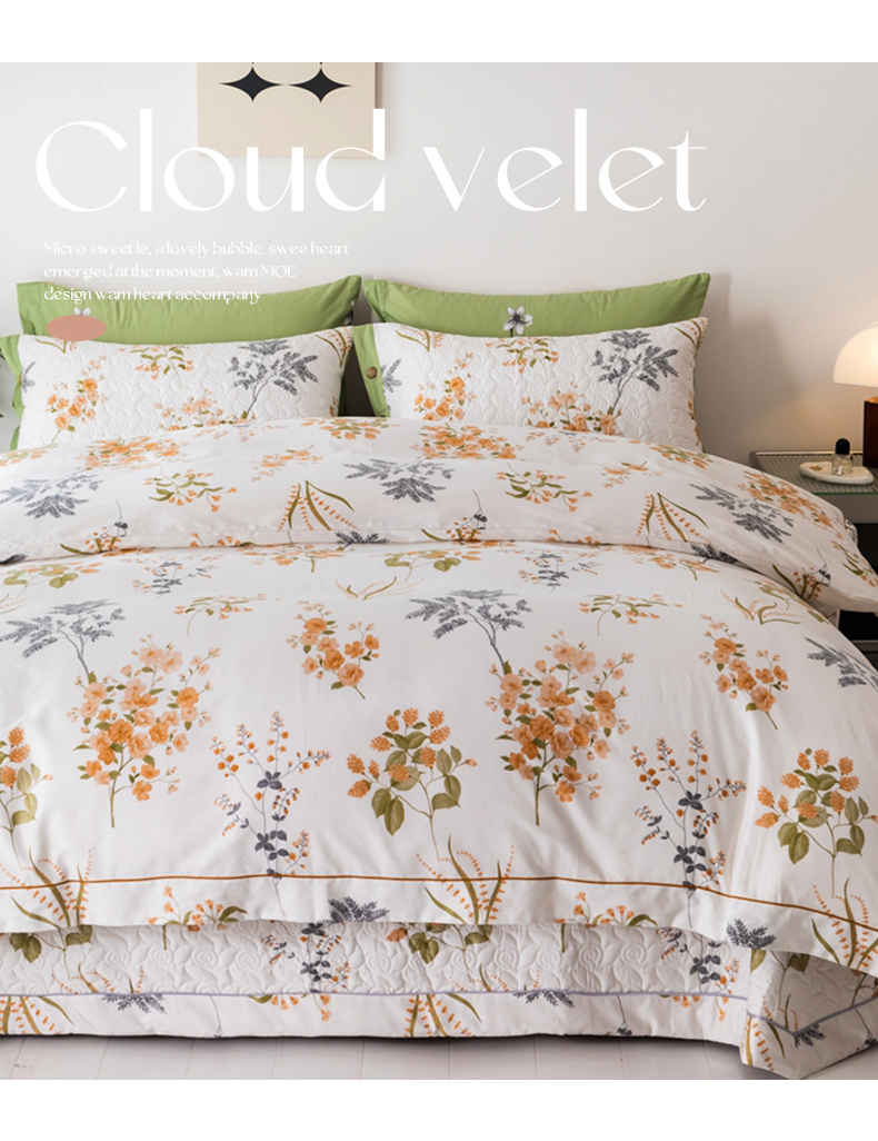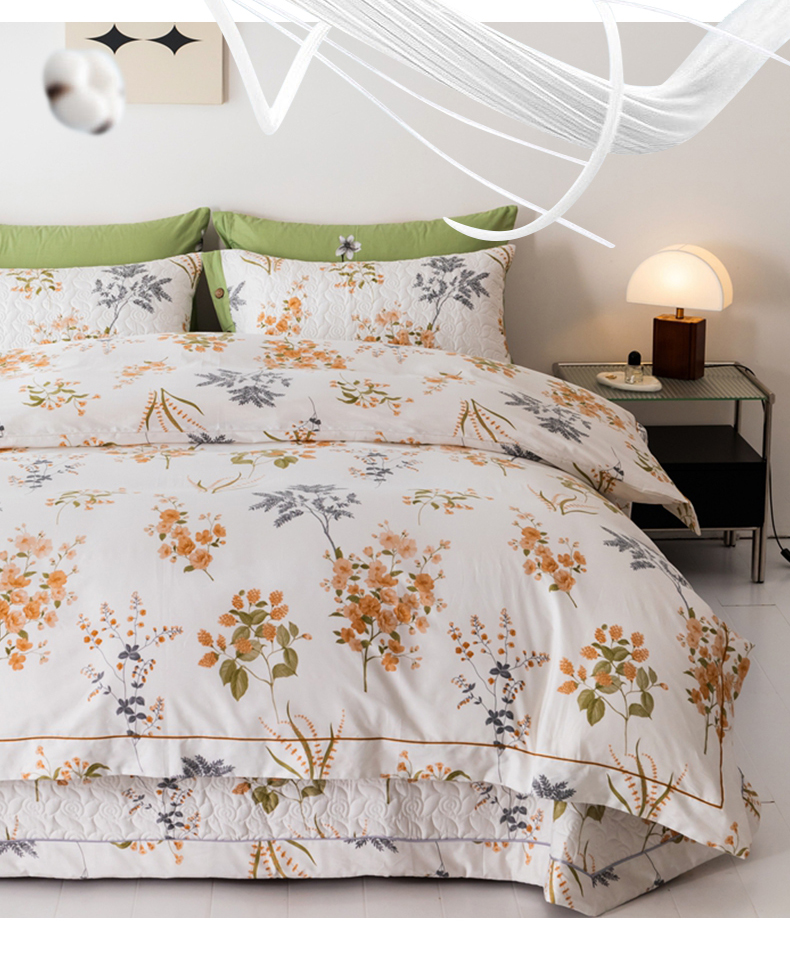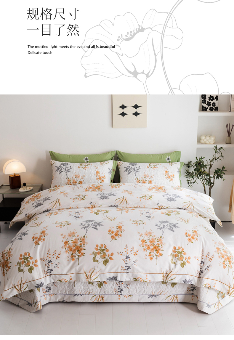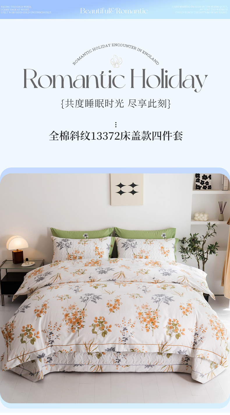 商品名称:优乐家纺 2025新款纯棉斜纹床盖款单层被套四件套 如梦花季