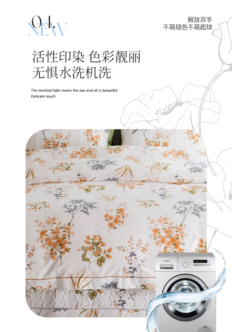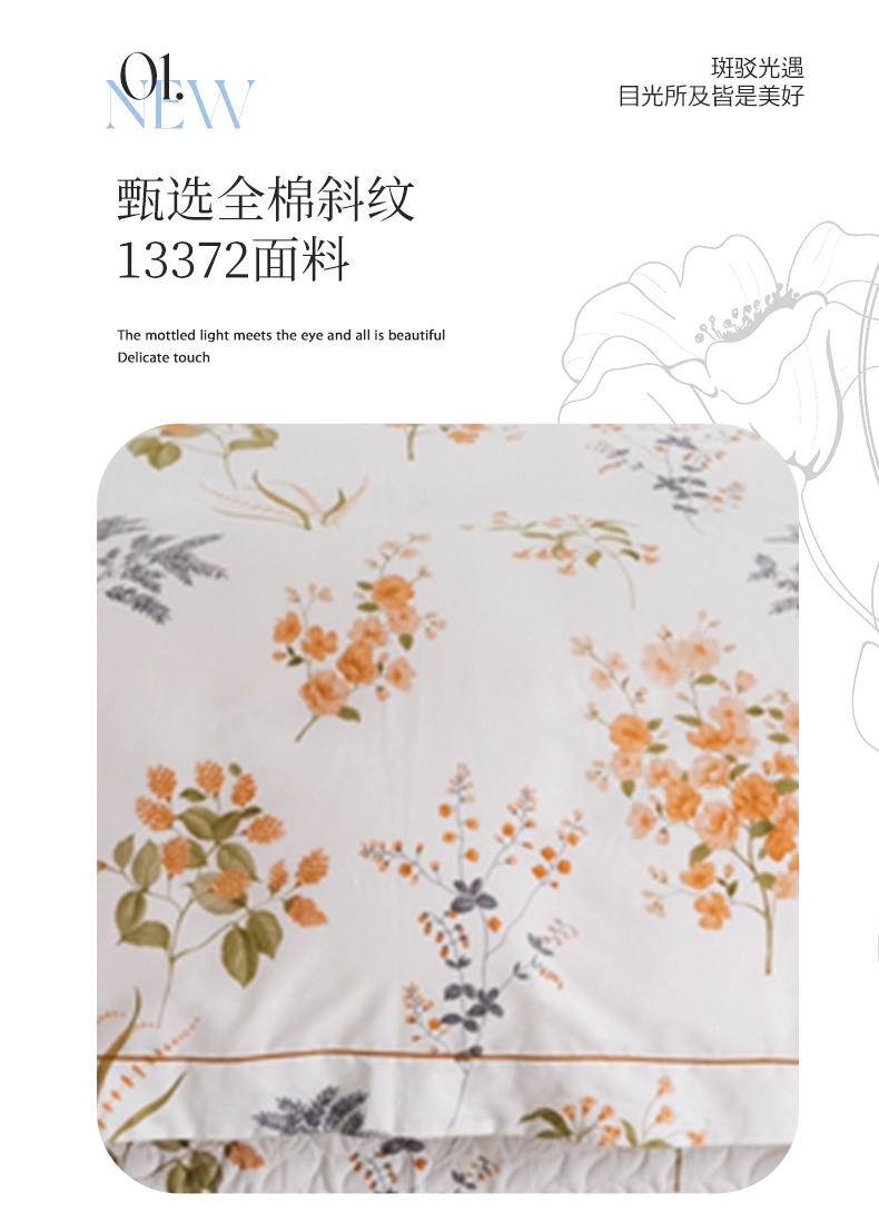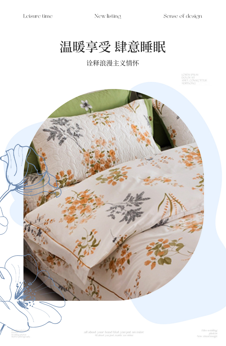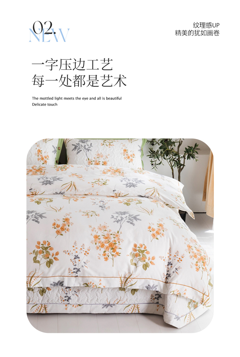 商品名称:优乐家纺 2025新款纯棉斜纹床盖款单层被套四件套 如梦花季