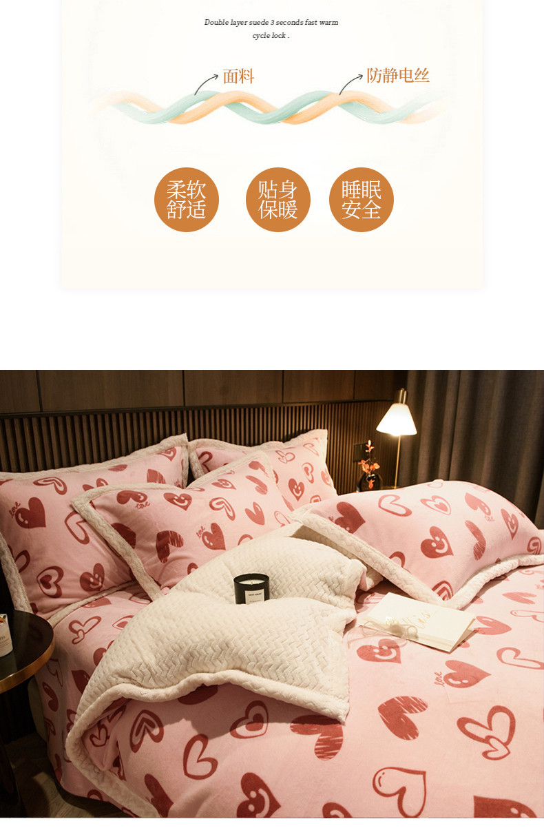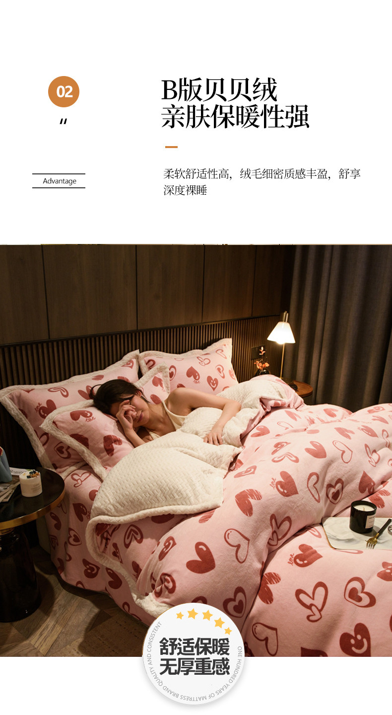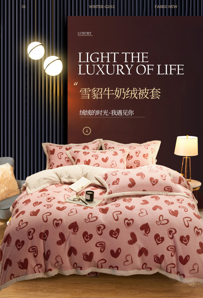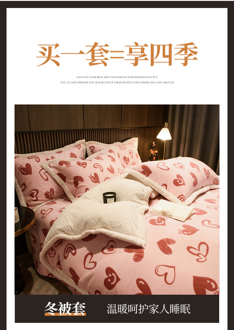 商品名称:全季家居 2023新款纯色印花抗静电大包边牛奶绒贝贝绒单被套 暖心