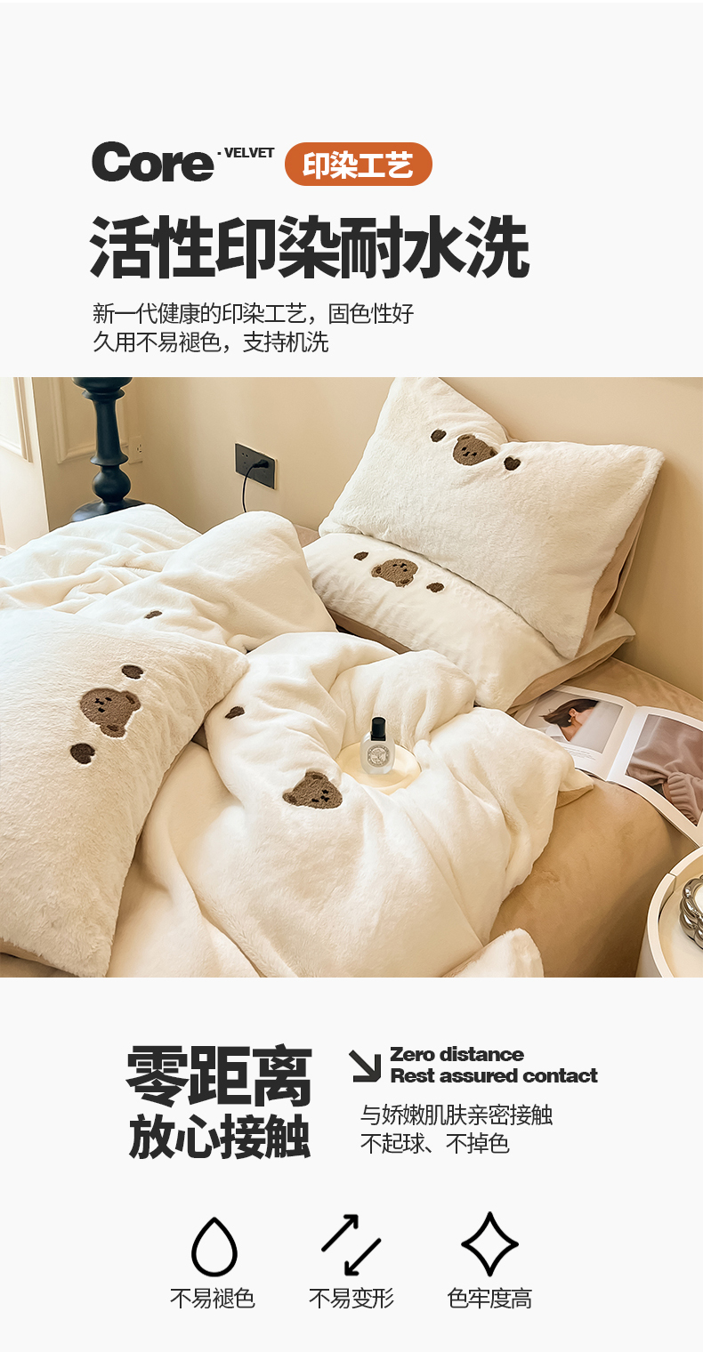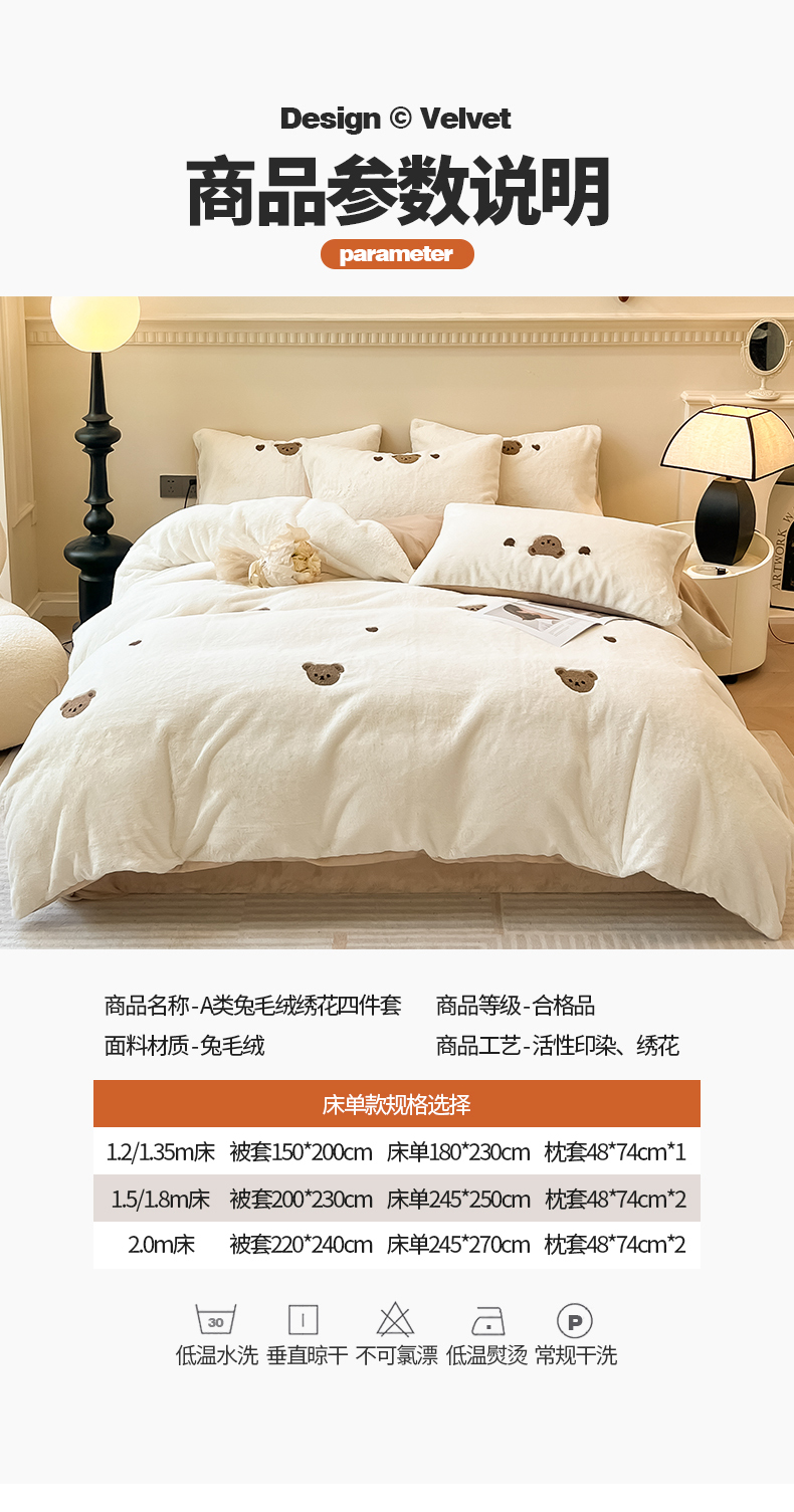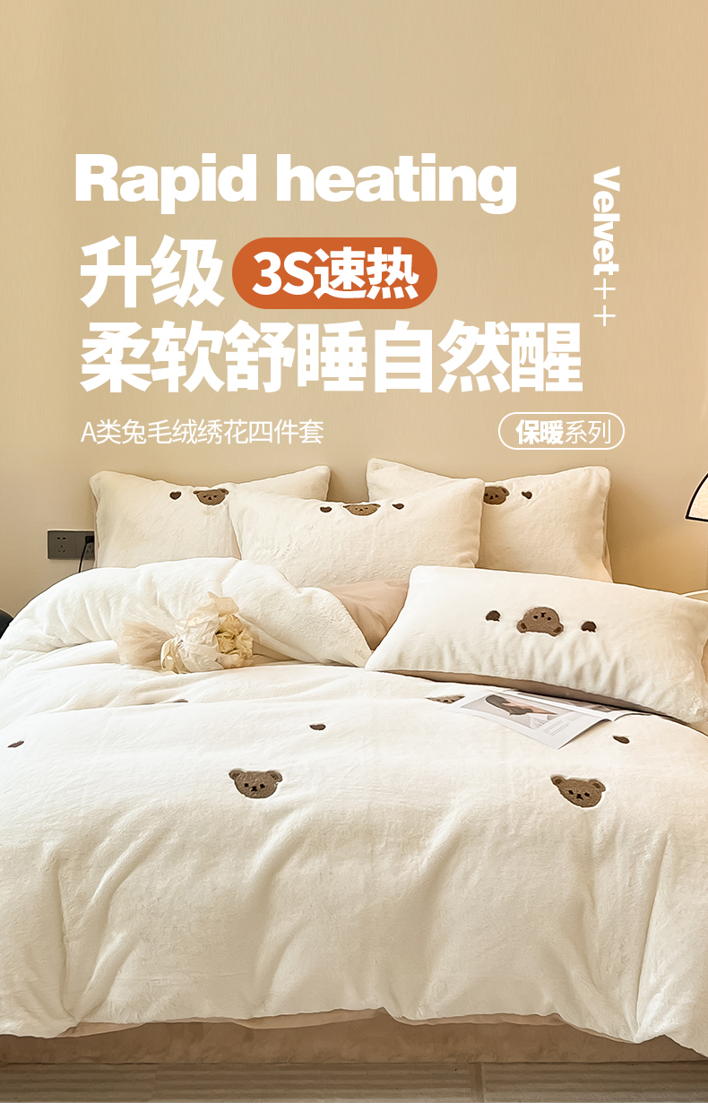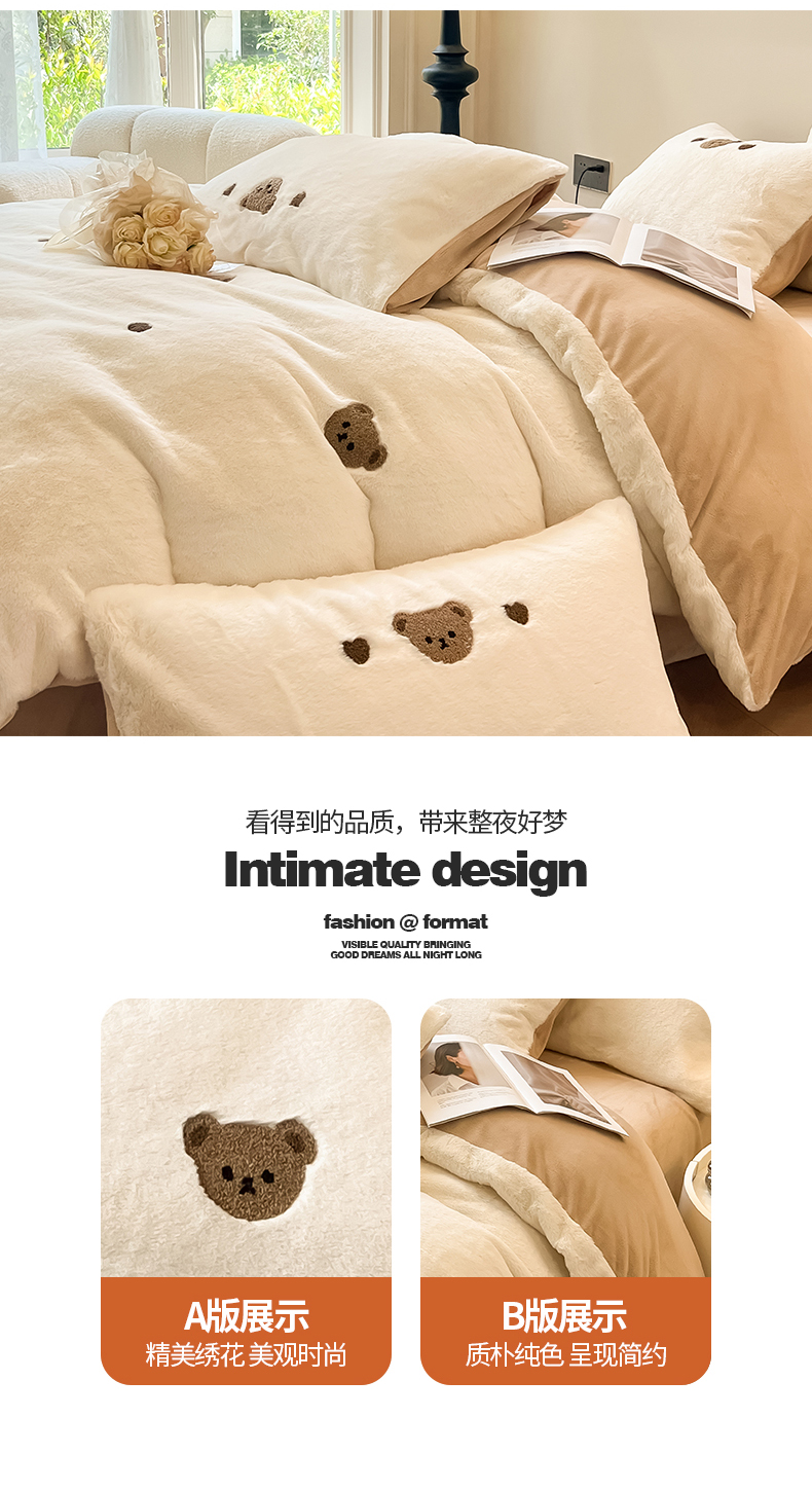 商品名称:懒猫家纺 2024新款兔毛绒毛巾绣四件套 元气小熊-奶盖白