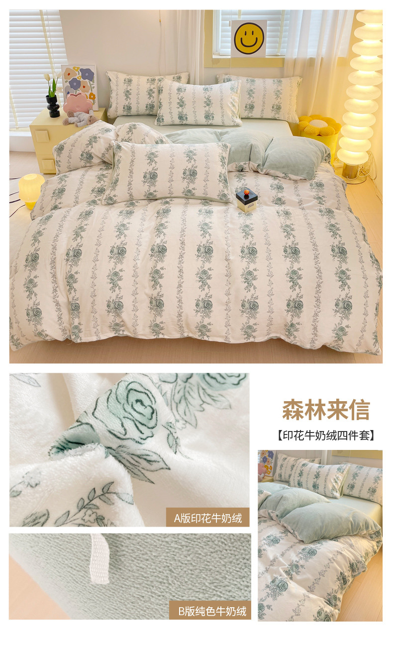 当前位置: 91家纺网 > 商品网购 > 床品套件 > 四件套 > 牛奶绒四件套 > 梦柏家纺 2023新款高克重牛奶绒印花四件套 森林来信