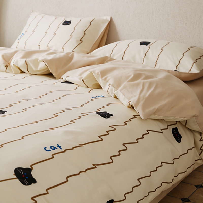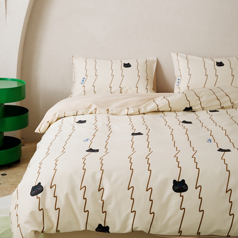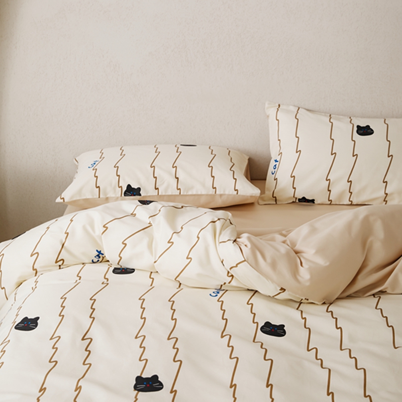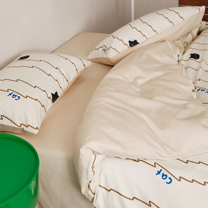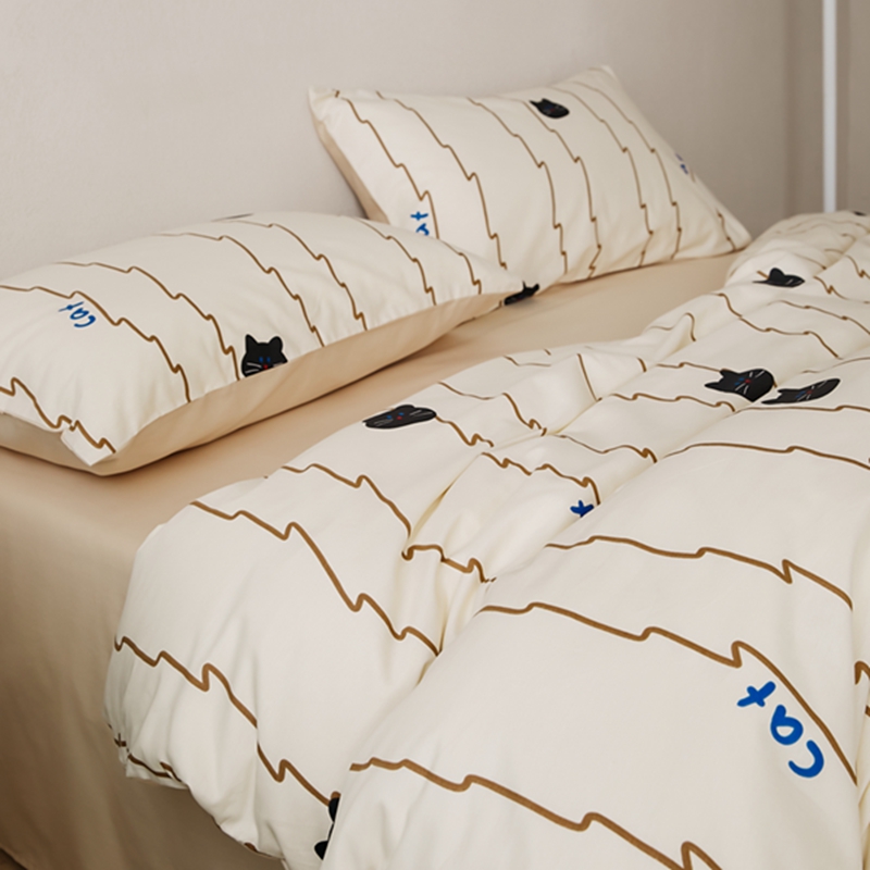 原研家居 2023新款40支全棉13070印花四件套-野兽派系列 波浪猫