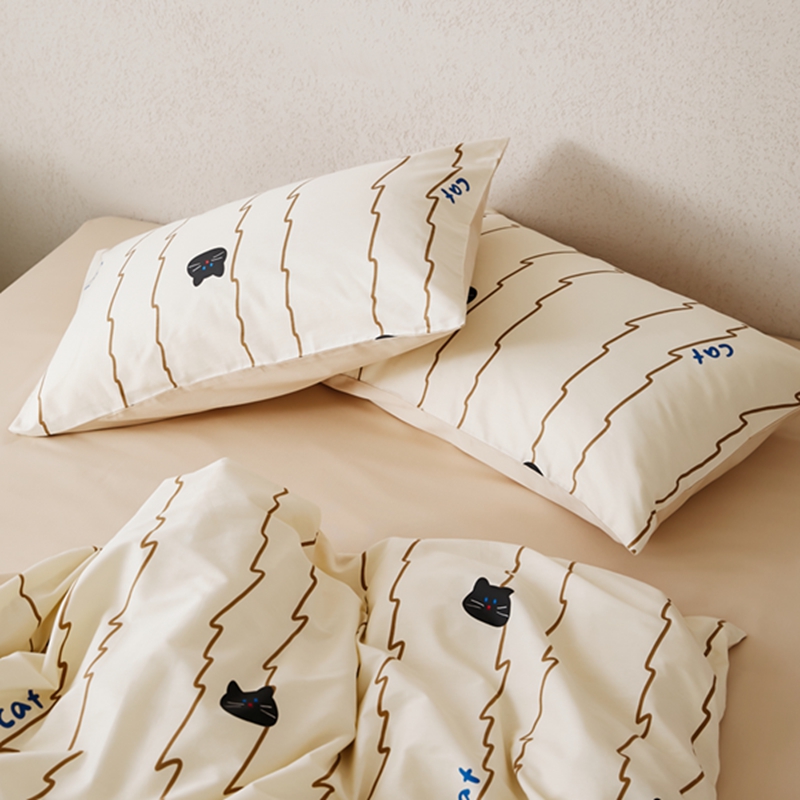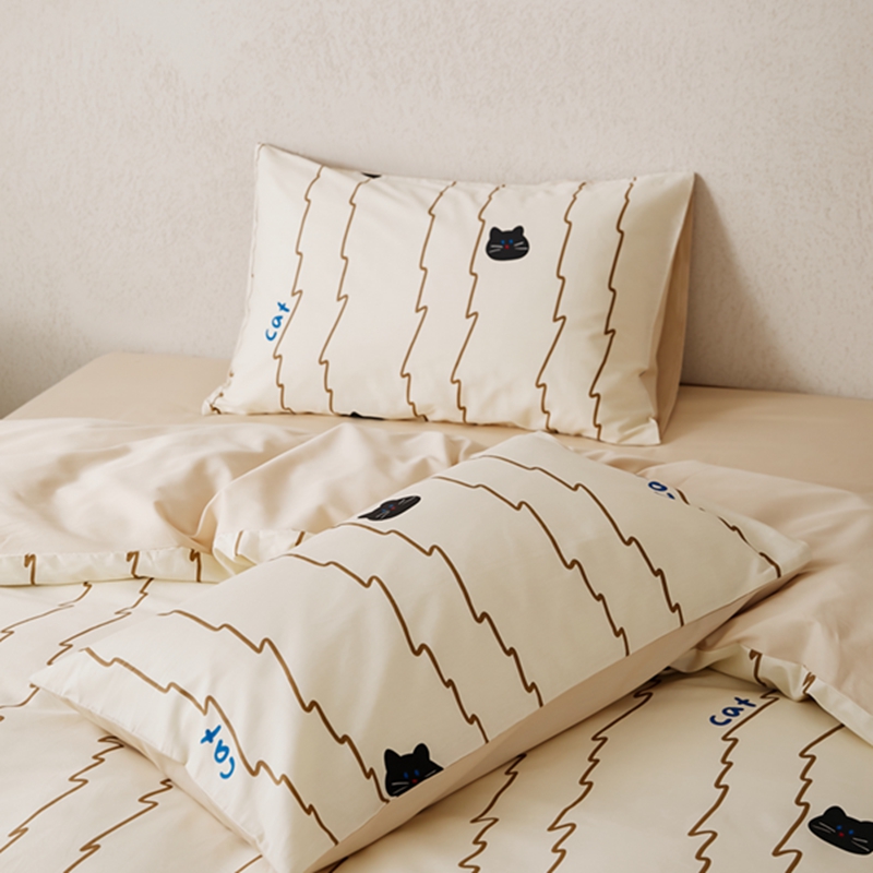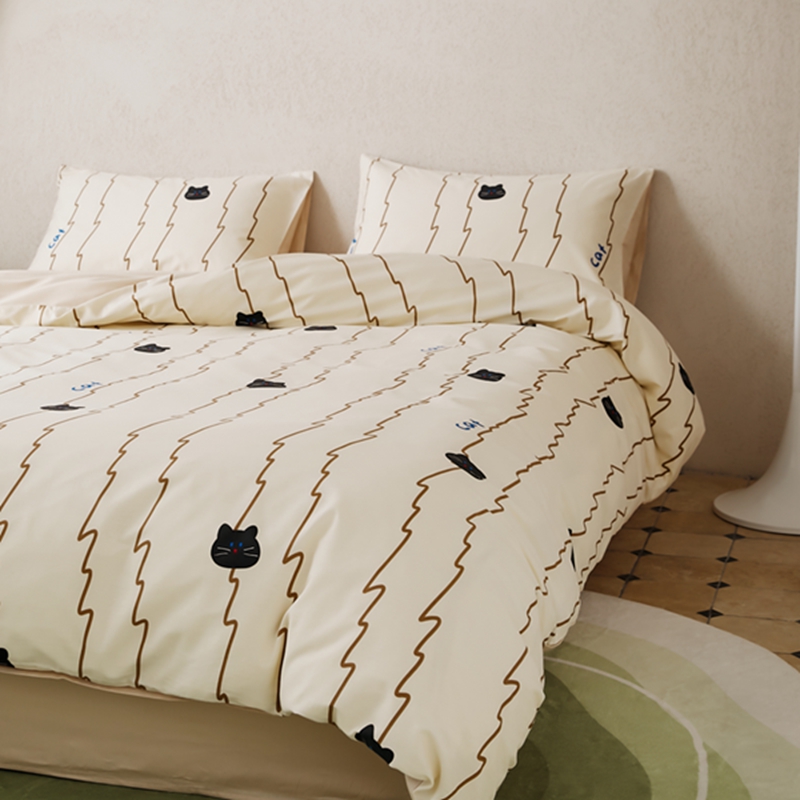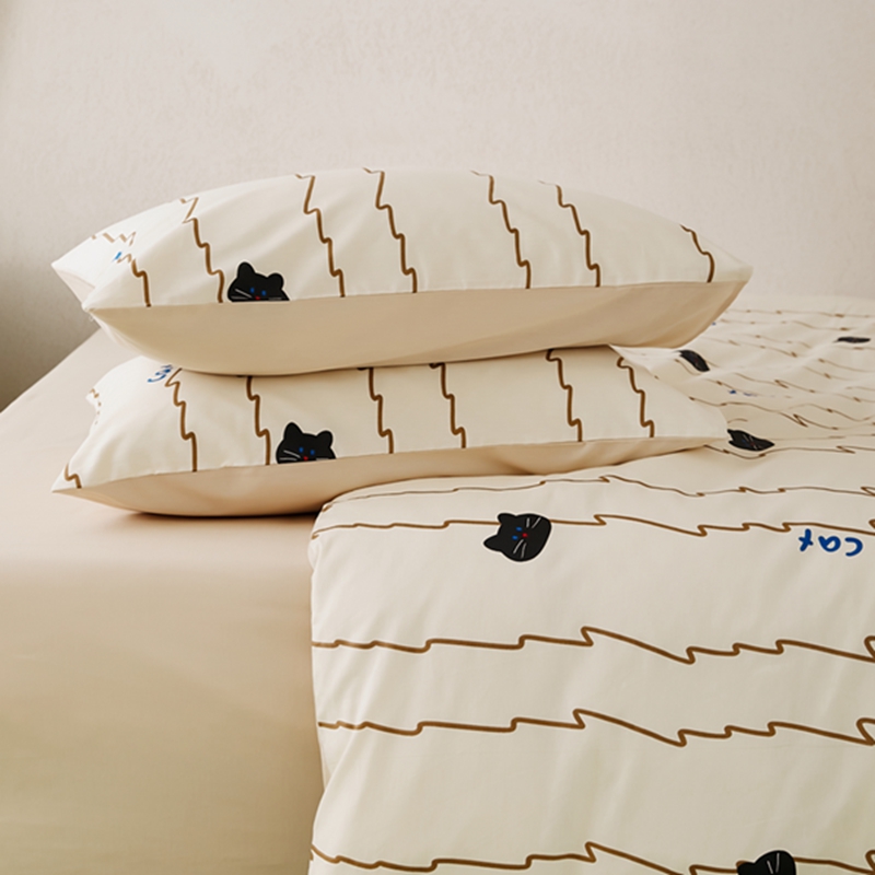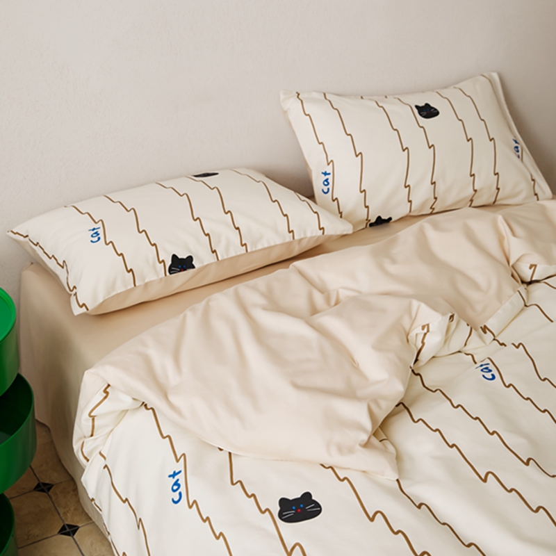 原研家居 2023新款40支全棉13070印花四件套-野兽派系列 波浪猫