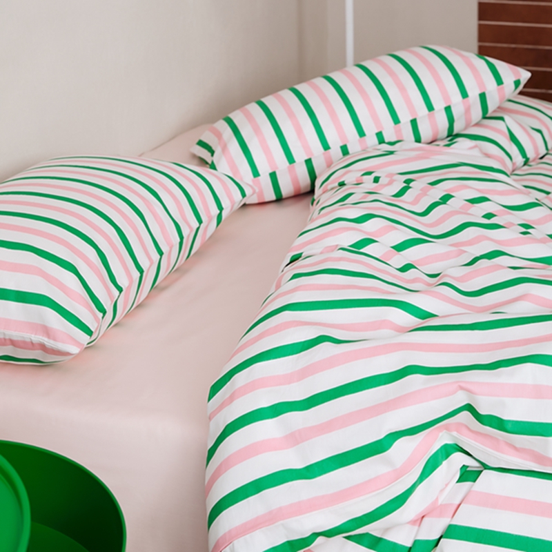 (总)原研家居 2025新款棉麻色织条纹系列四件套,棉麻黄条,棉麻绿条,棉麻粉条