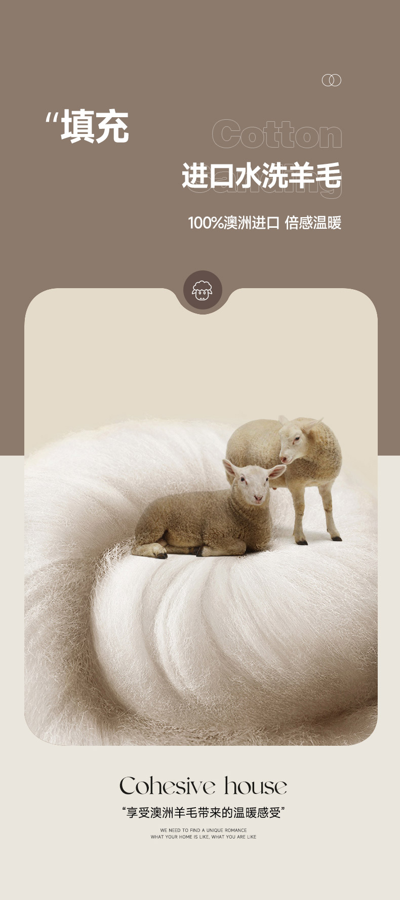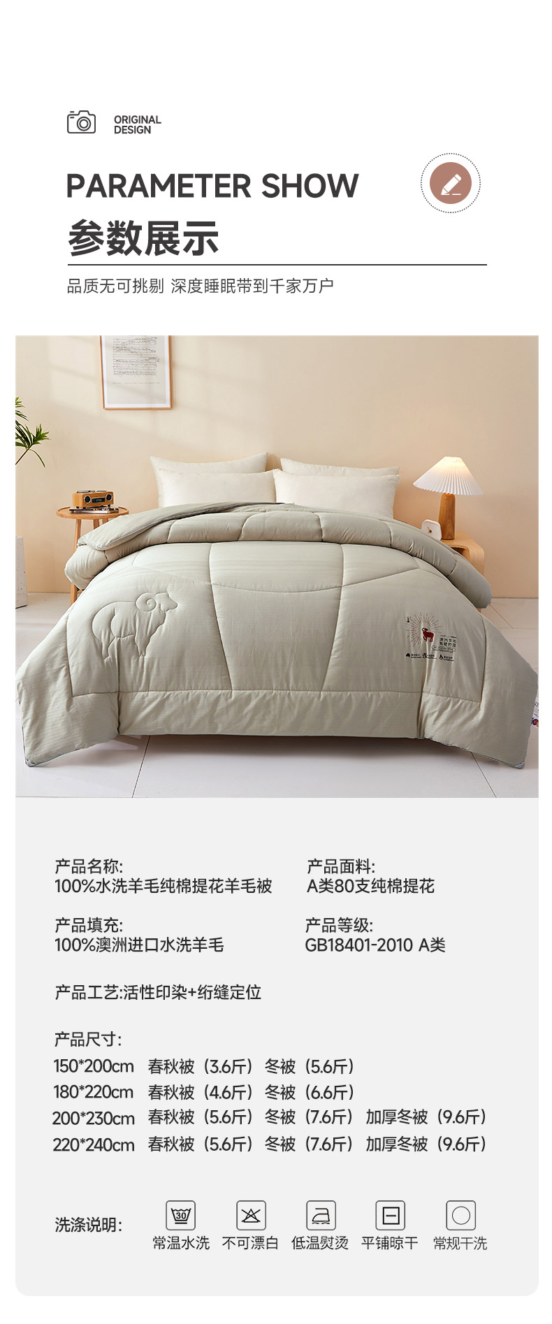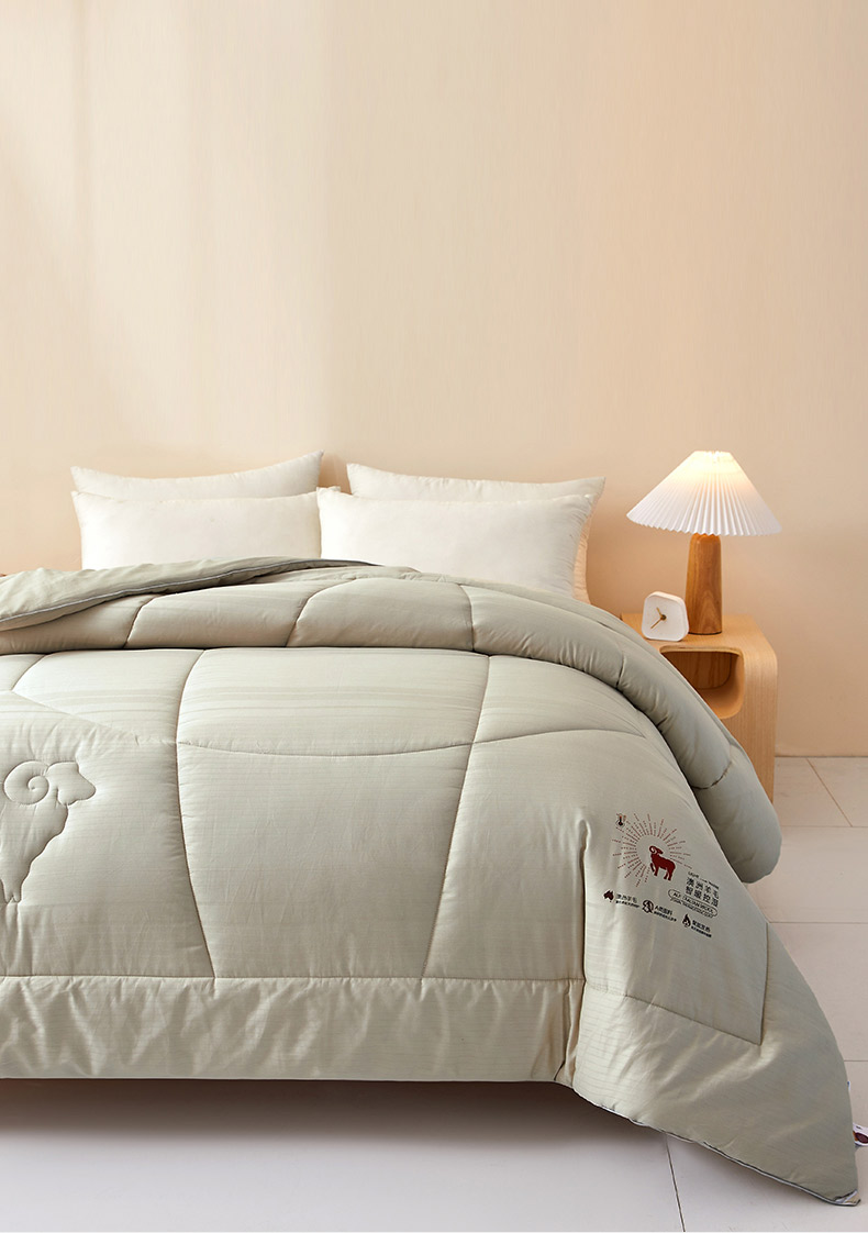 • 91家纺网 家纺一手货源 找家纺 薇玛仕 2023新款100%澳洲羊毛纯棉羊毛被 灰色