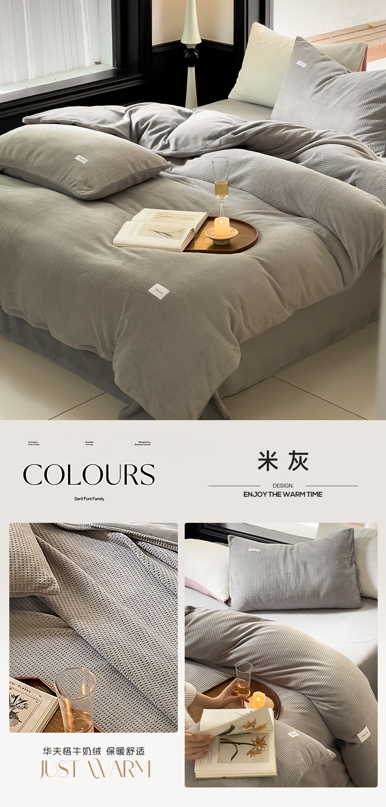 商品名称:时光里 2023新款全消光华夫格绒-单被套 米灰