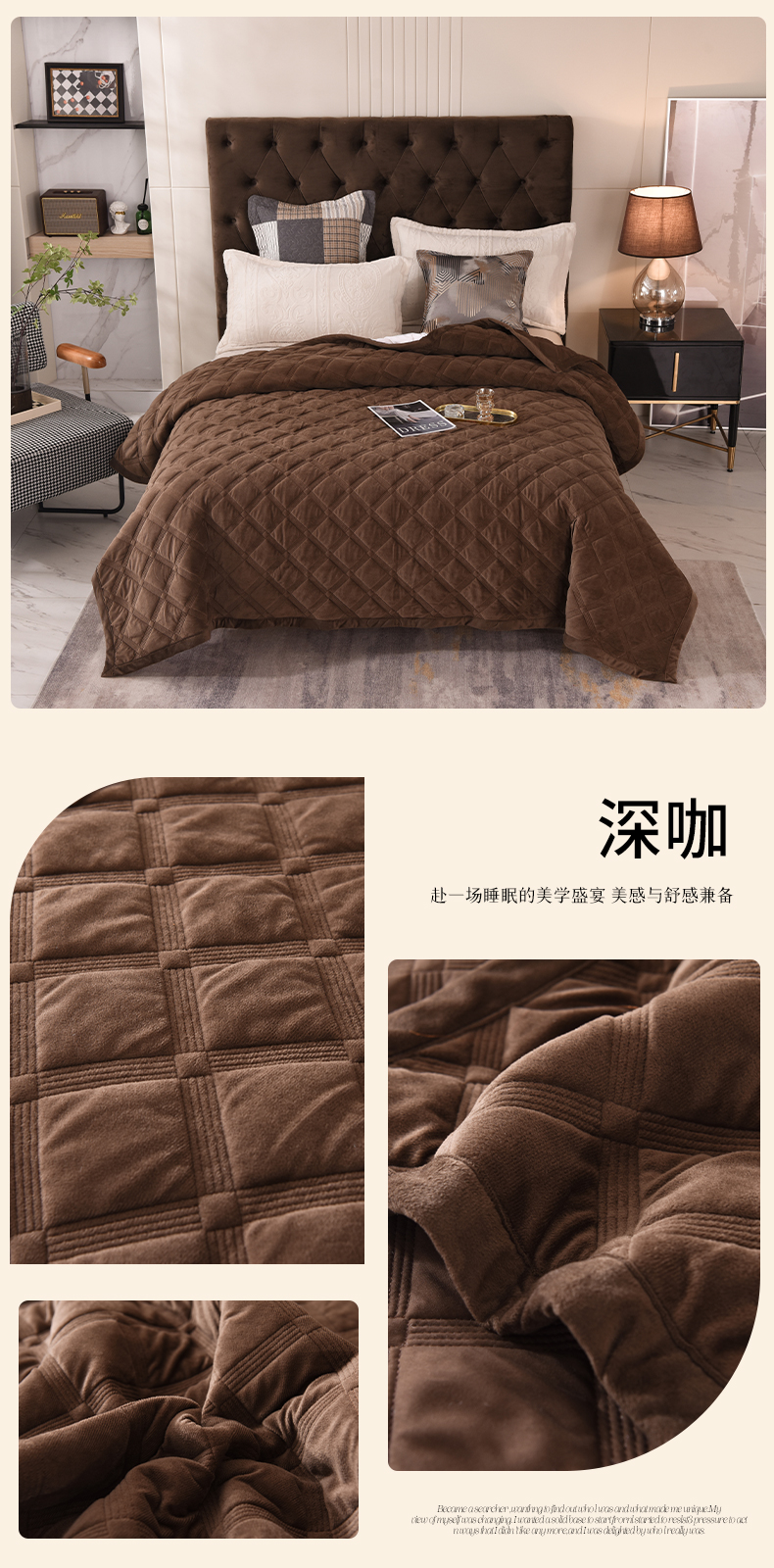 商品名称:恩和家纺 2024新款水晶绒牛奶绒法兰绒床盖方格款 方格款-深咖