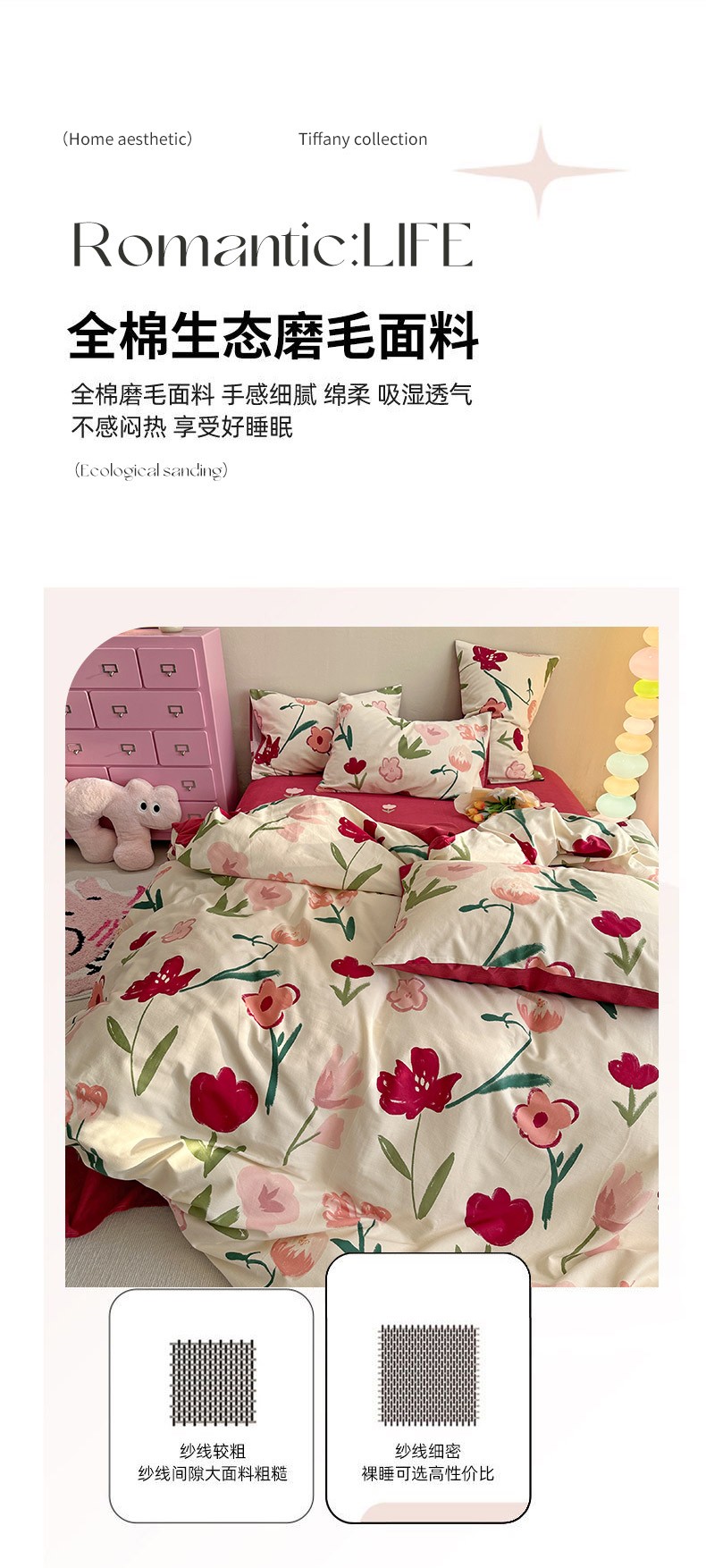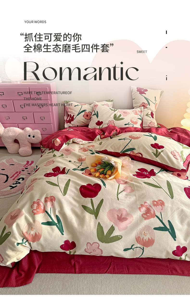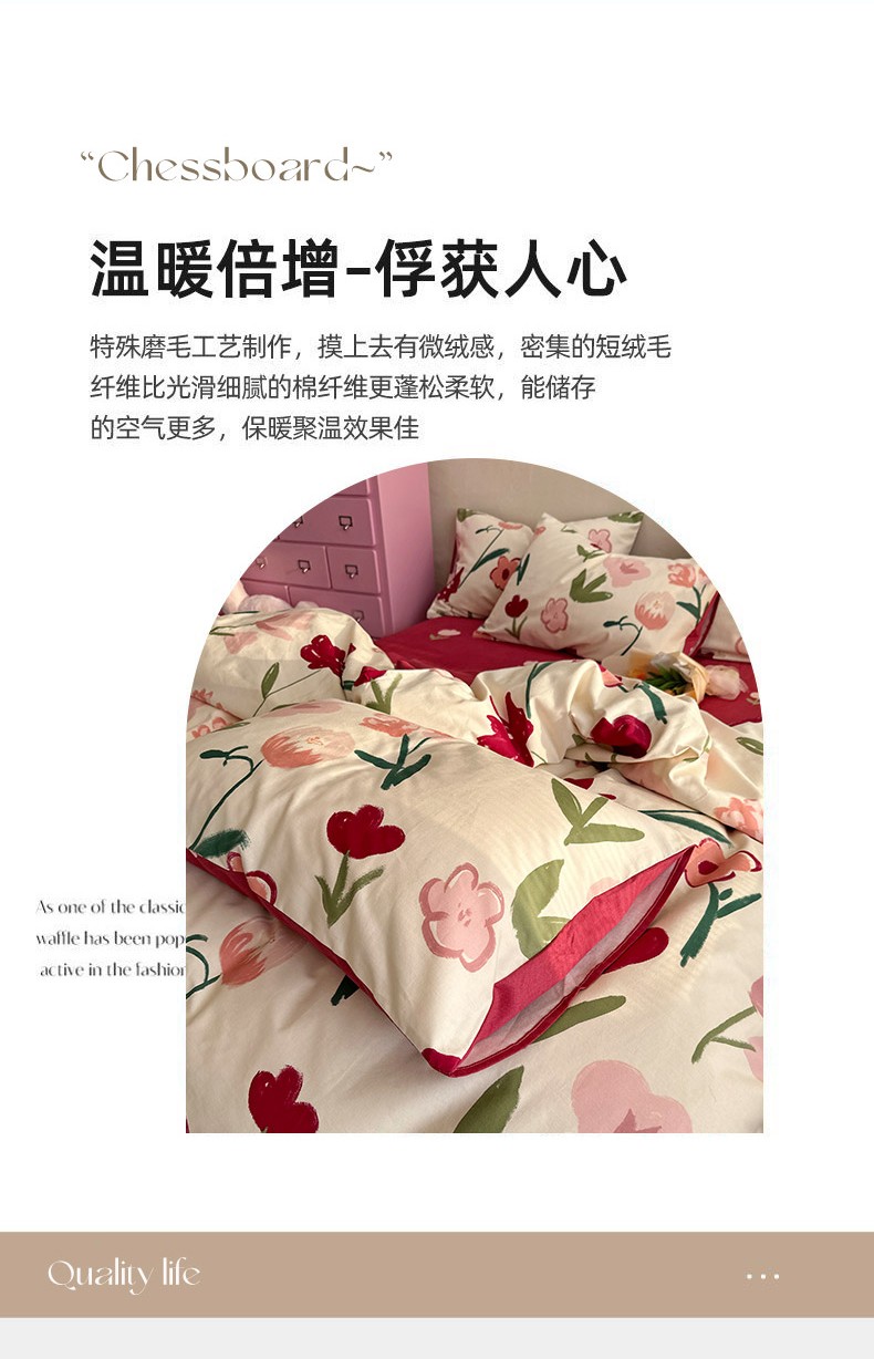 (总)千朵 2025新款全棉磨毛四件套,浪漫人生粉,浪漫人生米,香漫豆沙,茵然豆沙,茵然咖,珍妮咖,珍妮绿