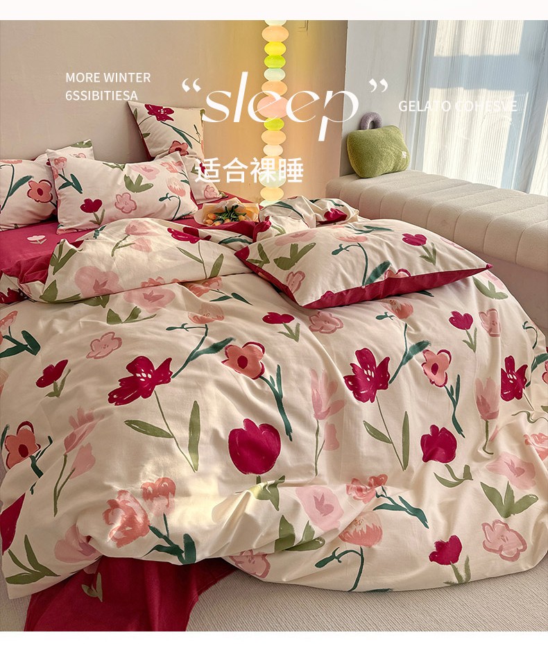 商品名称:千朵 2023新款全棉生态磨毛四件套 浅梦