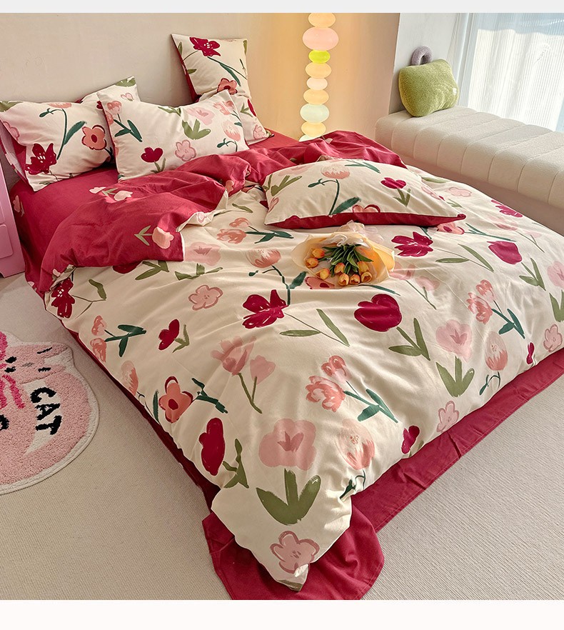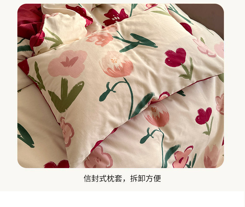 (总)2022 千朵新款双层纱全棉四件套纯棉四件套,乖乖虎,花间-红,花间-兰
