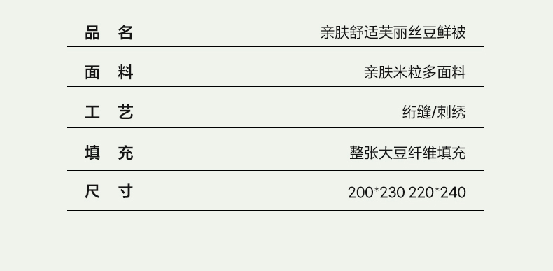 商品名称:(总)歌历斯家纺 2023新款亲肤舒适芙丽丝豆鲜被子被芯