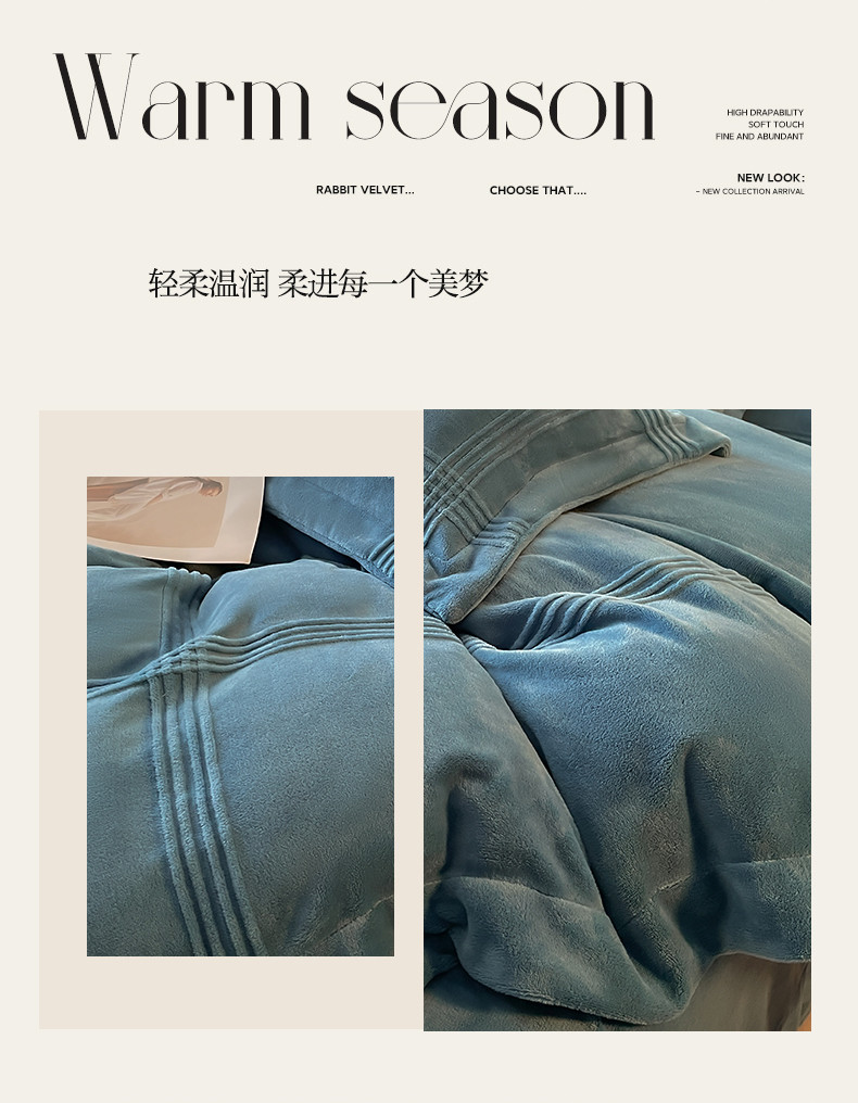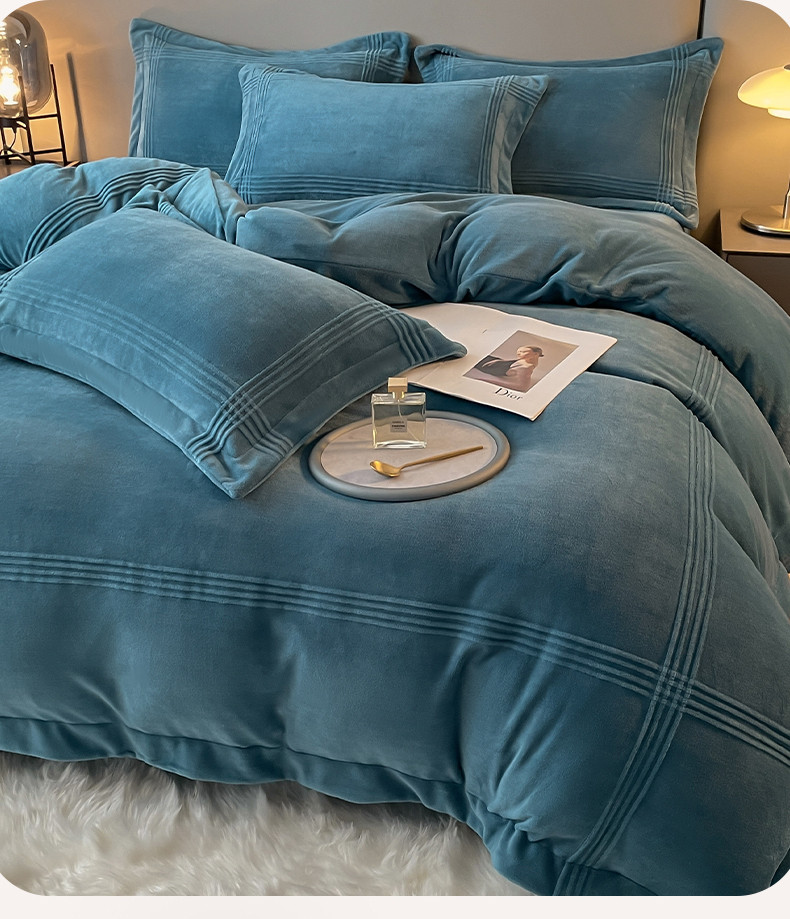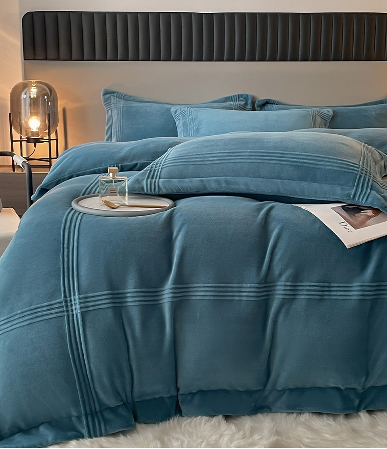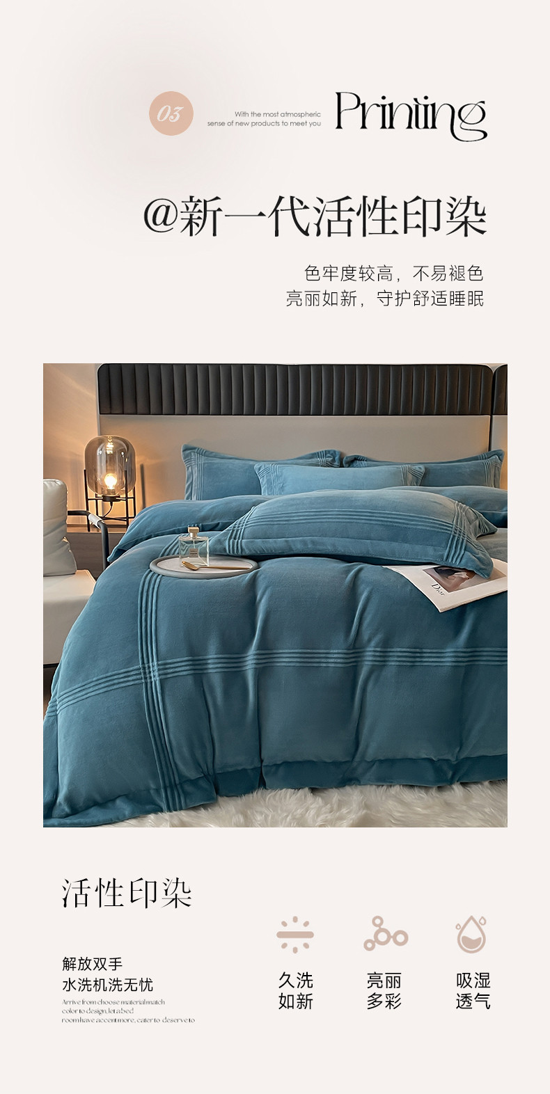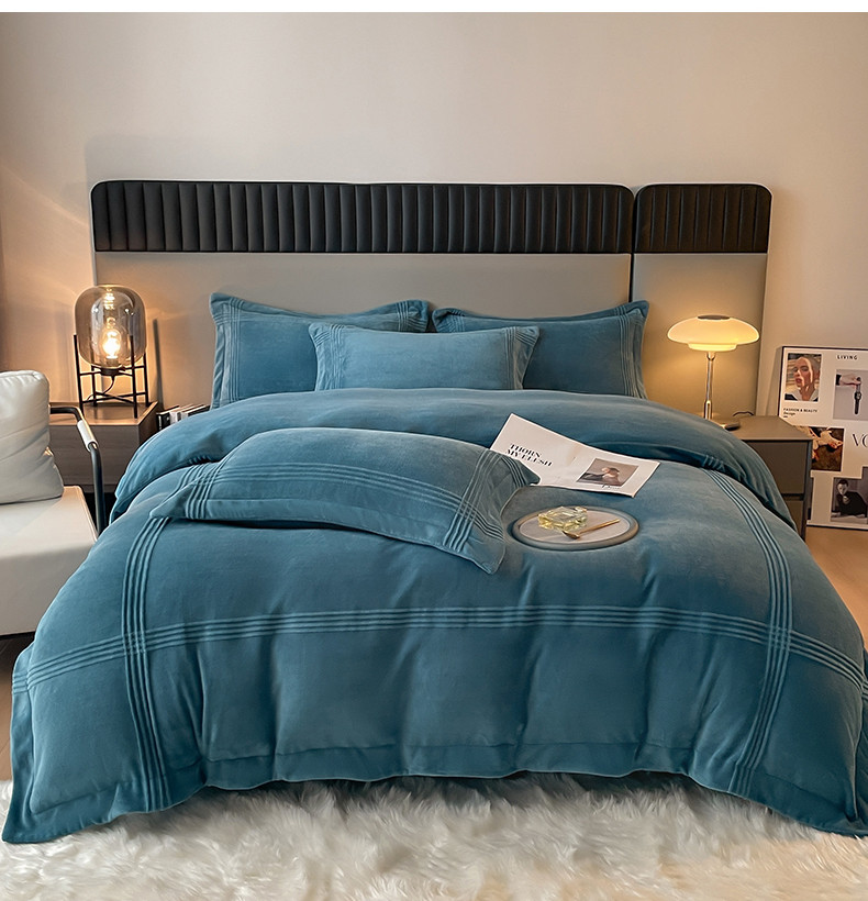 商品名称:米瑞娜 2024新款轻奢风埋绳款高克重牛奶绒四件套 美娜德-孔雀兰