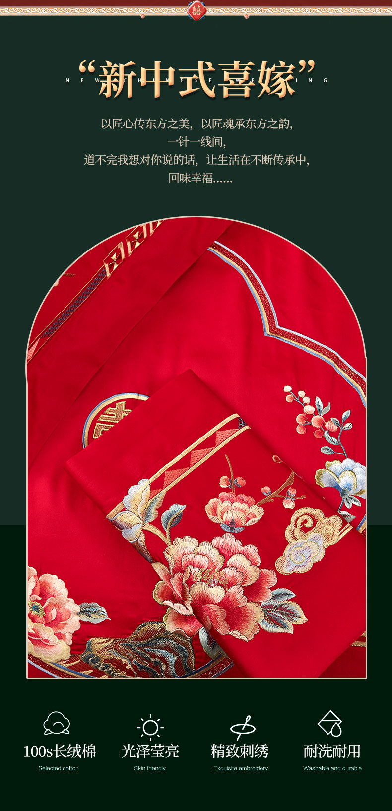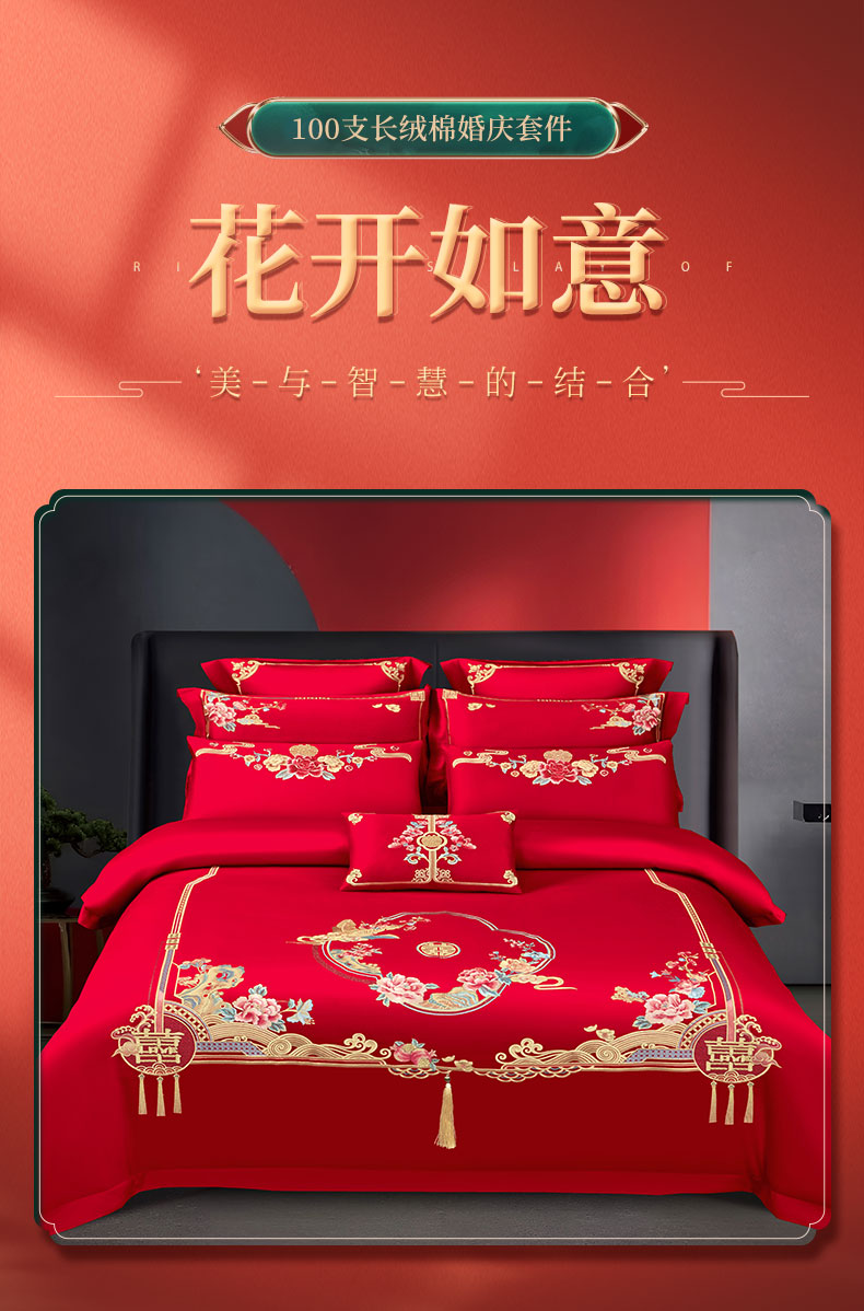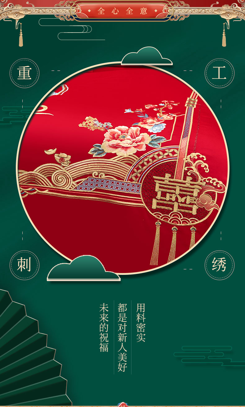 (总)皇潮婚庆馆 2025新款A类布款全棉刺绣婚庆四件套系列,花辰喜盈,百子送喜,龙悦凤鸣,喜事连连,喜迎鸿运