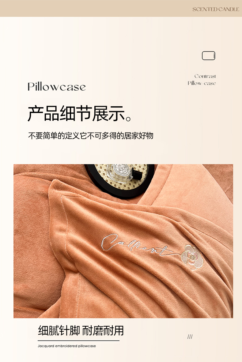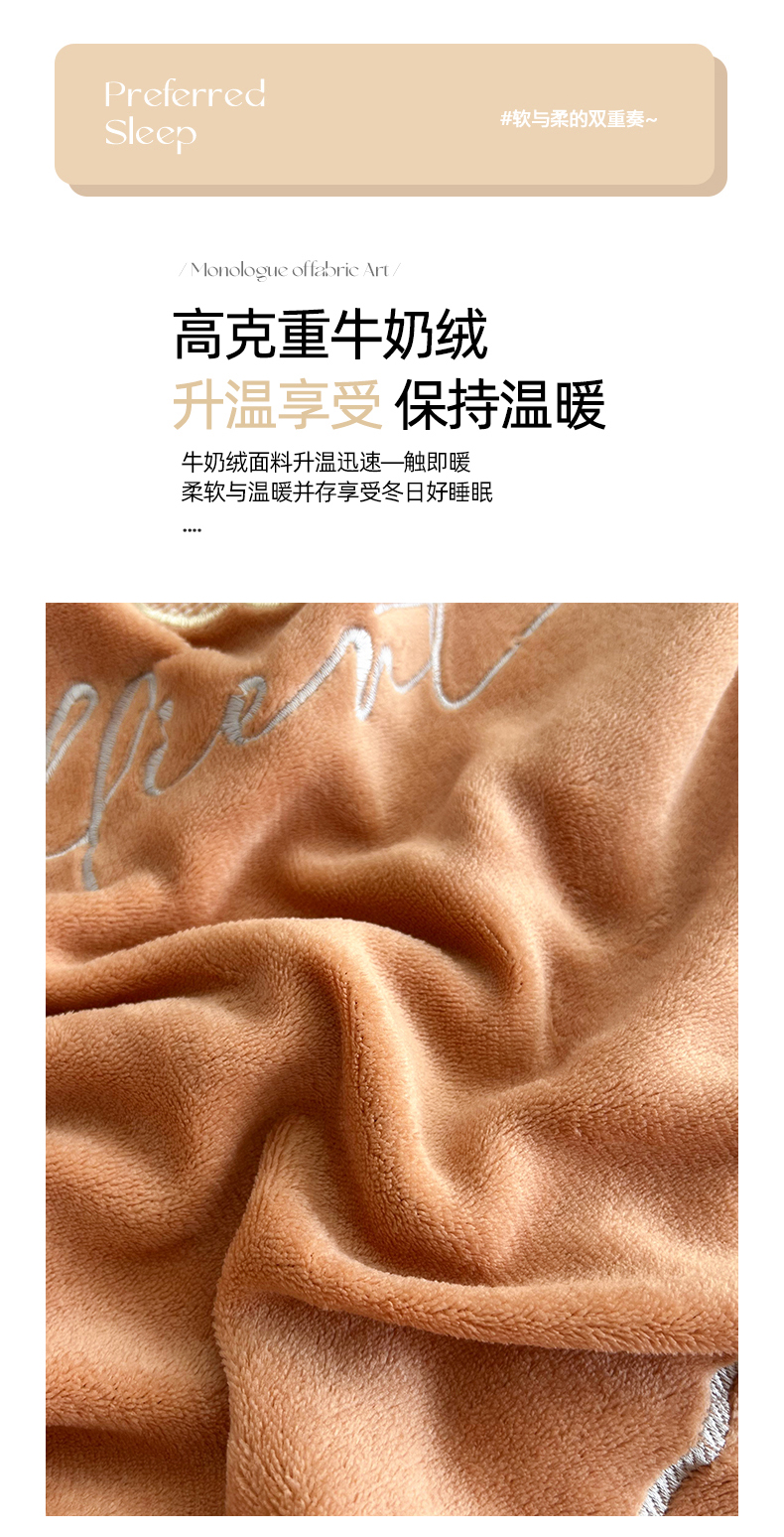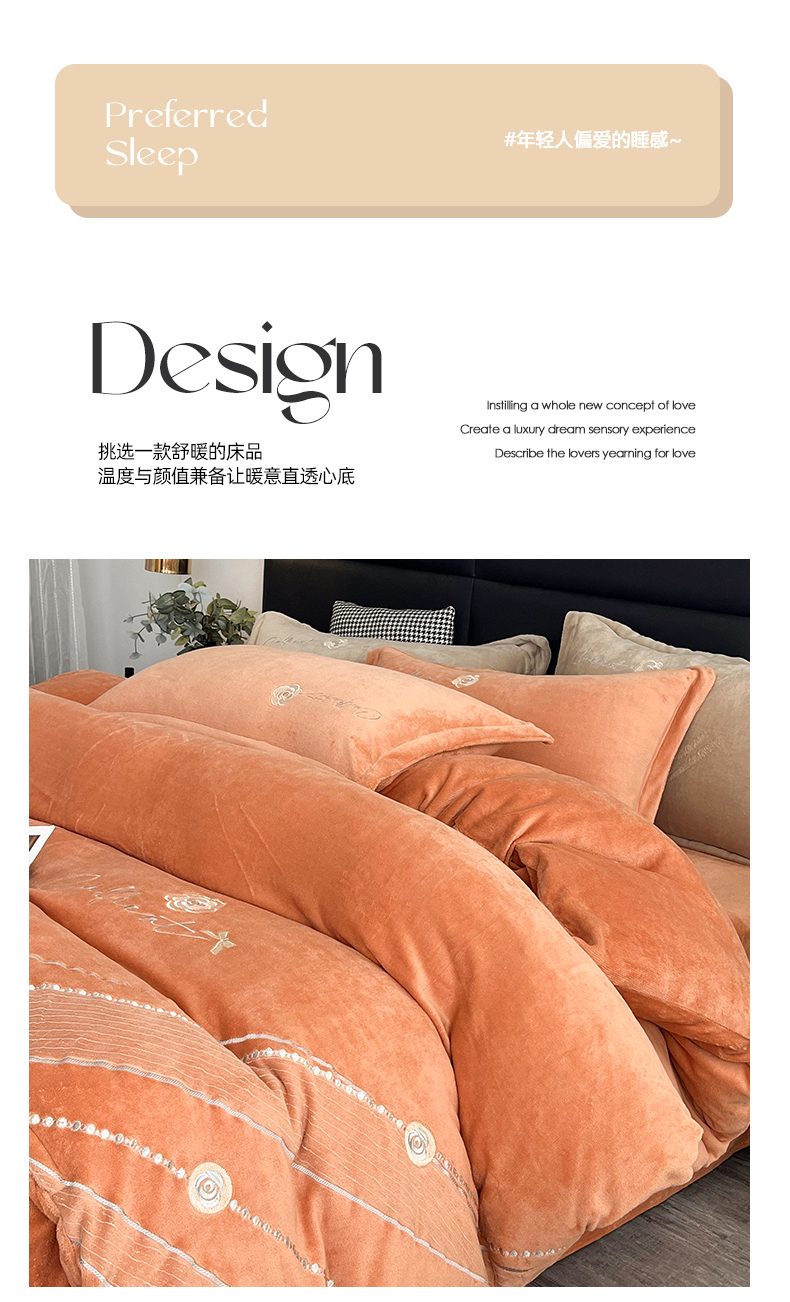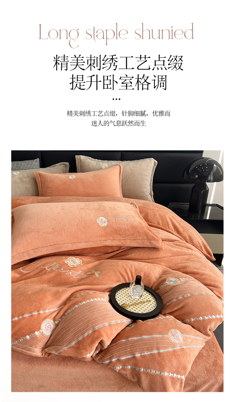商品名称:丝涟家居 2023牛奶绒绣花四件套-山茶花 橙色