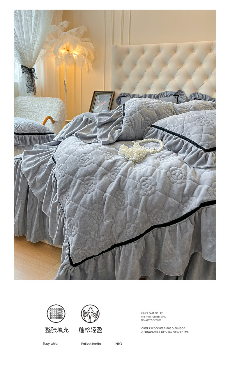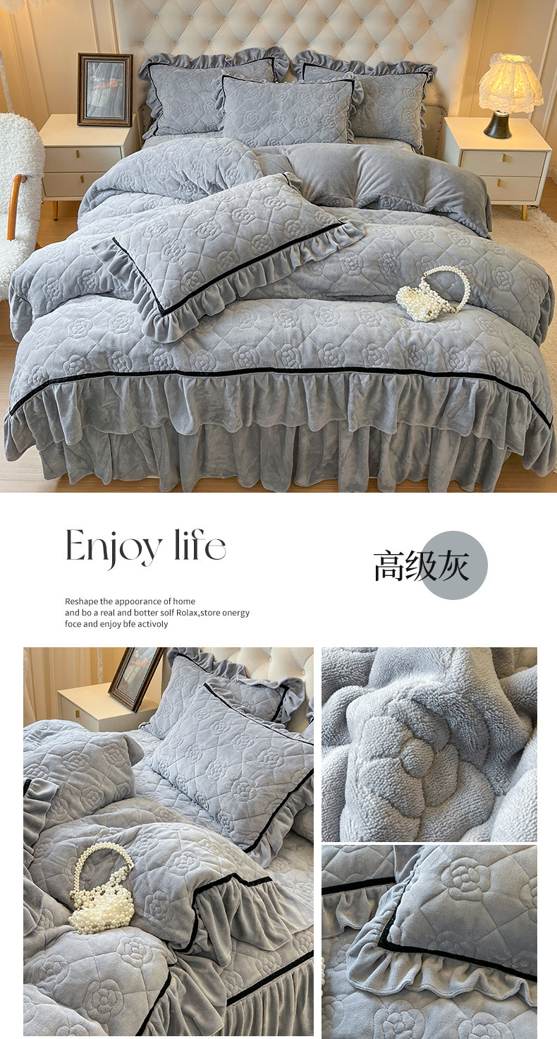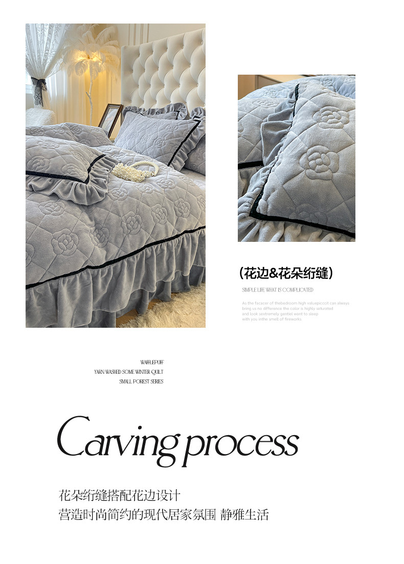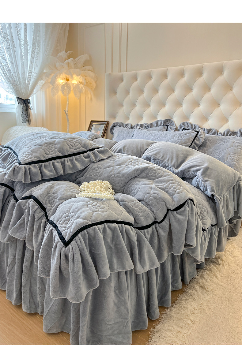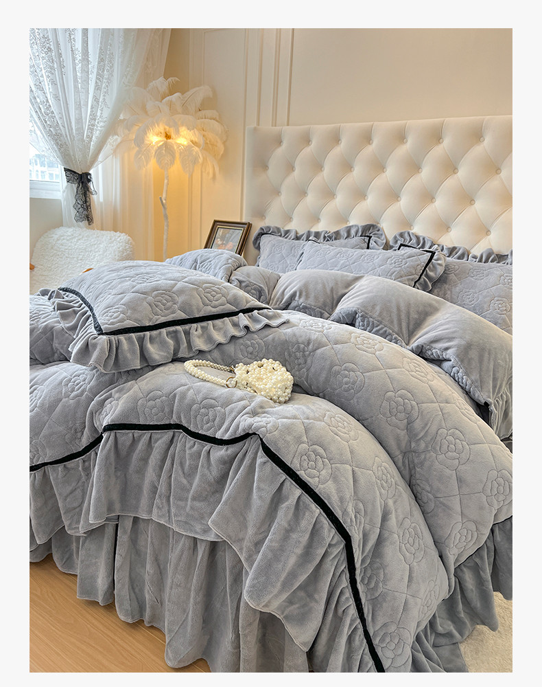 当前位置: 91家纺网 > 商品网购 > 床品套件 > 四件套 > 牛奶绒四件套 > 网红馆 2025新款高克重加厚保暖牛奶绒法式大花边四件套-眷恋 眷恋-高级灰