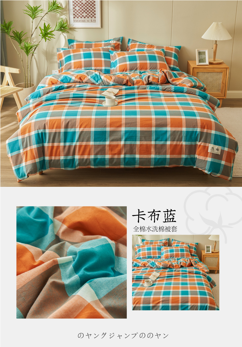 21度C 2024新款全棉色织水洗被套 卡布蓝
