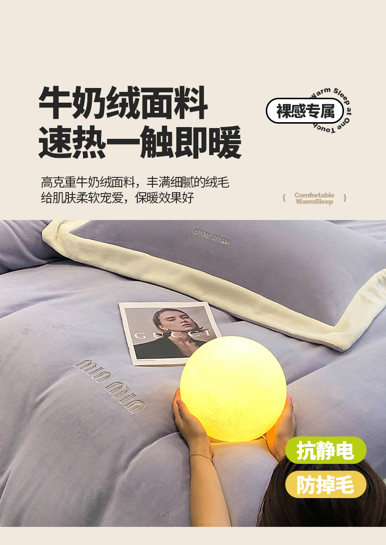 (总)懒猫家纺 2025新款亲肤舒适牛奶绒四件套-可可小姐系列,可可小姐-瓷白,可可小姐-水粉