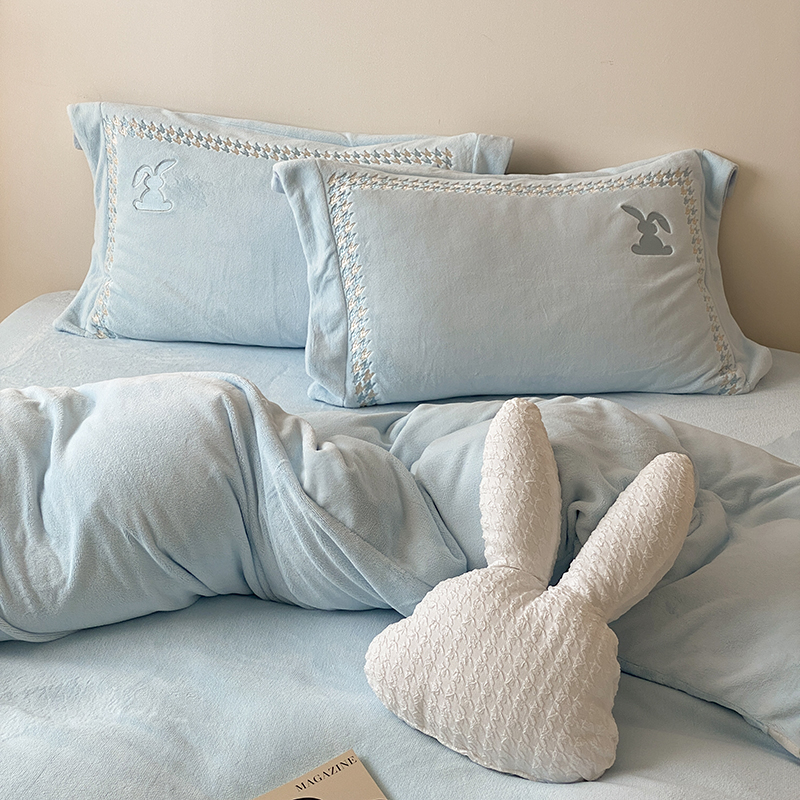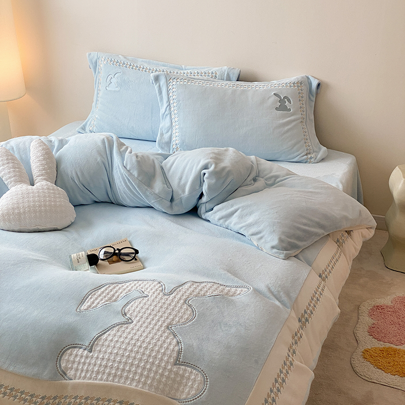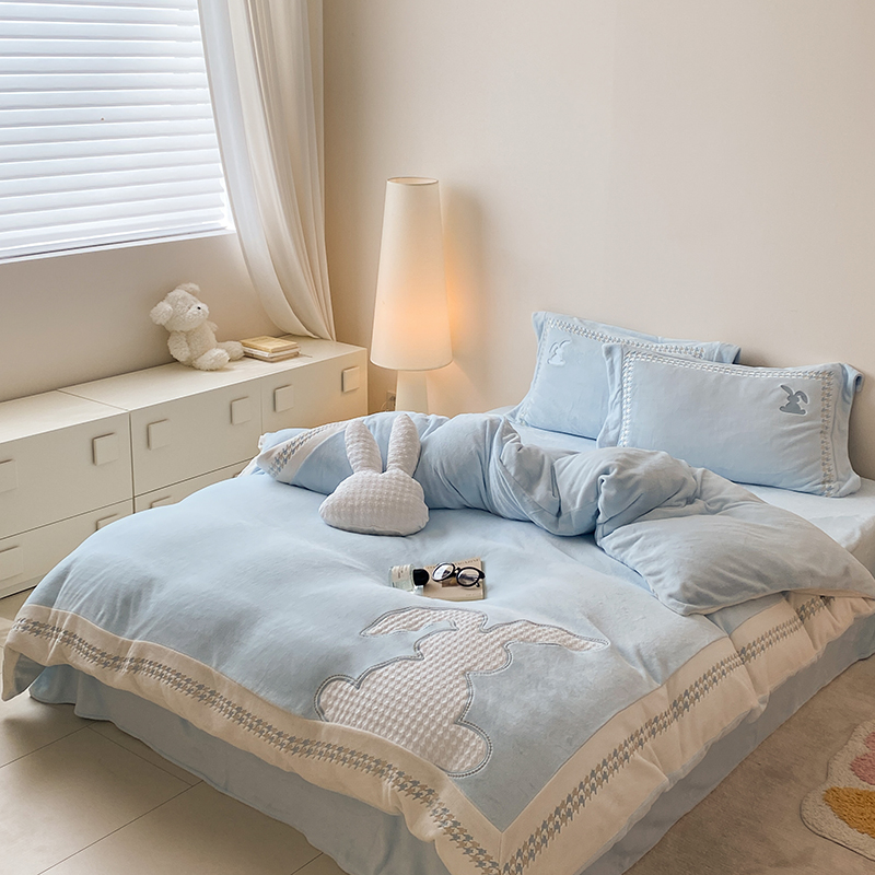 曼布缇 2025新款牛奶绒贴布绣花款四件套--艾娜兔绒(风格二) 绒艾娜兔-蓝