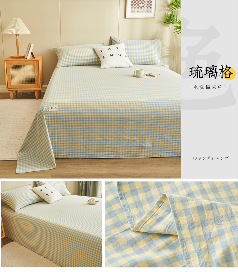 21度C 2024新款全棉色织水洗床单 琉璃格