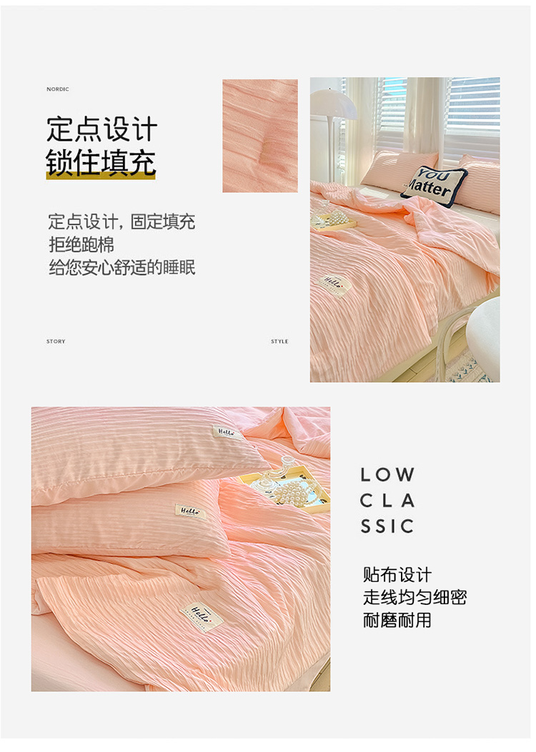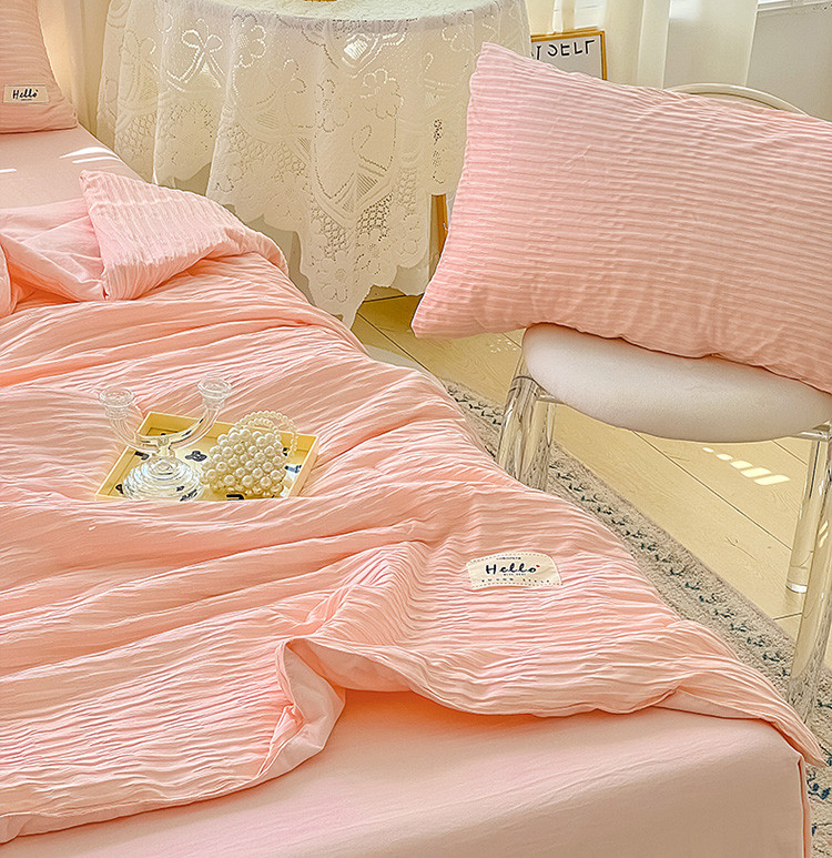 商品名称:暖芯优选 2023新款韩版泡泡纱水洗棉拼色床单夏被四件套 樱花粉