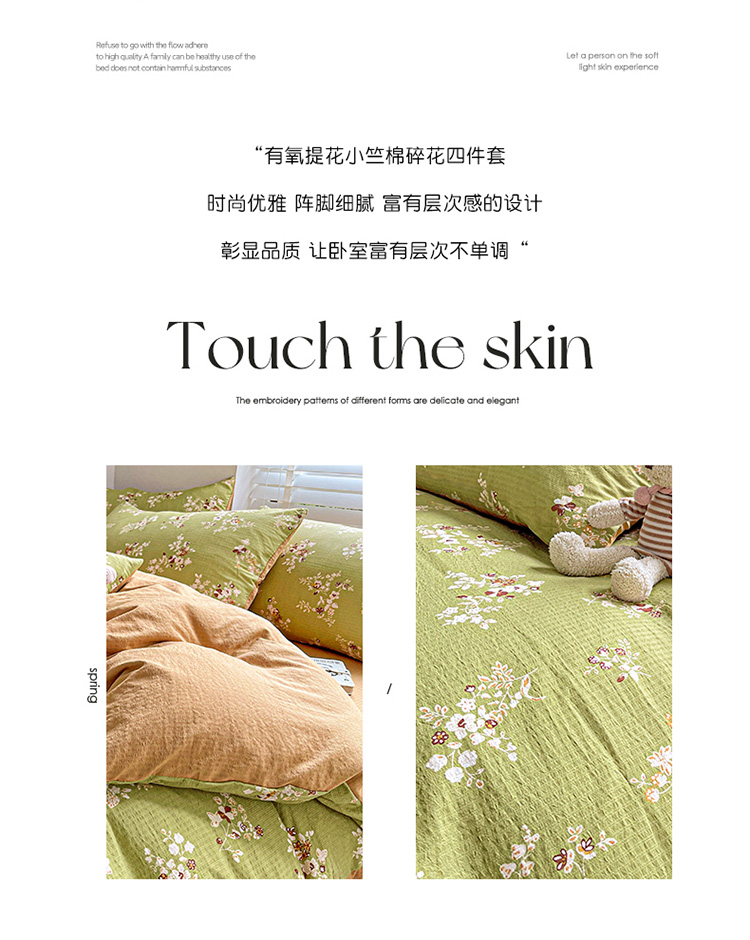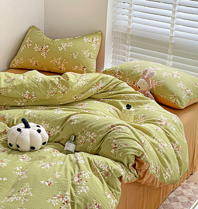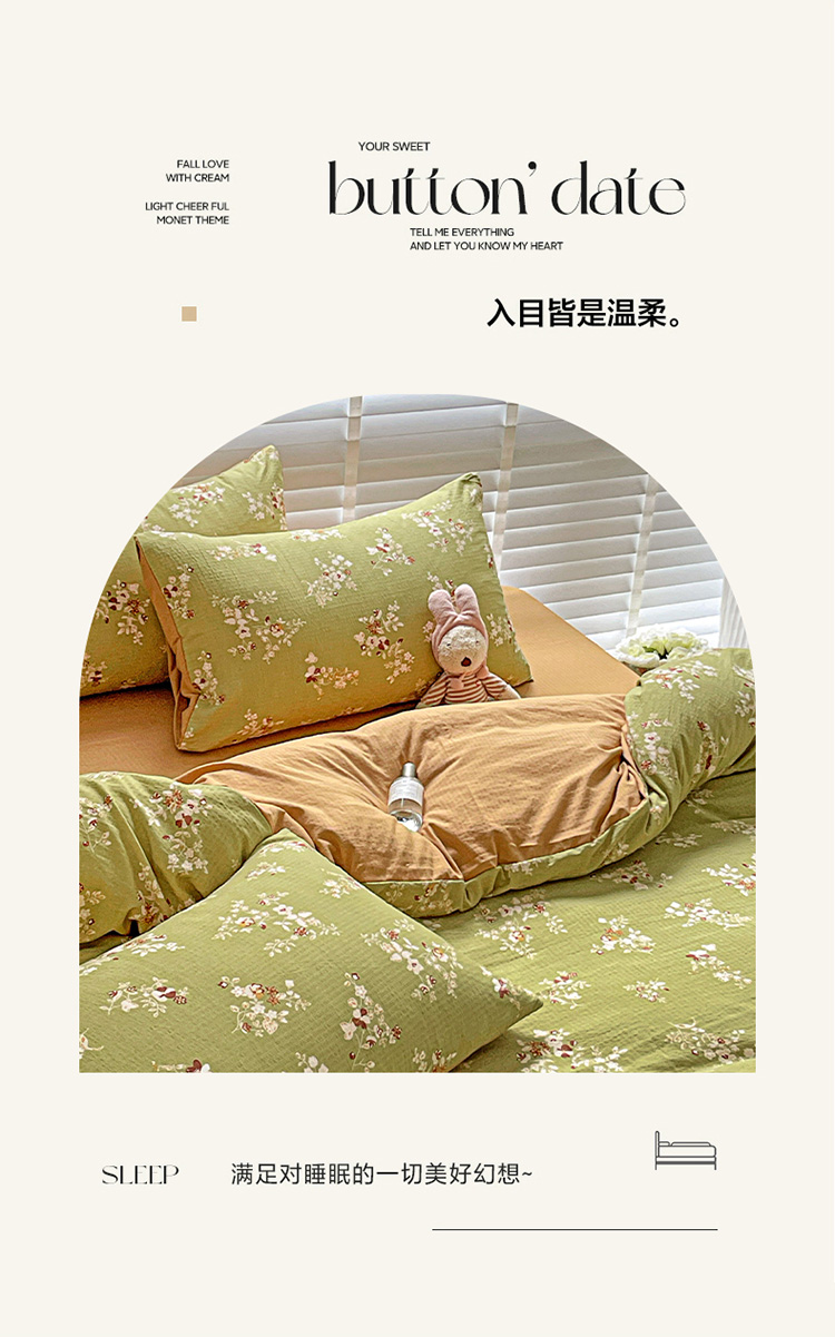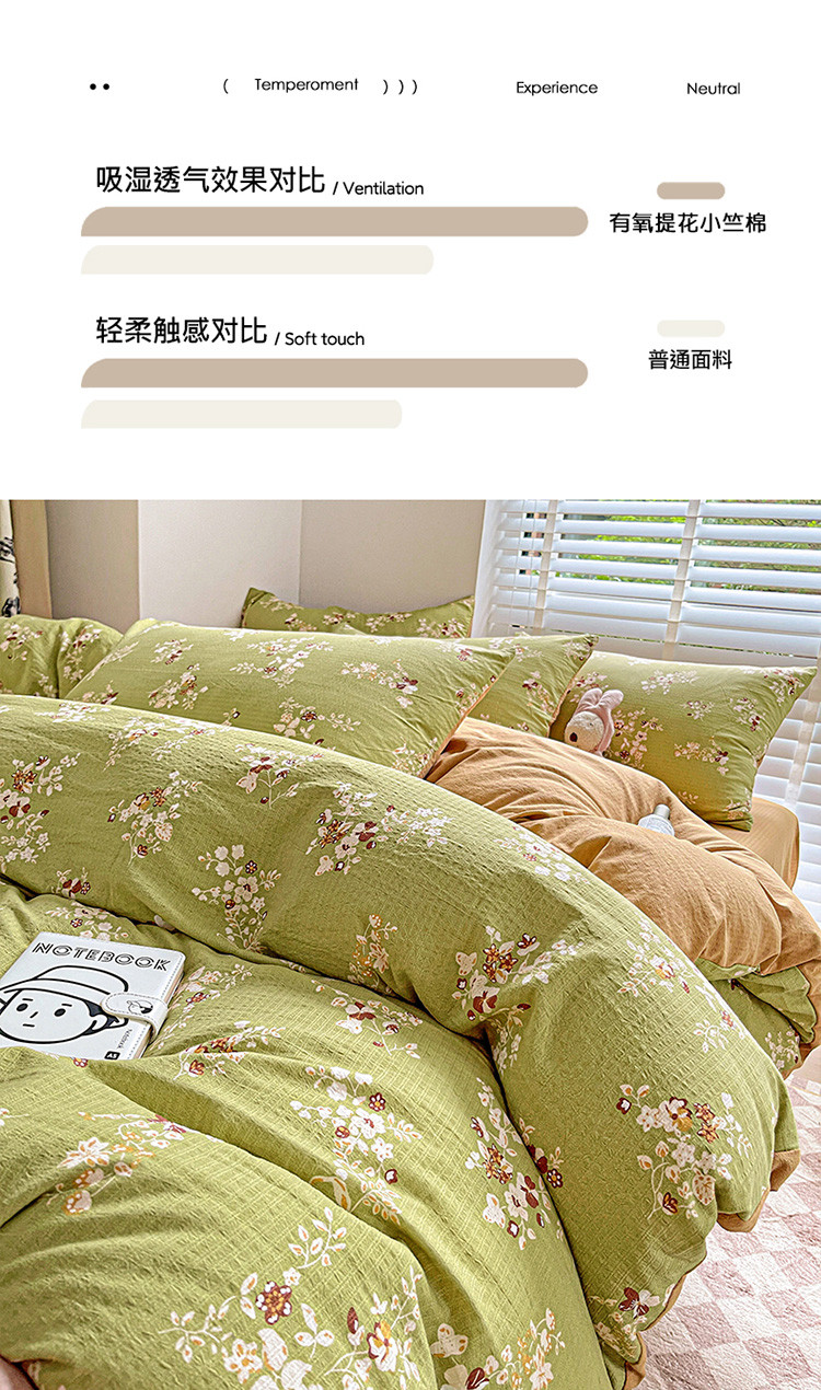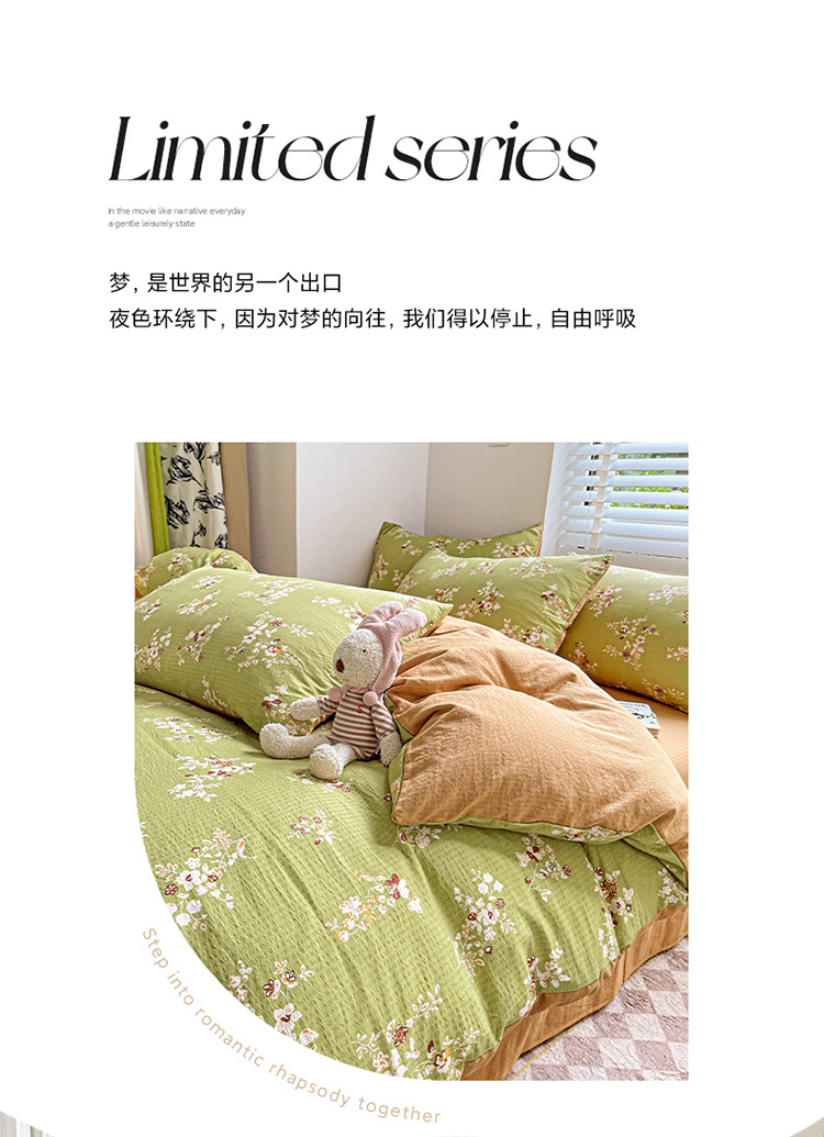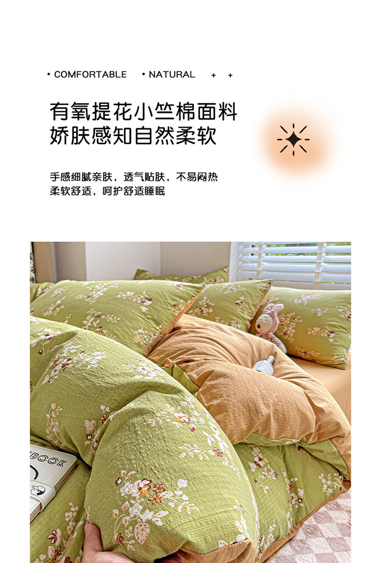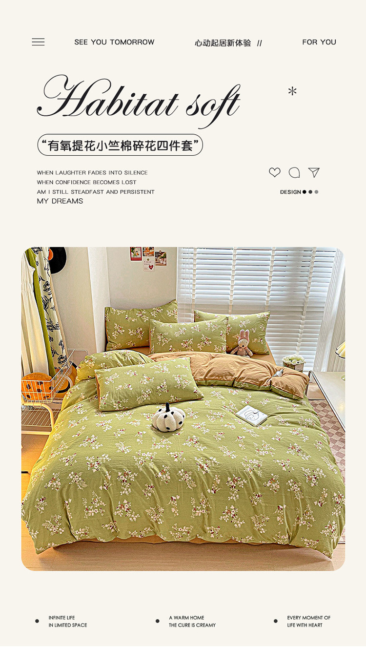 当前位置: 91家纺网 > 商品网购 > 床品套件 > 四件套 > 全棉普通四件套 > 暖芯优选2023新款超柔有氧小竺提花棉双层纱学生四件套 绿萝