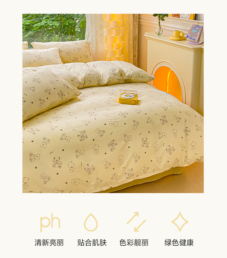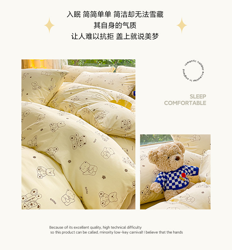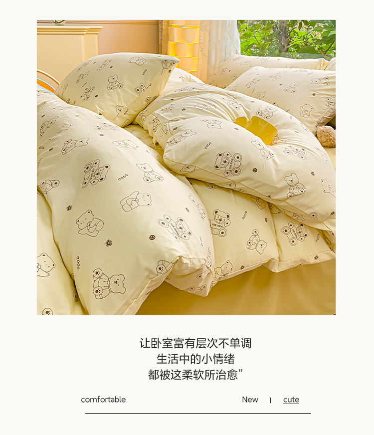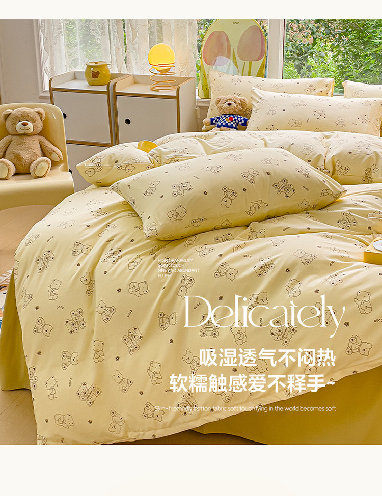 当前位置: 91家纺网 > 商品网购 > 床品套件 > 四件套 > 全棉普通四件套 > 暖芯优选 2023直播热款超柔水洗棉双层纱四件套 乖熊
